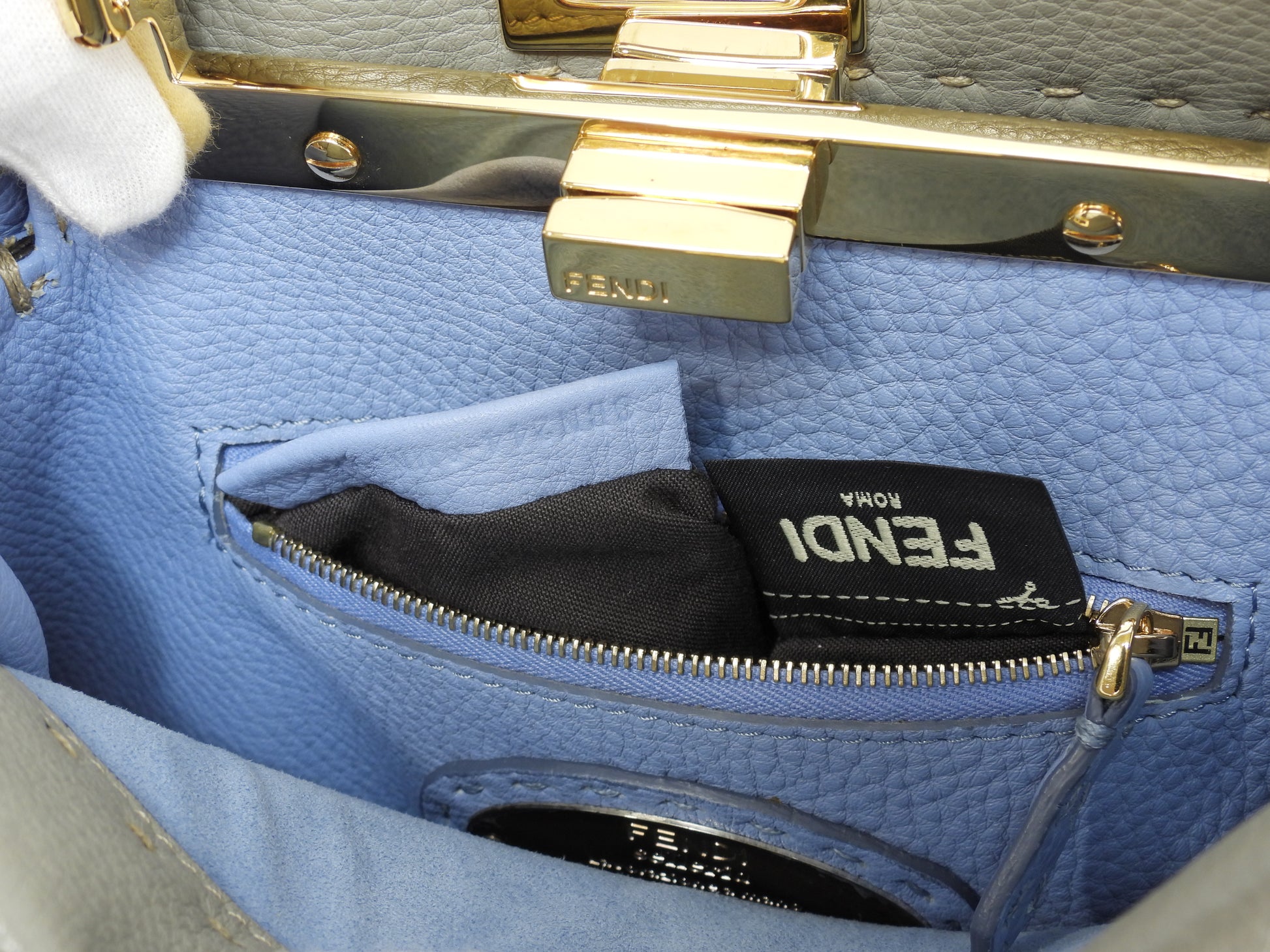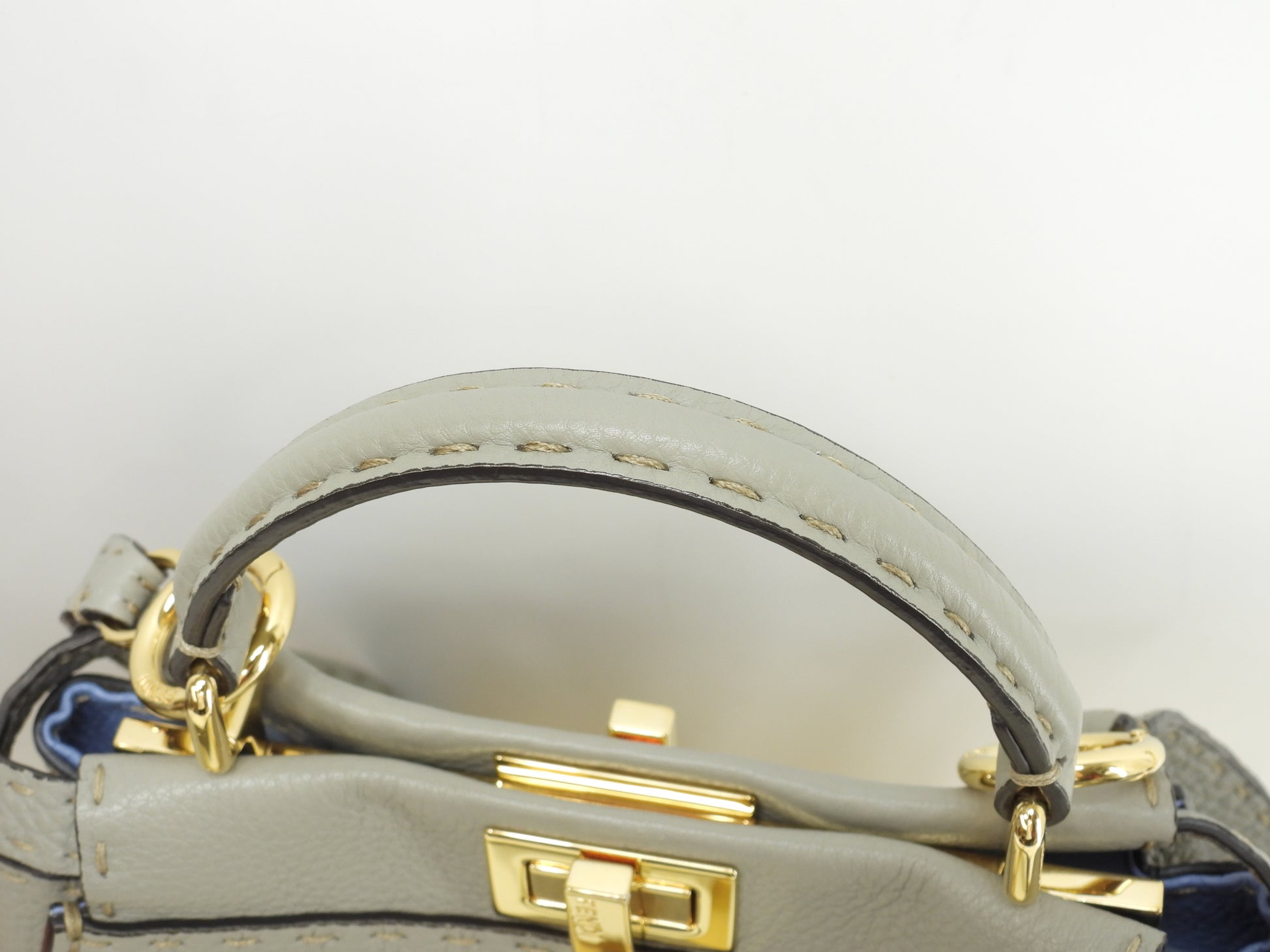 フェンディ ピーカブーミニ 銀座限定 セレリアレザー灰 ハンドバッグ ポシェット 極美品@ 6
