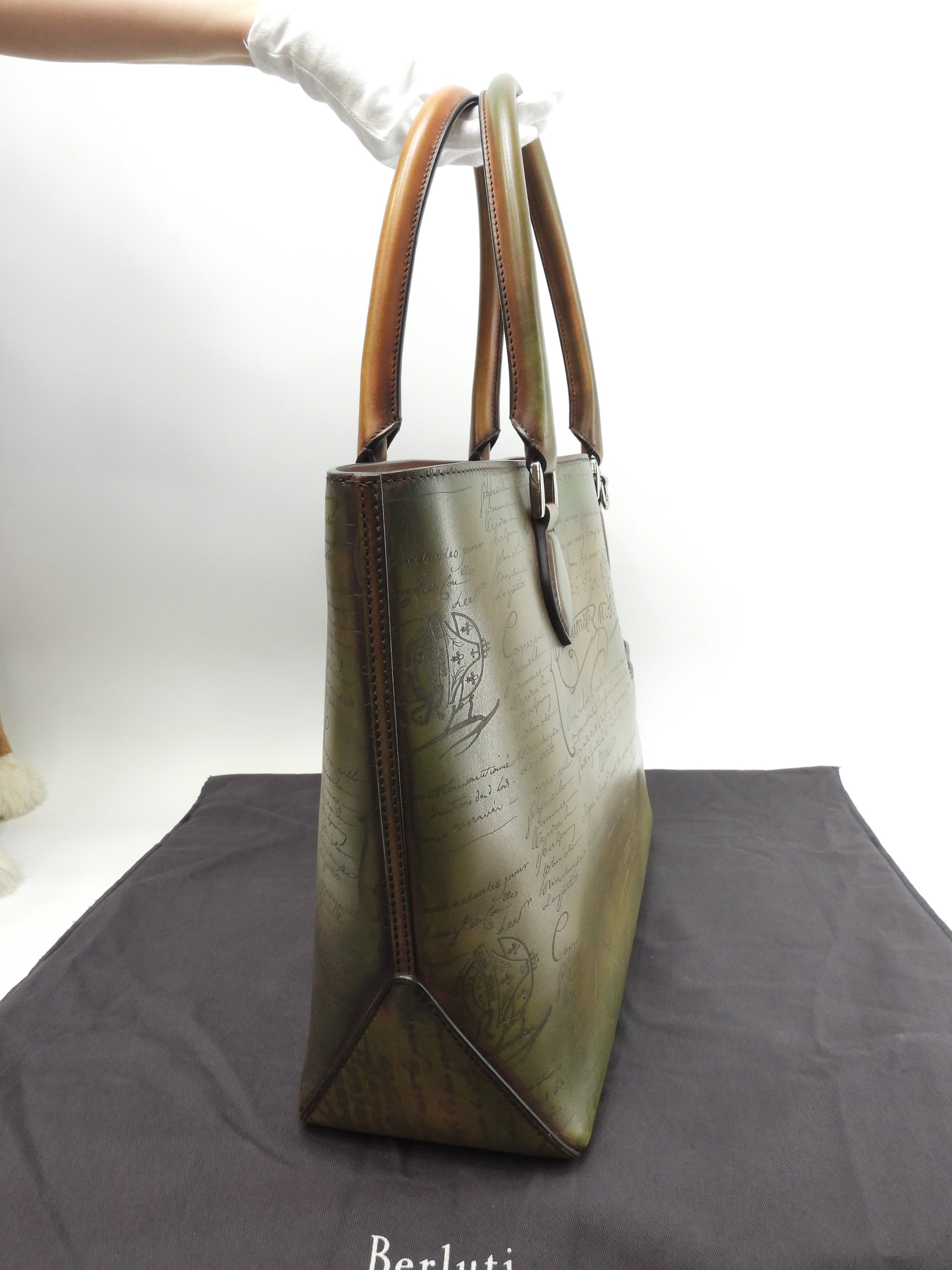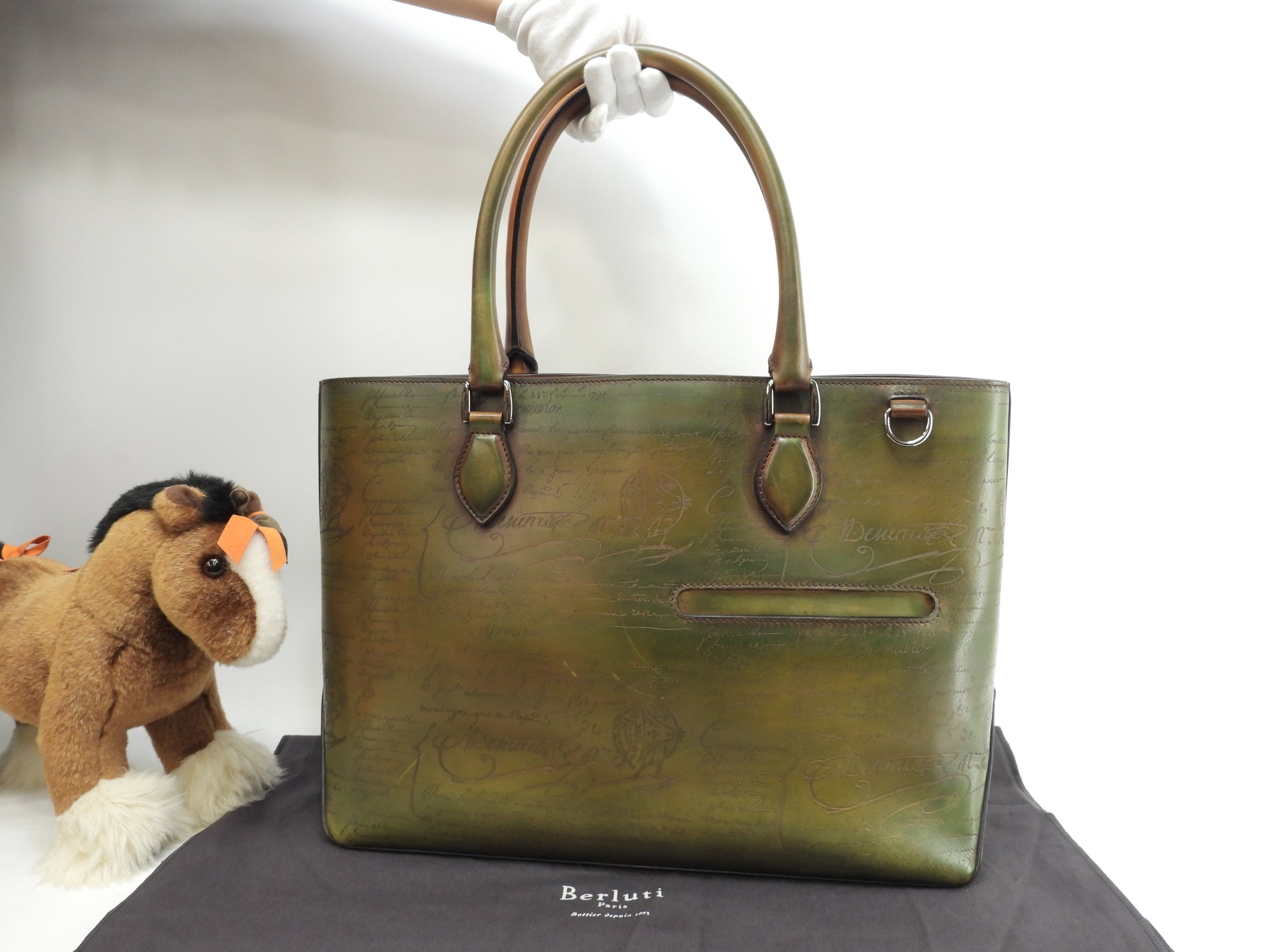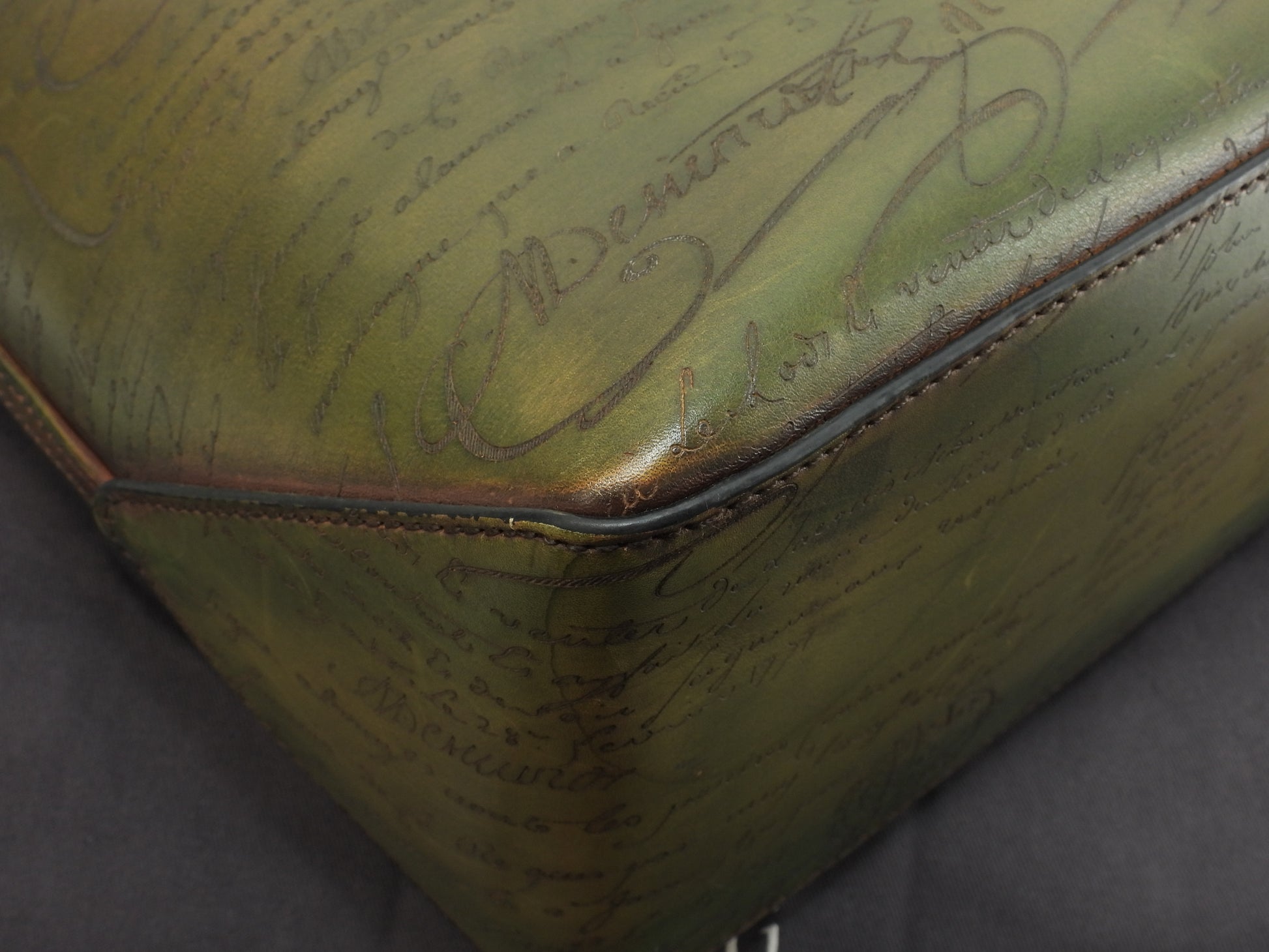 ベルルッティ トゥジュール カリグラフィ レザー緑茶 メンズ トートバッグ 新型 極美品@A0230P
