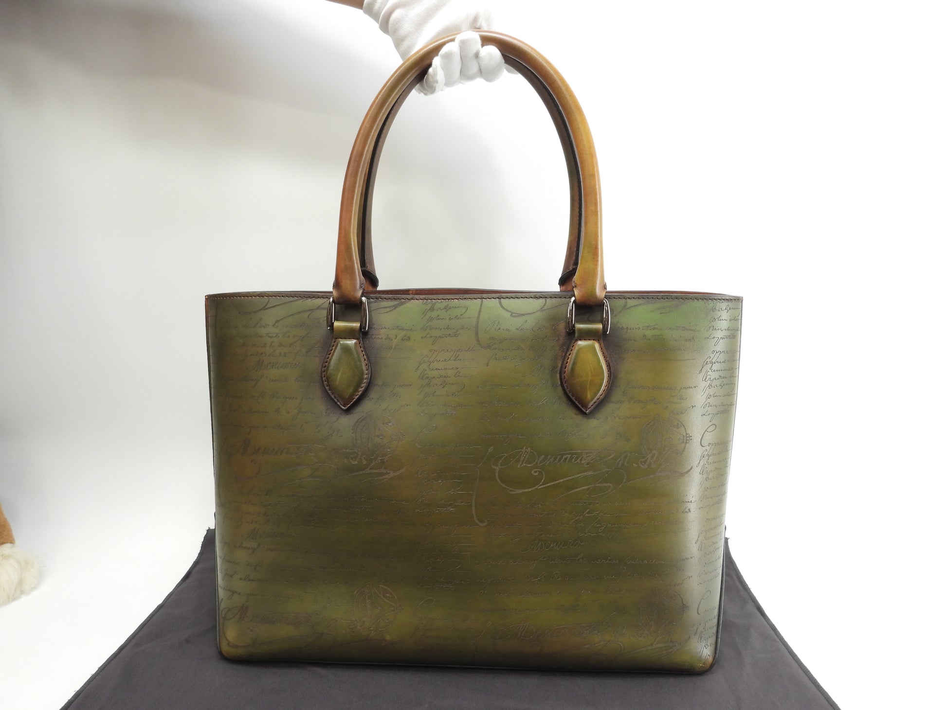 #Berluti #ToteBag #Leather #Green #Brwon #85%new #authentic #Calligraphy #TOUJOURS #HandBag #Mens #Silver #secondhand #wholeSale #haibanya #aisai-jp #転売可