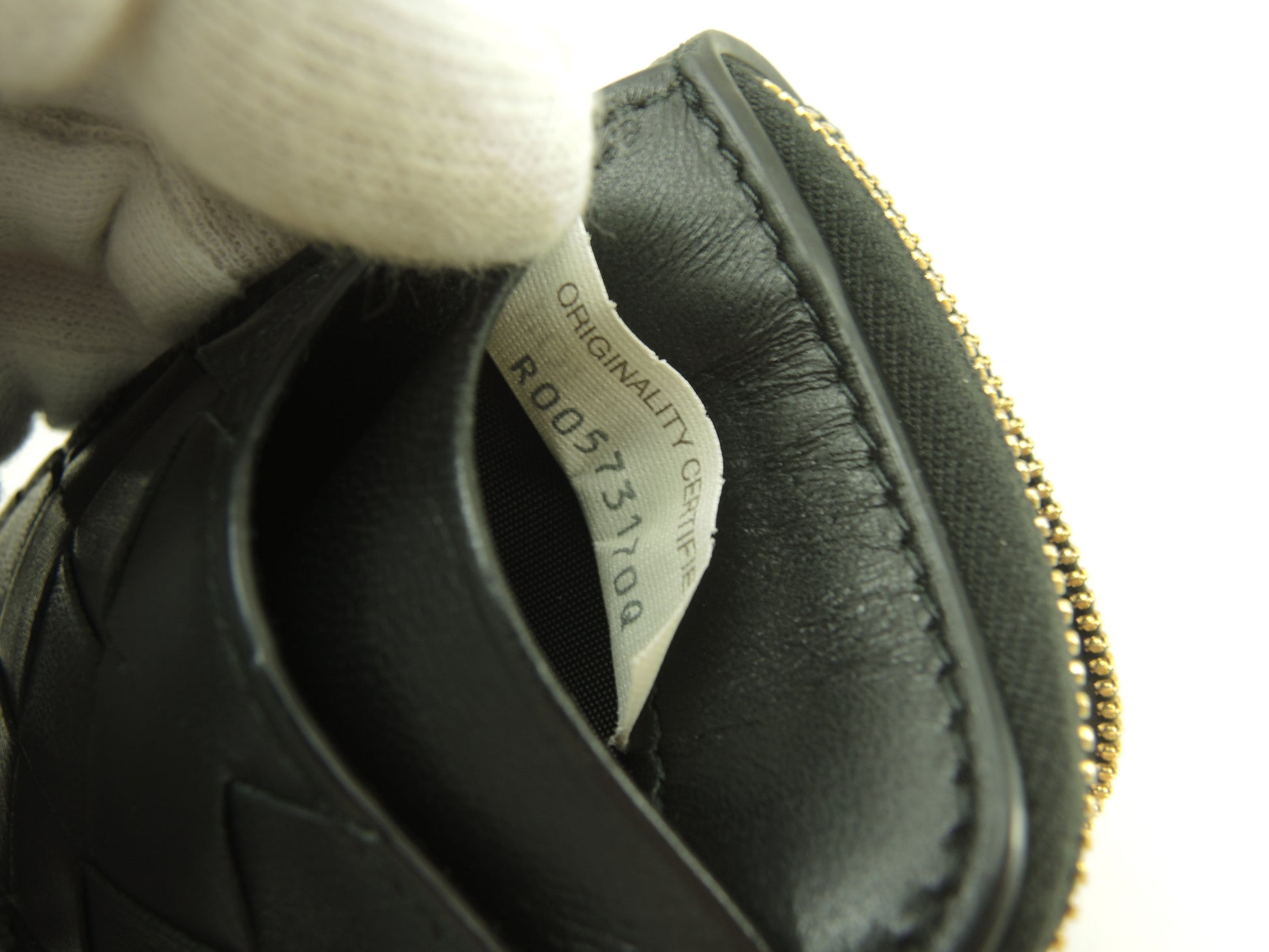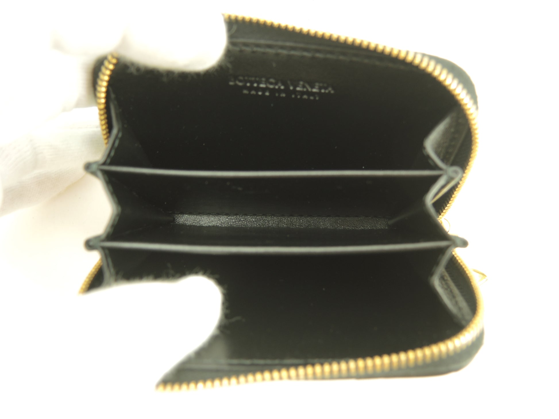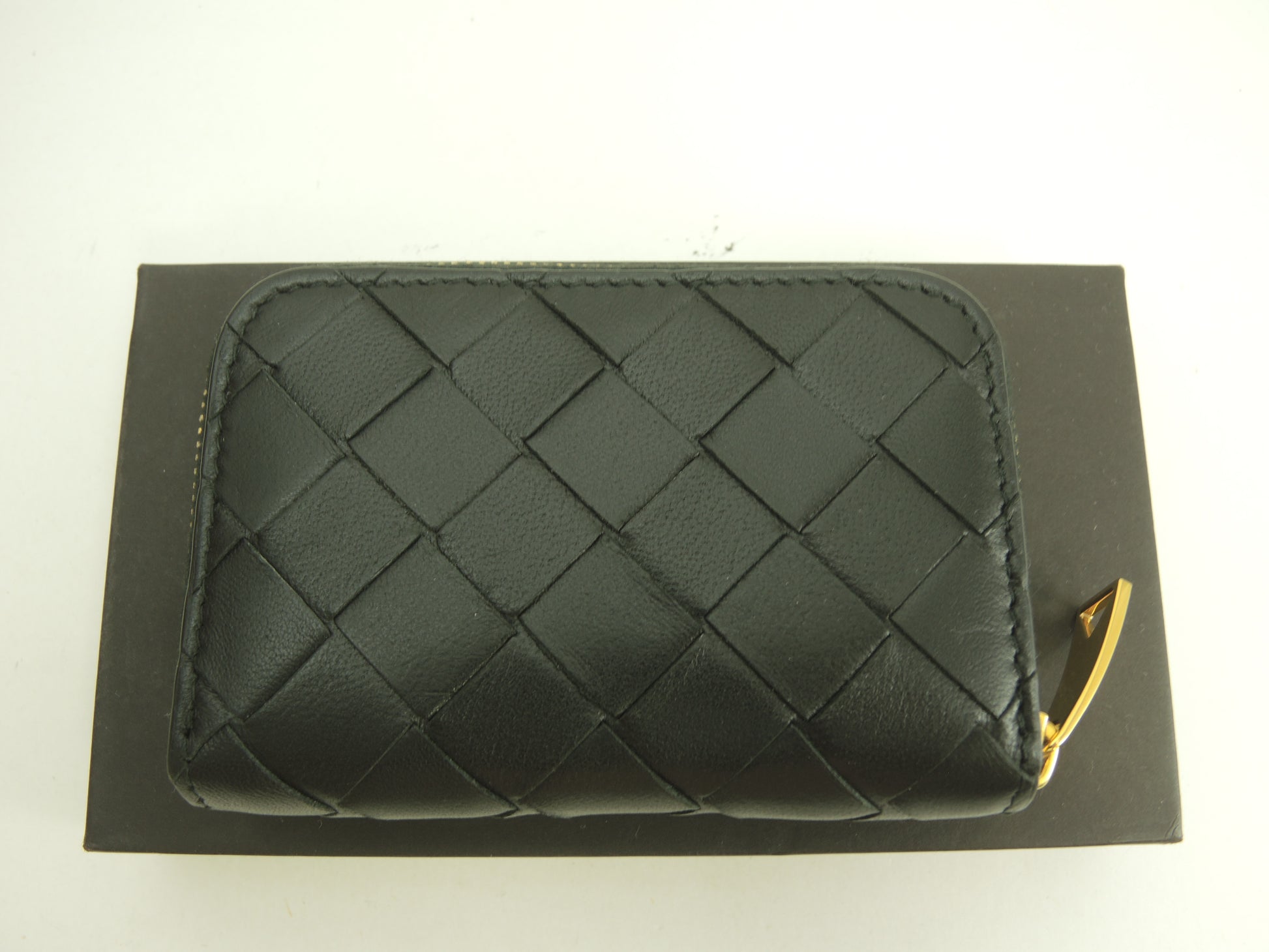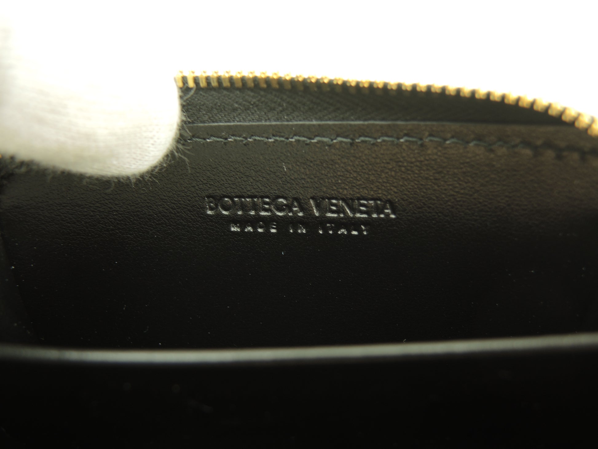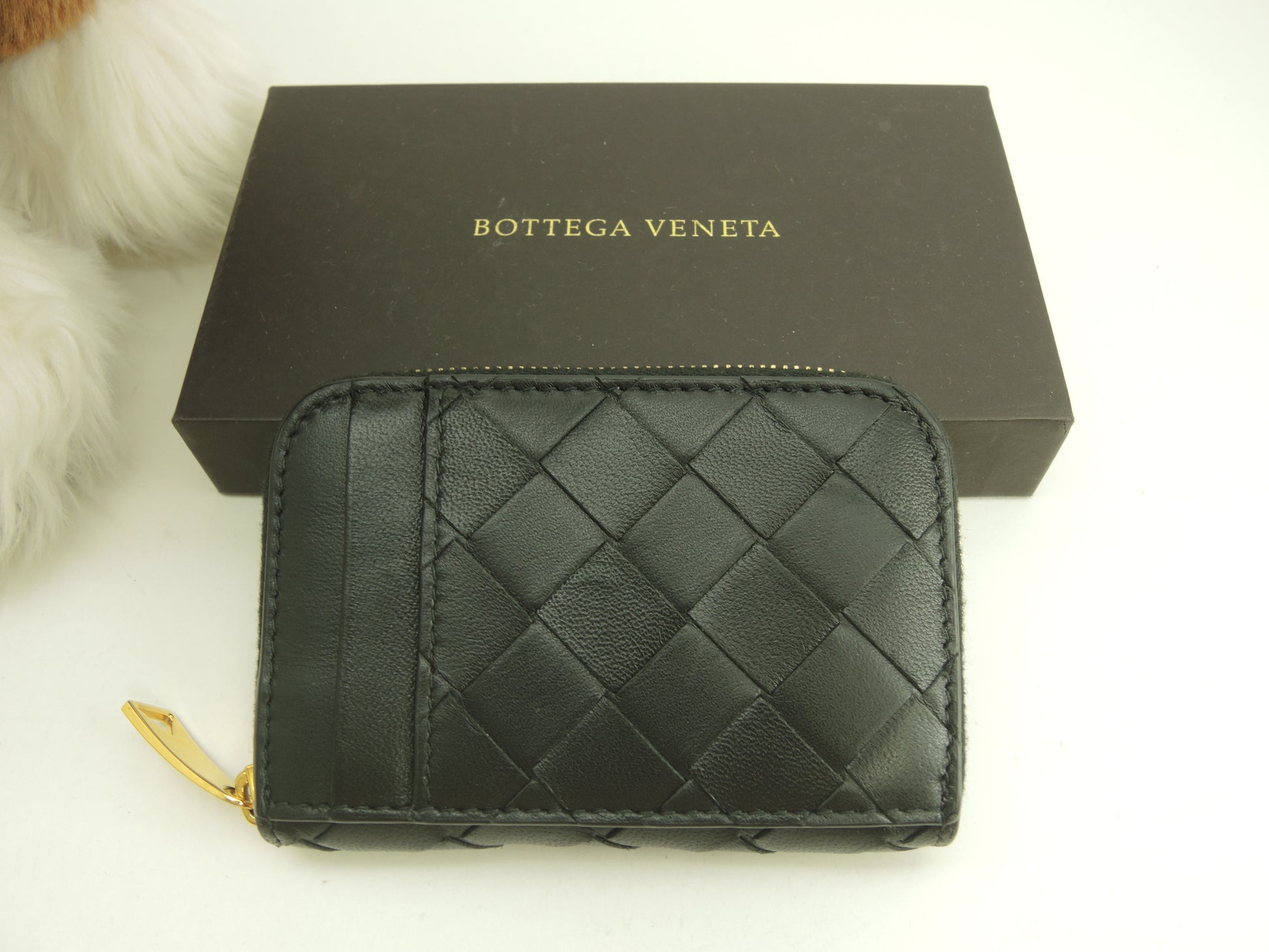 ボッテガヴェネタ カード用ポケット付コインケース イントレチャート レザー黒 ジップ小銭入 美品@R00573170Q