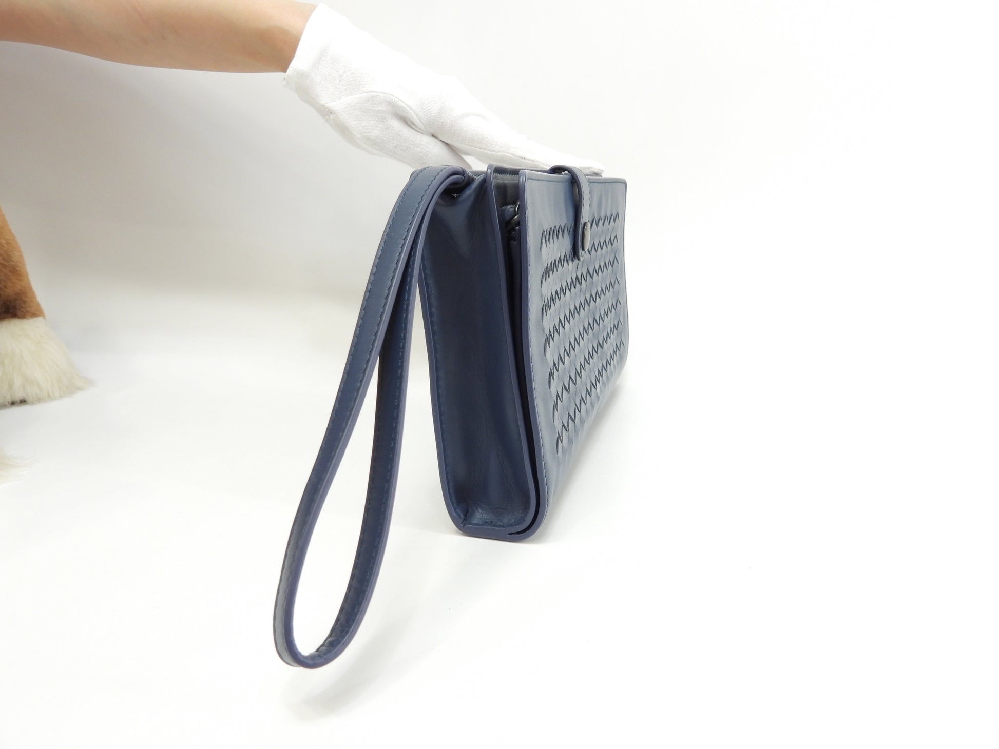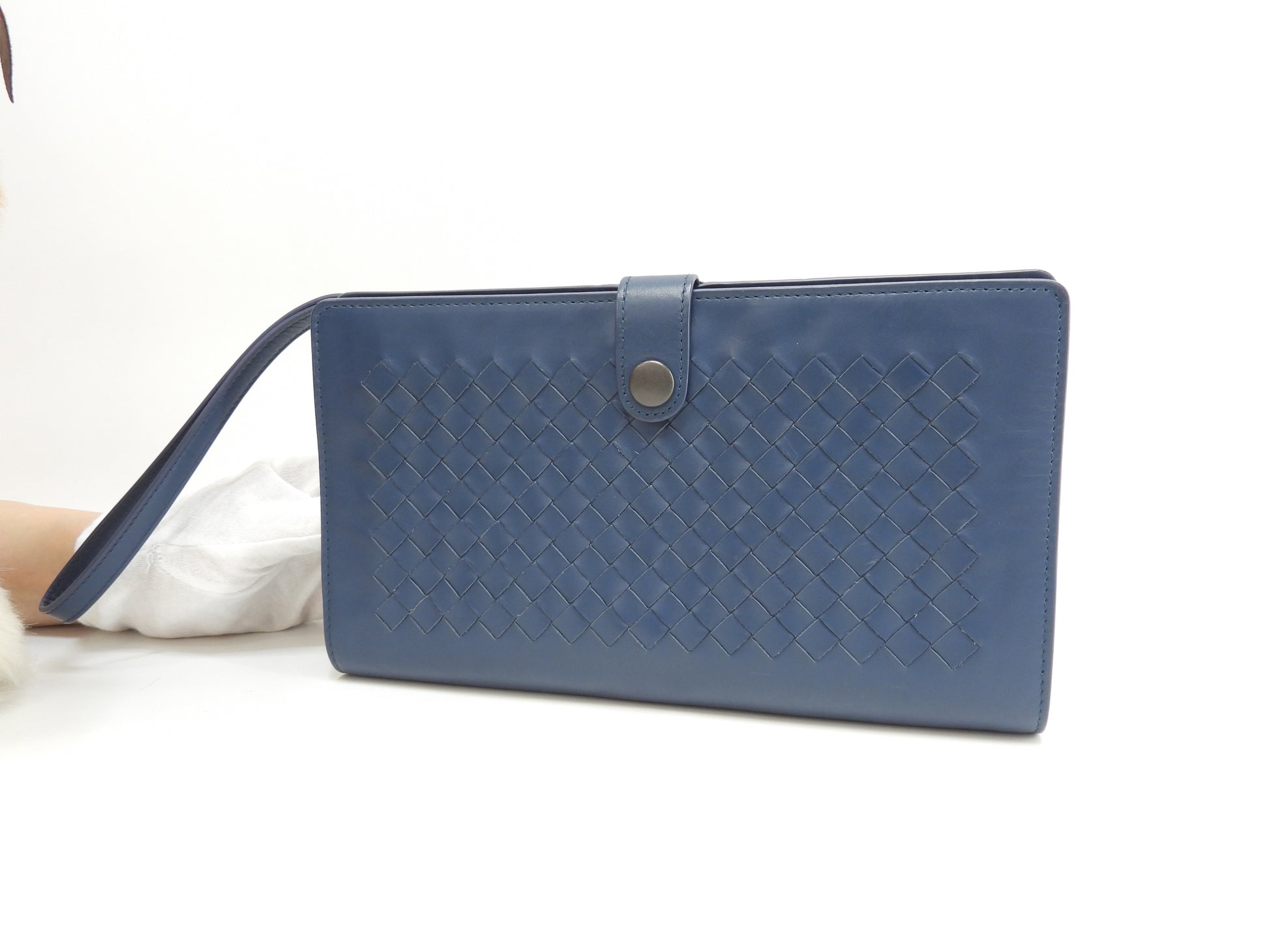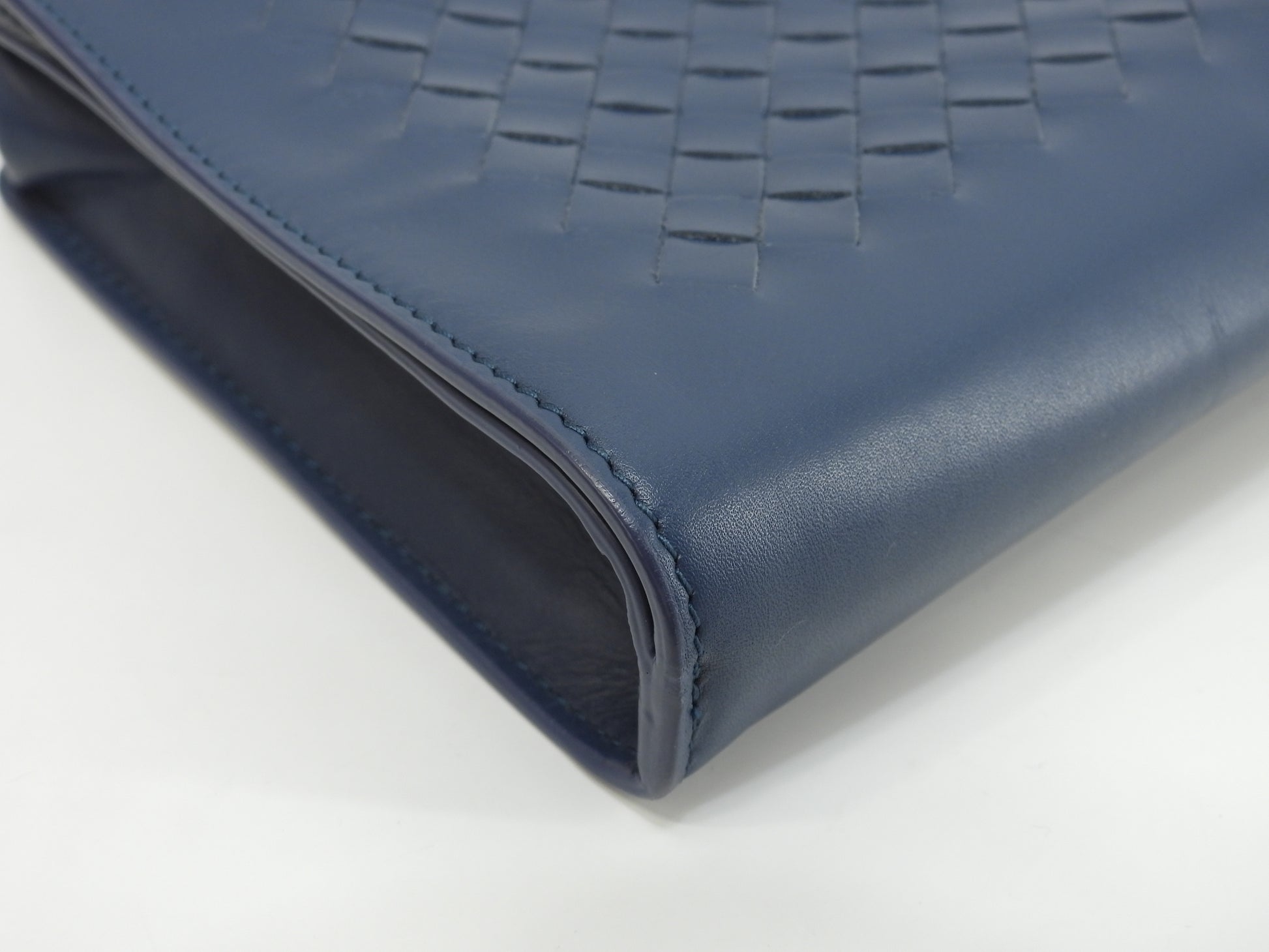 ボッテガヴェネタ クラッチウォレット イントレチャート レザー青 セカンドバッグ 美品@B07040504W