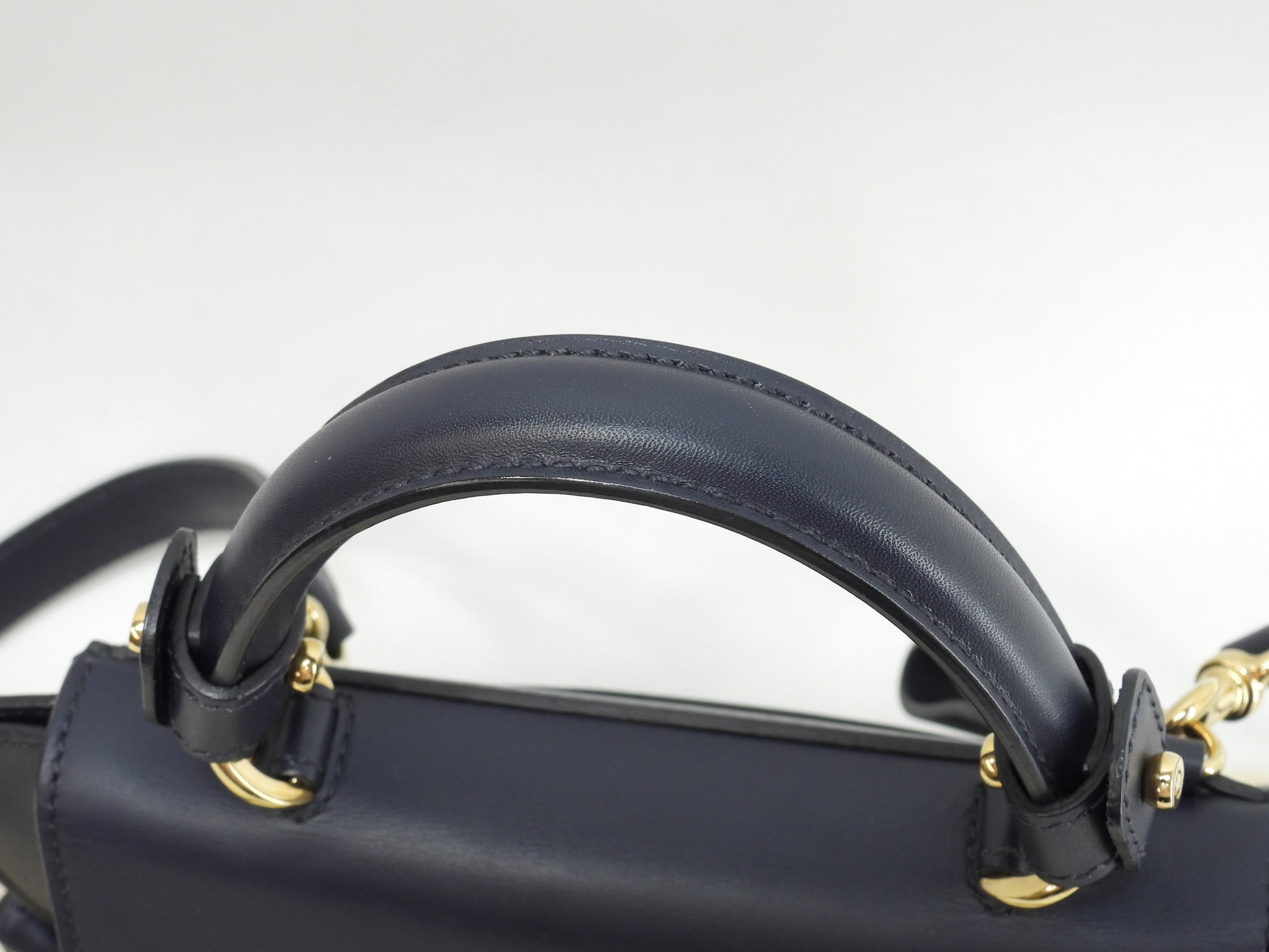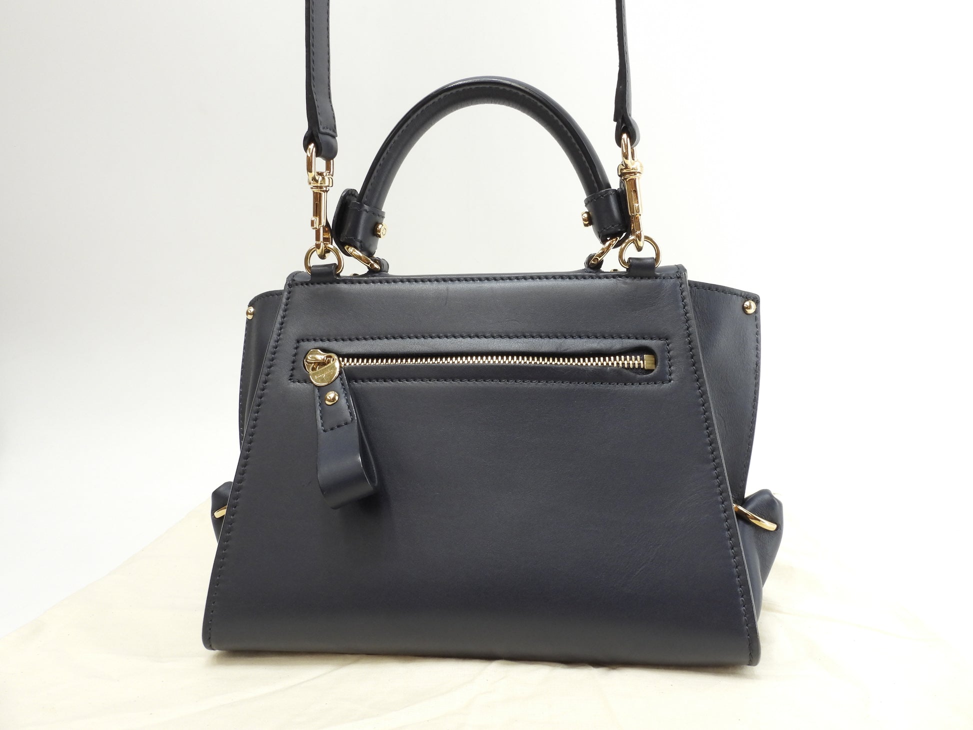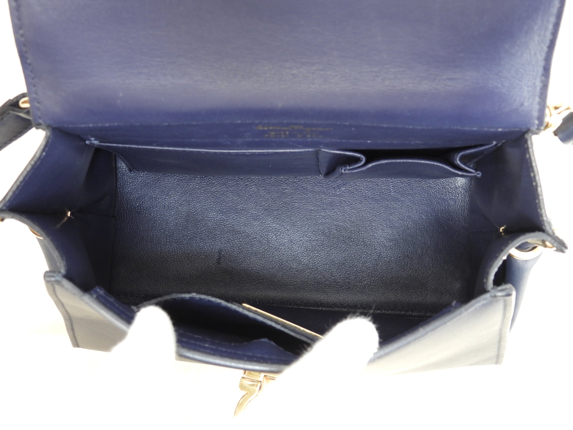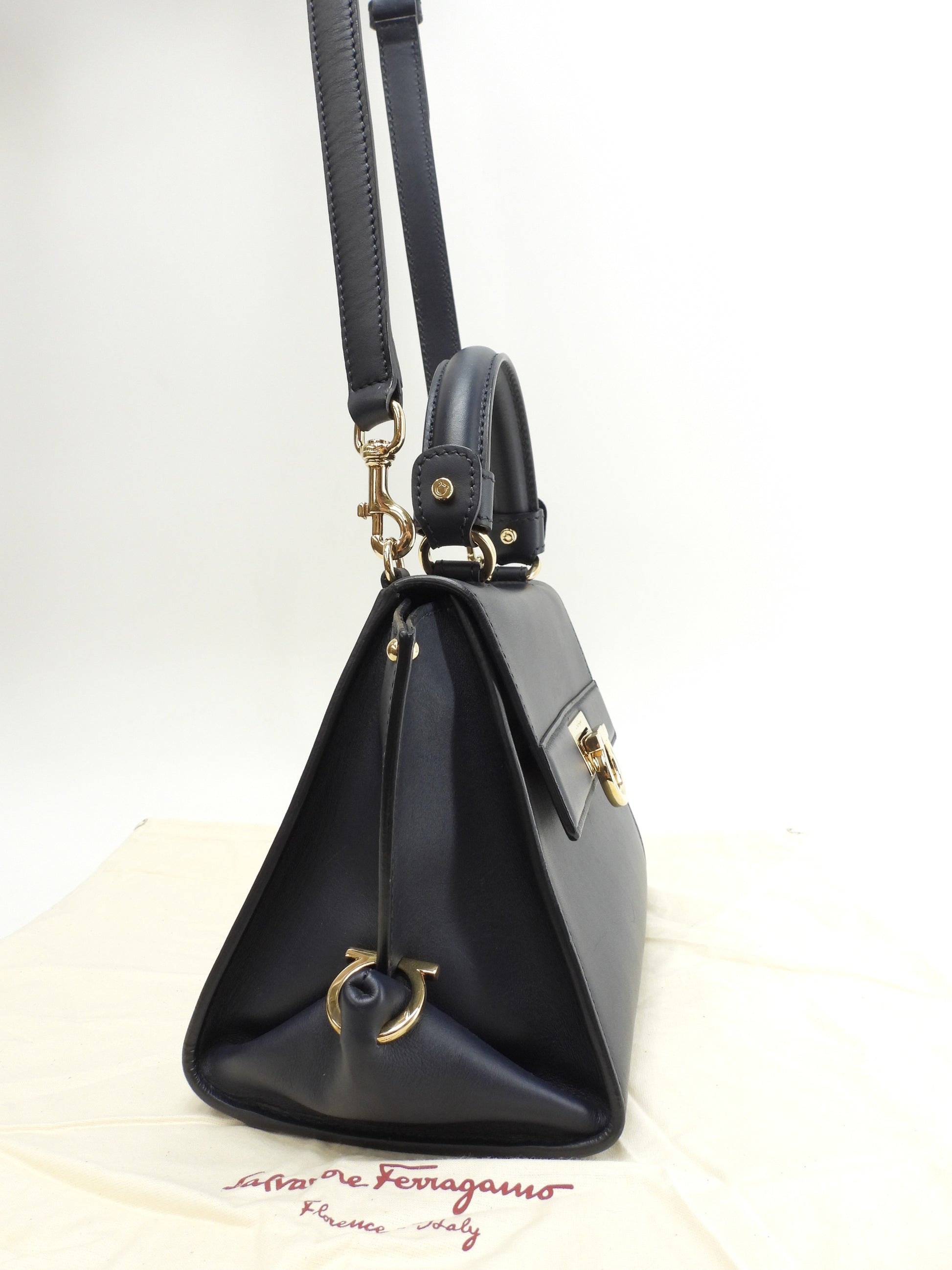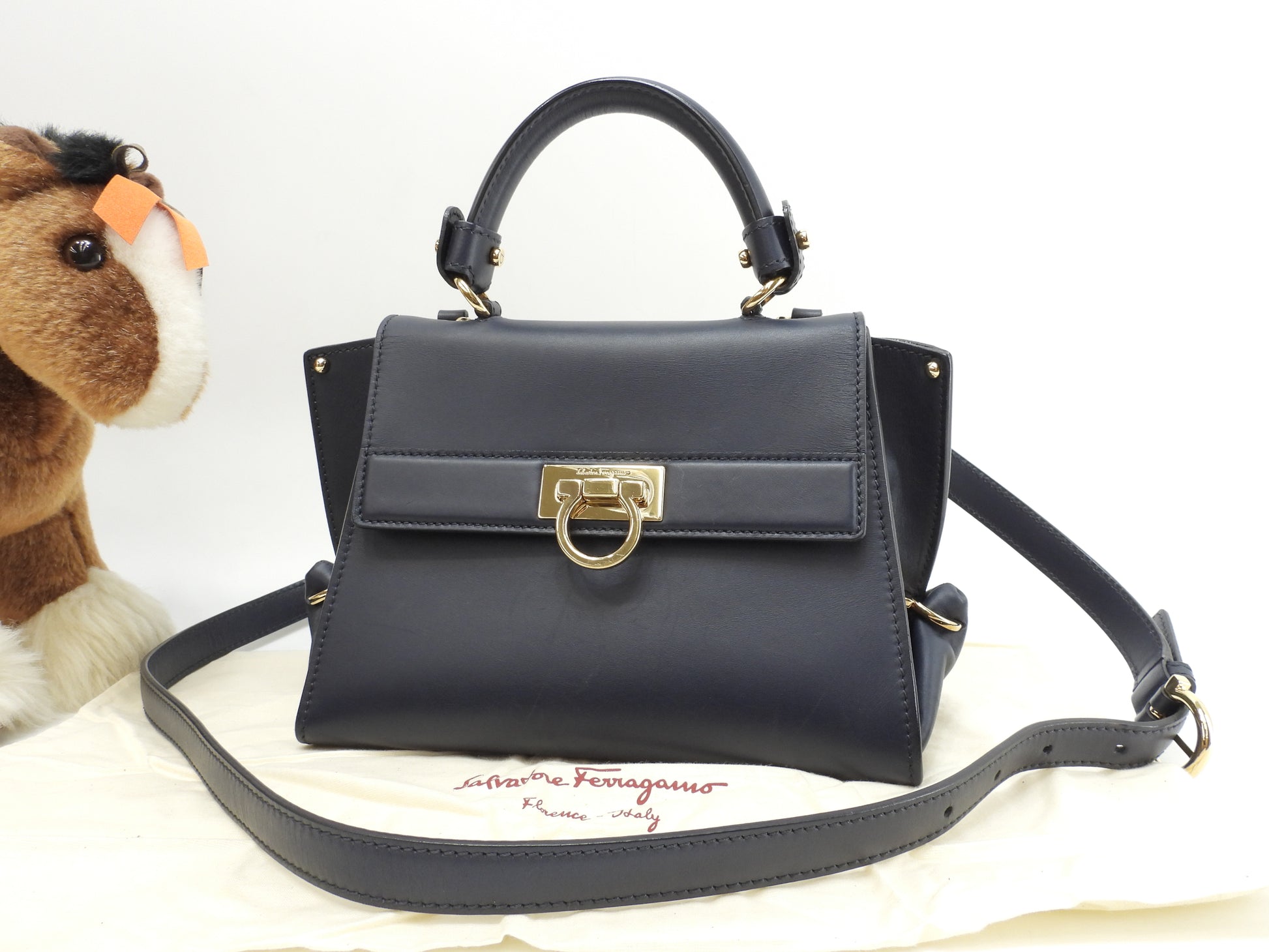 サルヴァトーレフェラガモ ソフィア ガンチーニ レザー紺 s付ハンドバッグ ポシェット 美品@FZ-21D570