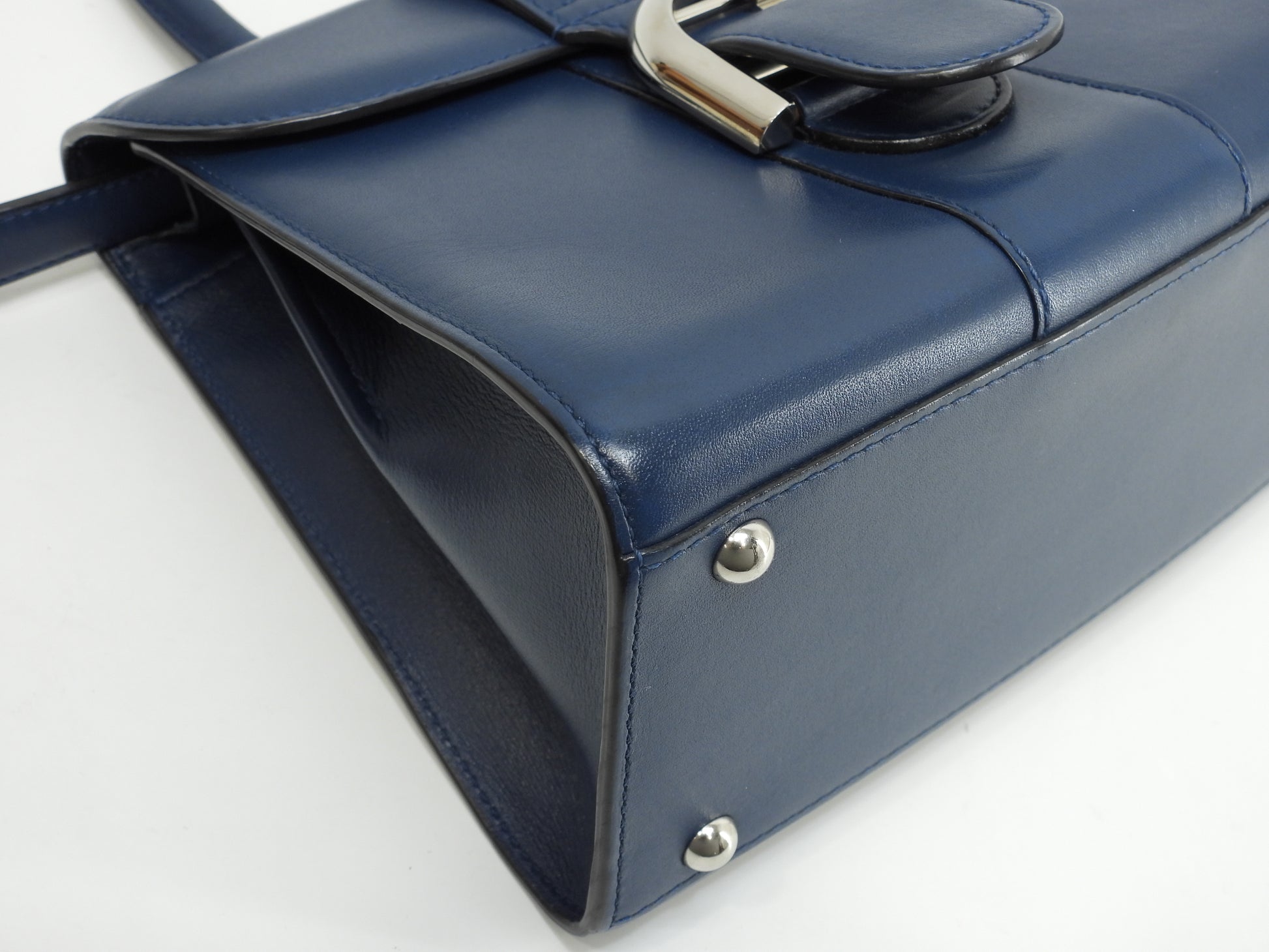デルヴォー ブリヨンミニ レザー濃青 シルバー金具 ハンドバッグ ポシェット クロスボディ@ 1