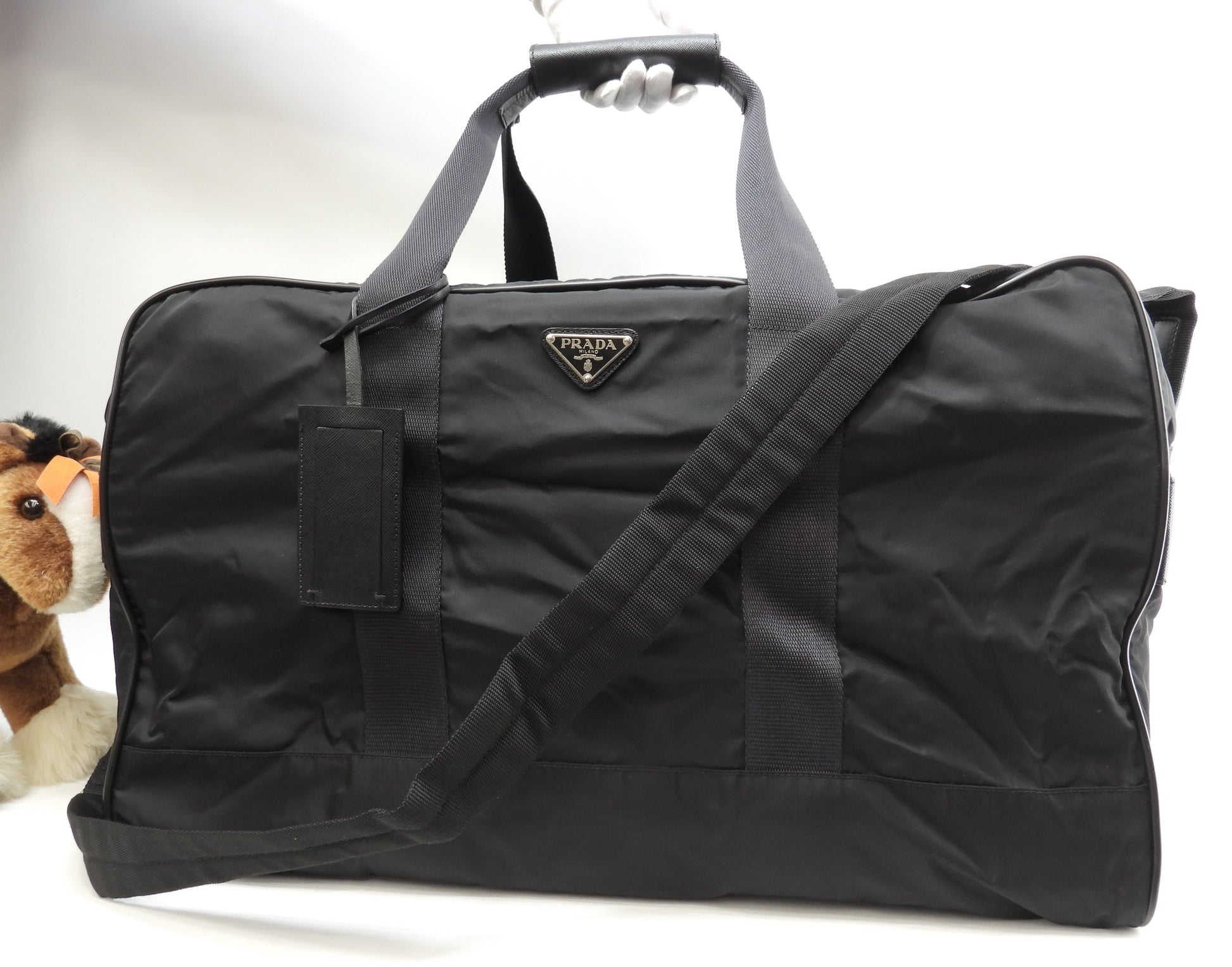 プラダ s付ボストンバッグ大 三角プレート ナイロン革黒 トラベルバッグ 旅行用@56 2
