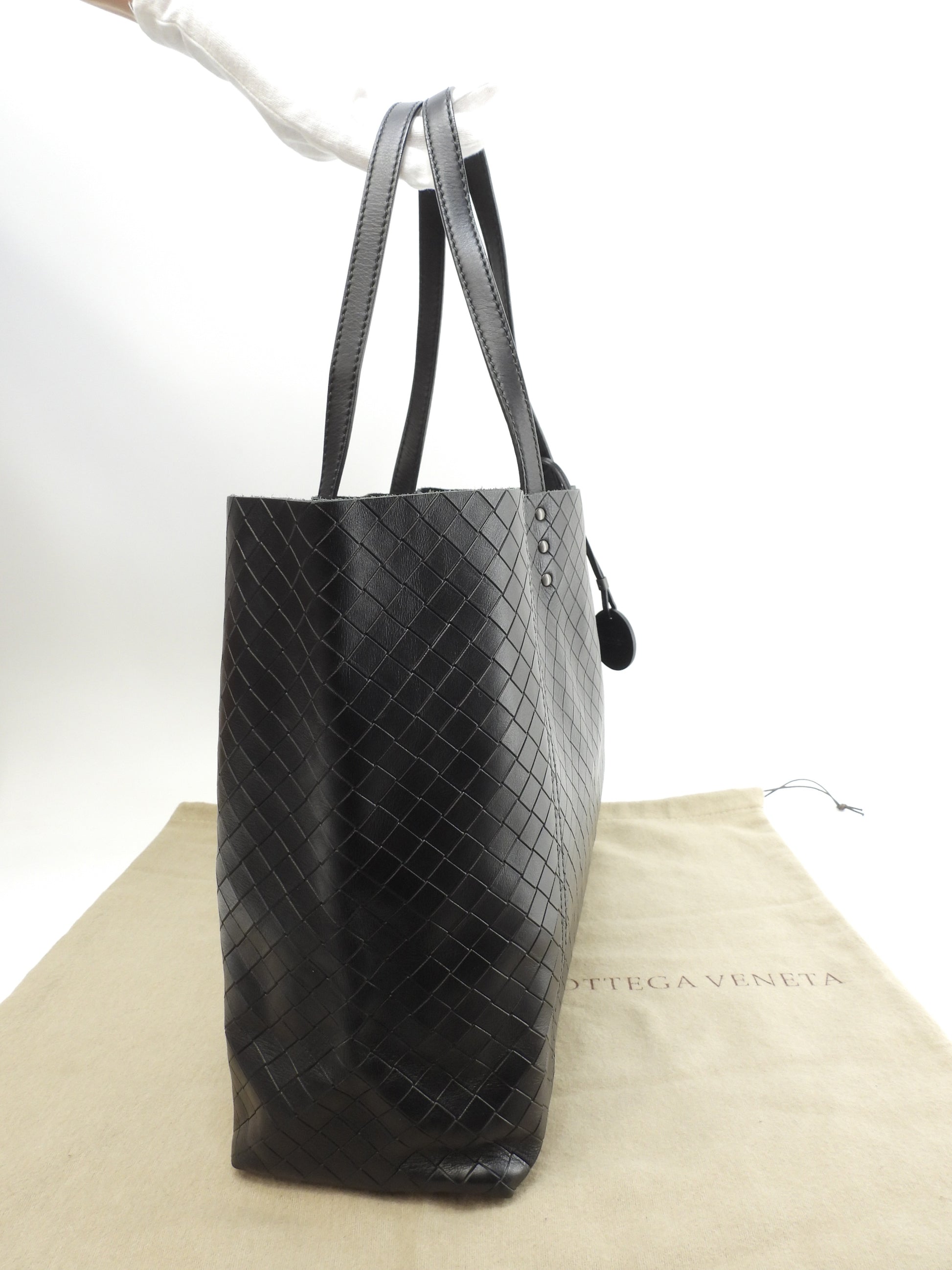 ボッテガヴェネタ トートバッグ中 イントレッチオ レザー黒 ショルダーバッグ 極美品@B01660638G
