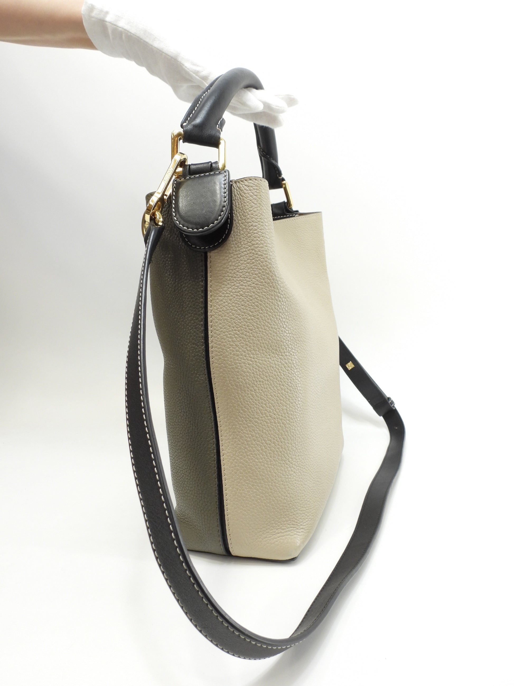 ロエベ Tバケット スモール レザー灰黒緑 2wayハンドバッグ ポシェット クロスボディ@261821