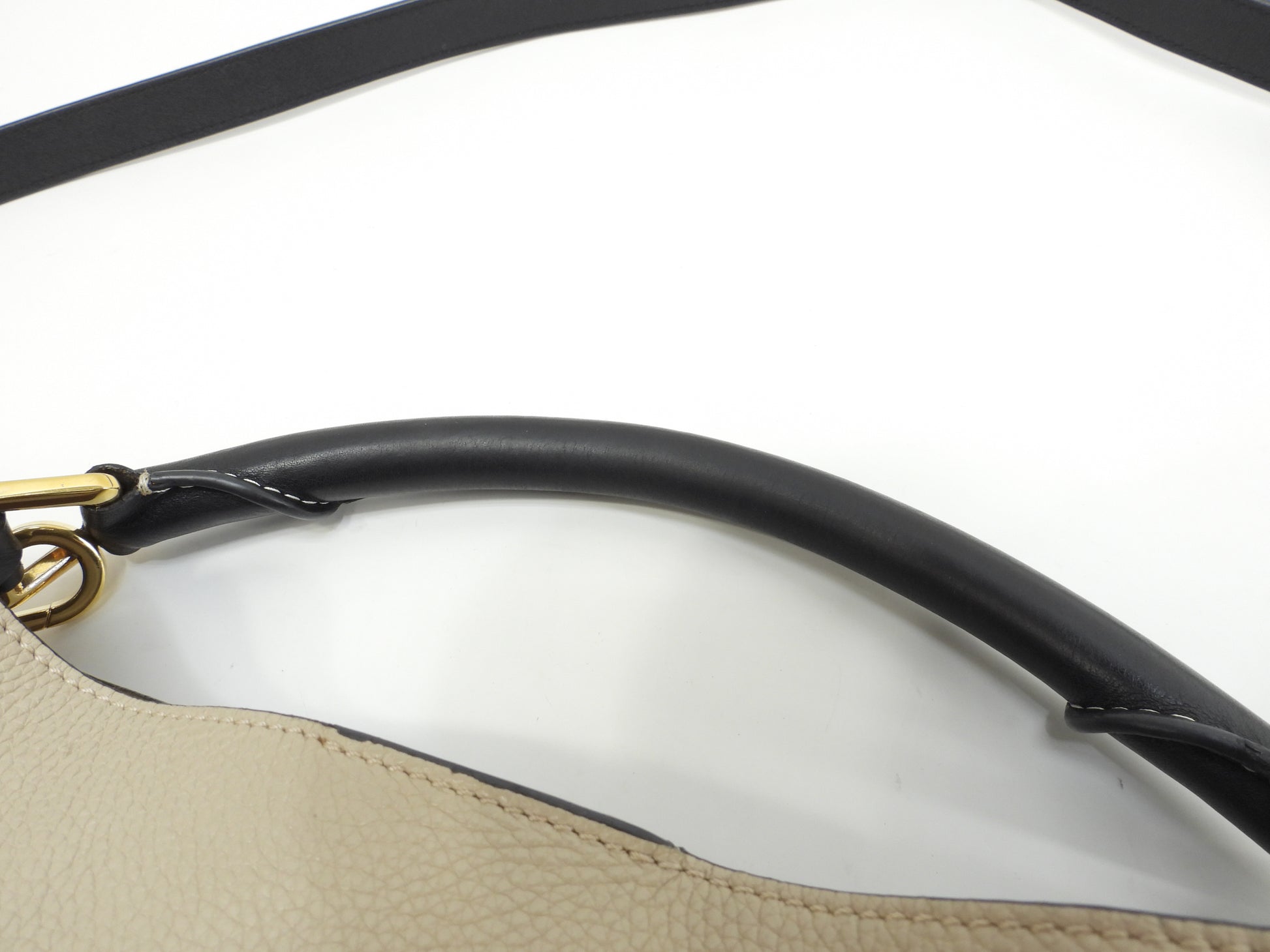 情報 : ボディは若干しわがございますが、目立つダメージはございません。底部角に薄スレ・薄汚れが少しございます。ハンドルは薄スレ・薄汚れが少しございますが、弱りはございません。ショルダーストラップはレザーに薄スレが少しあり、金具同士が擦れる部分に削れがございます。バッグ内は気になるシミ・汚れもなく綺麗です。金具部分は薄スレ・小傷が全体的にございますが、メッキは綺麗なほうです。