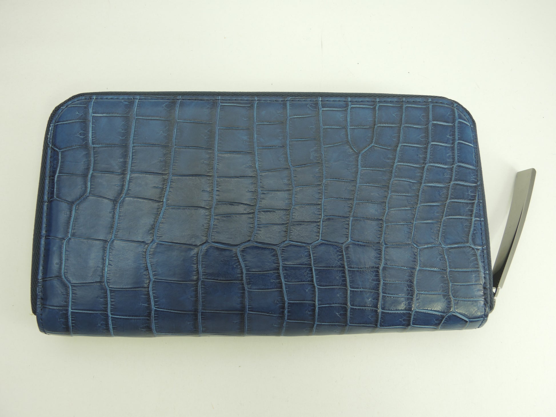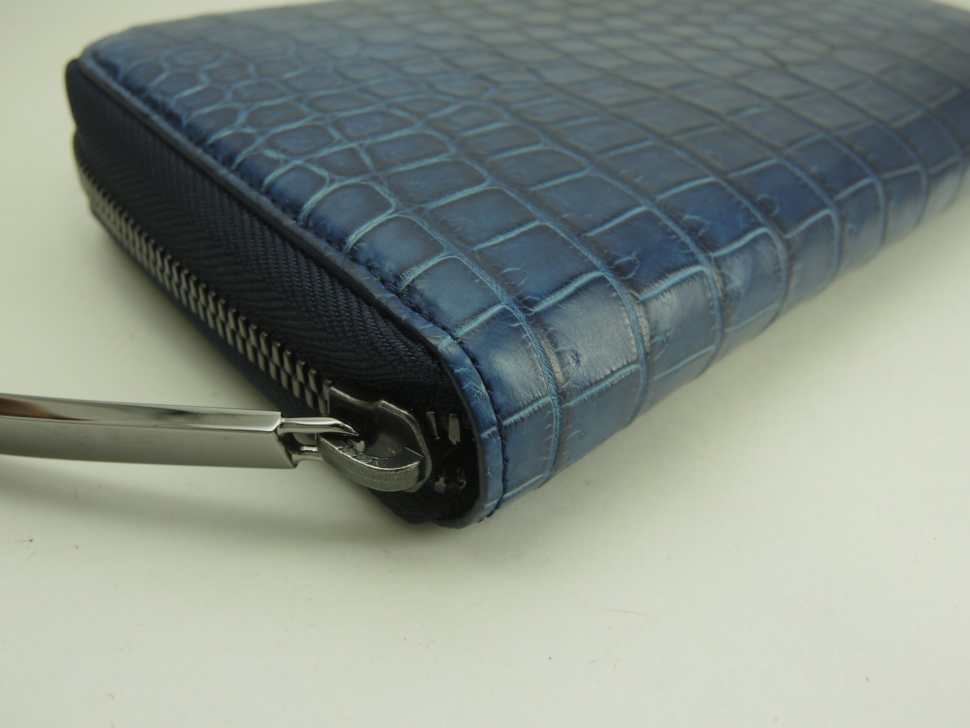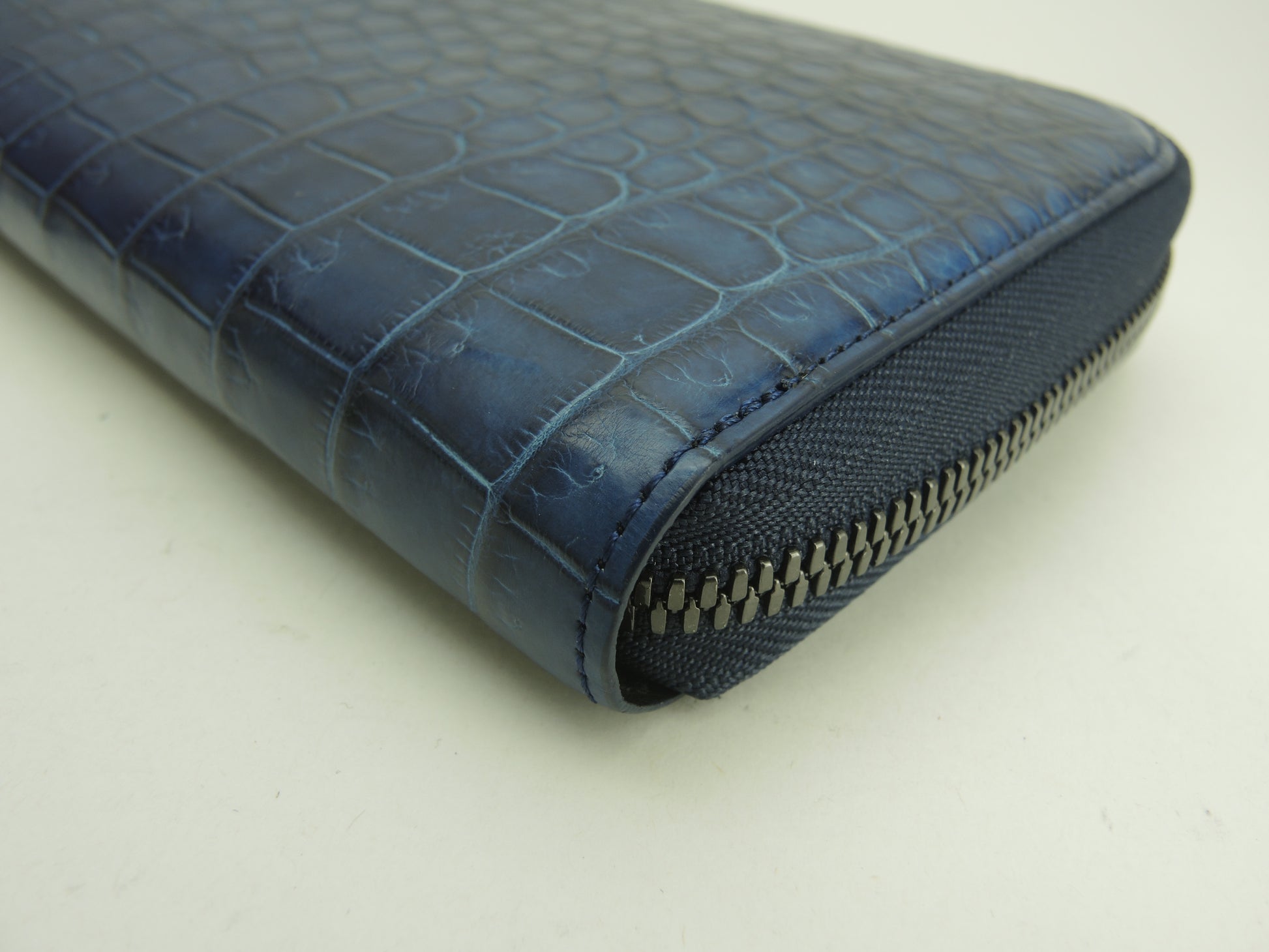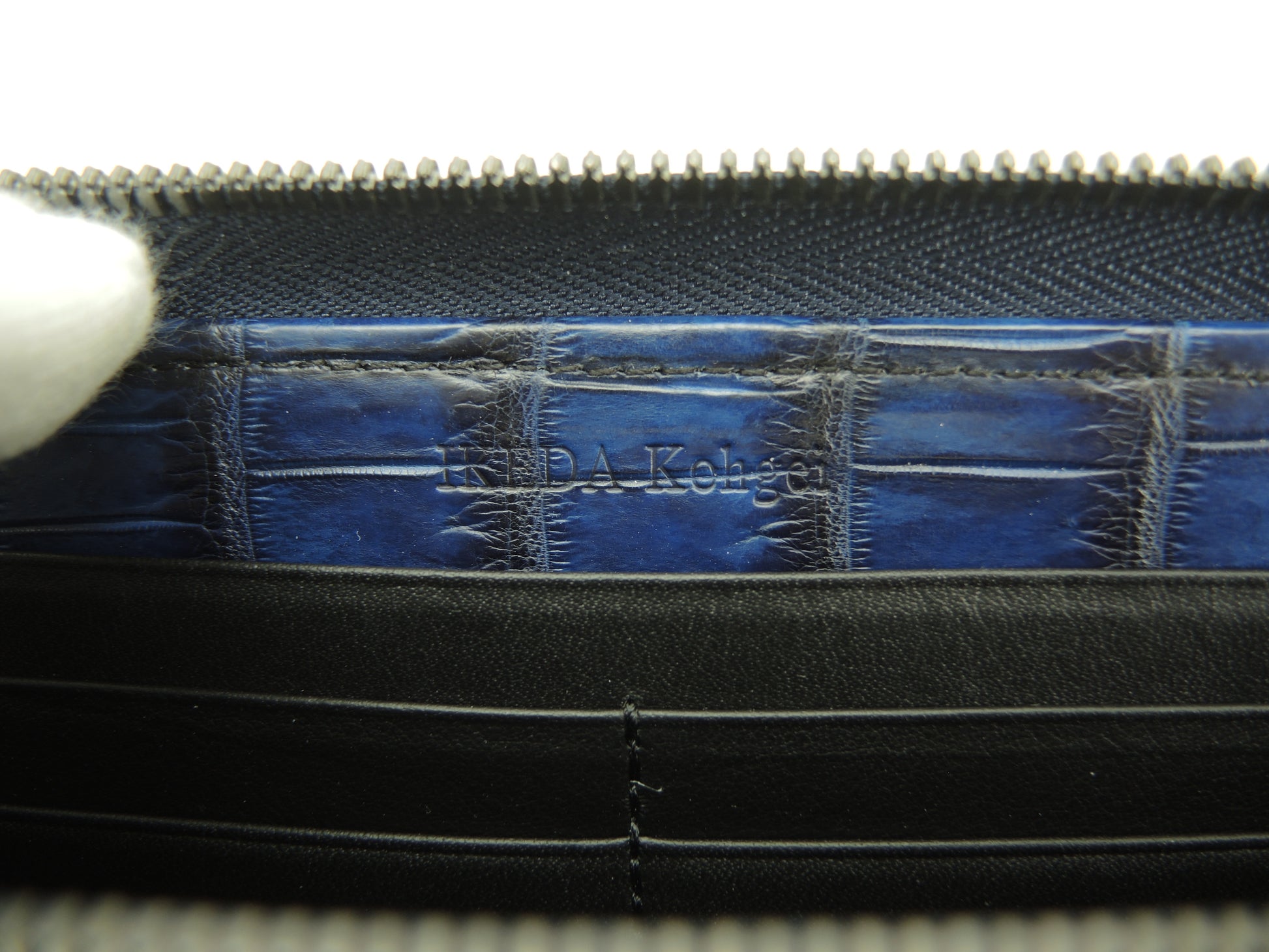 池田工芸 ラウンドジップ長財布大 クロコダイルポロサス 紺 ロングウォレット 極美品@ 1