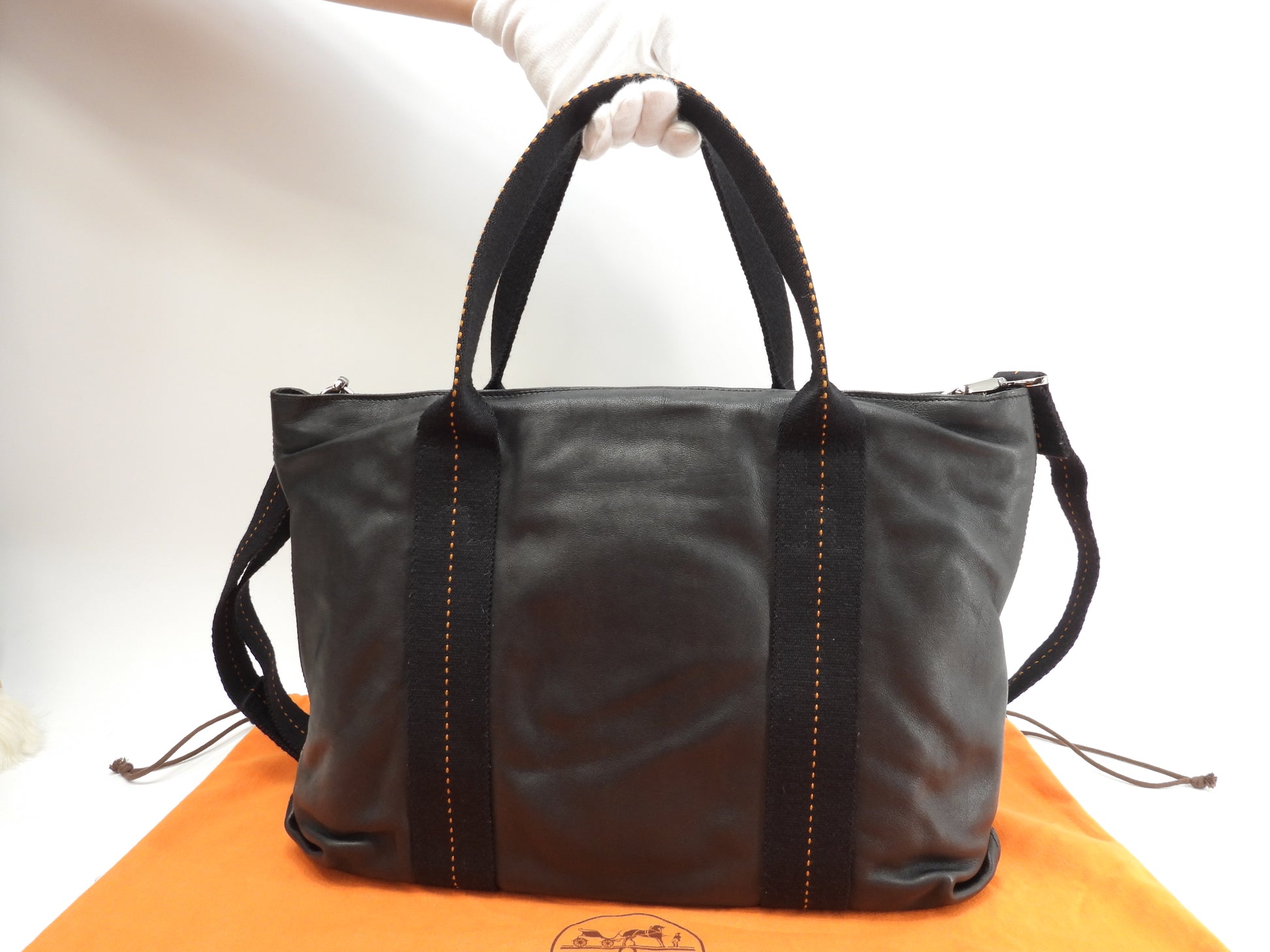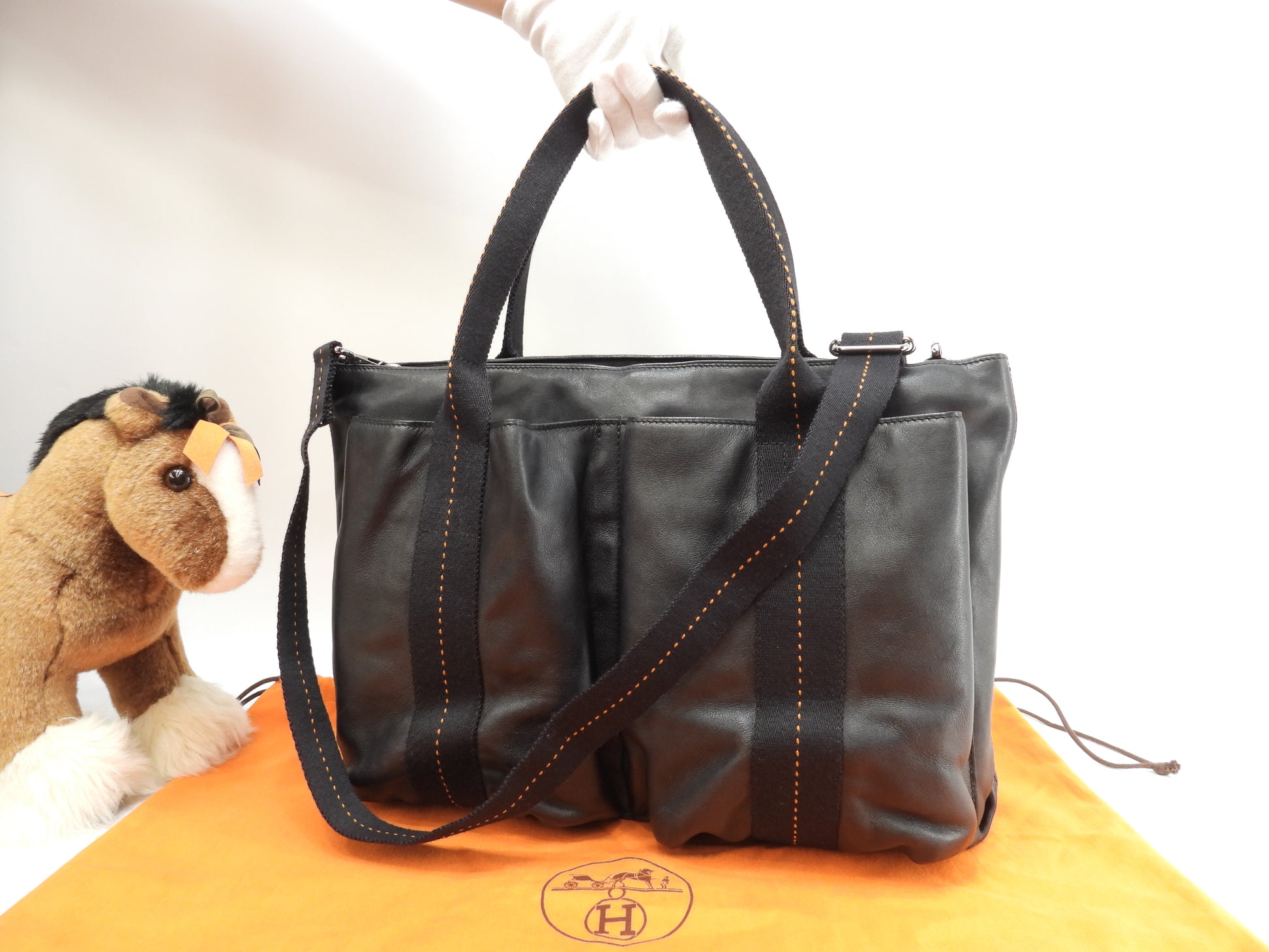 エルメス キャラバンホリゾンタルMM レザー黒 クロスボディバッグ ハンドバッグ 美品@ 56