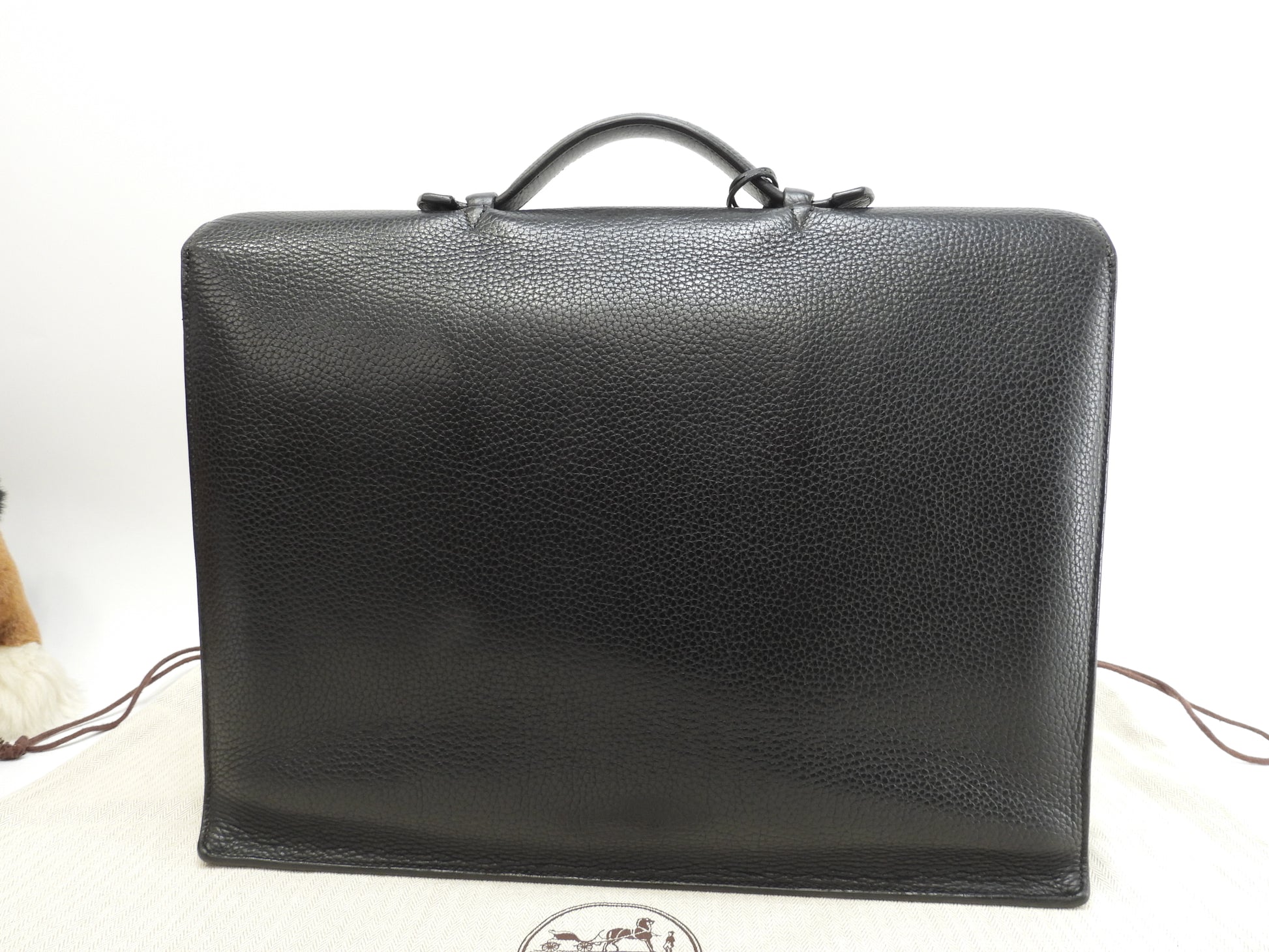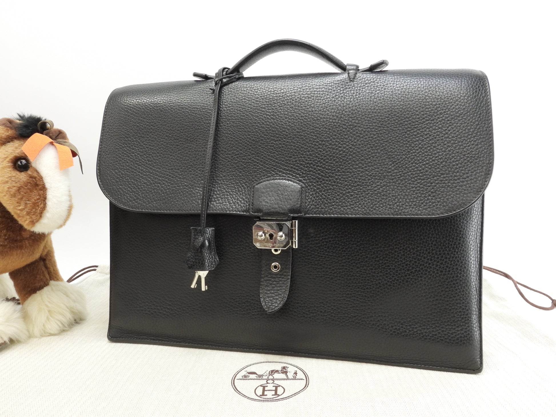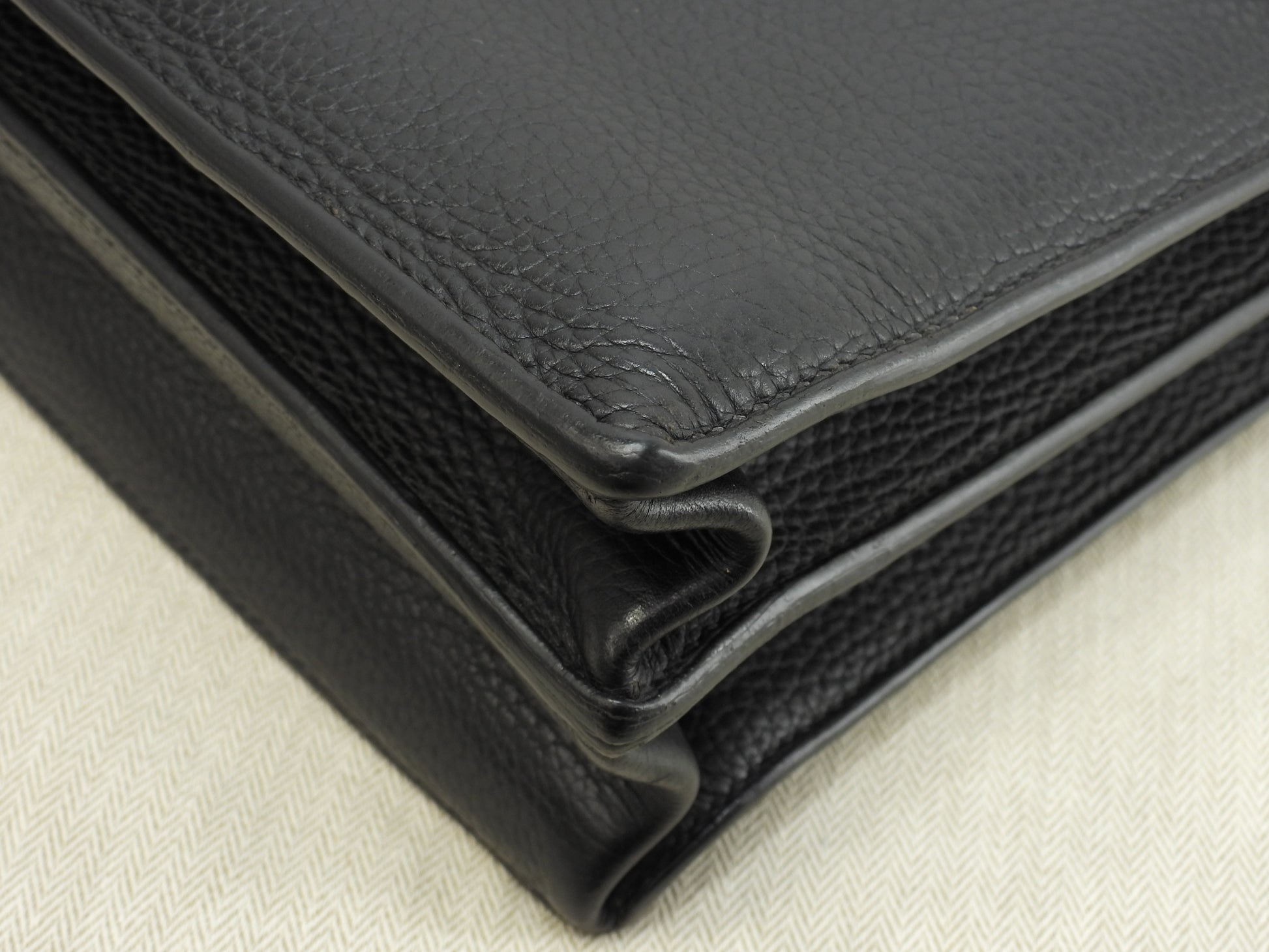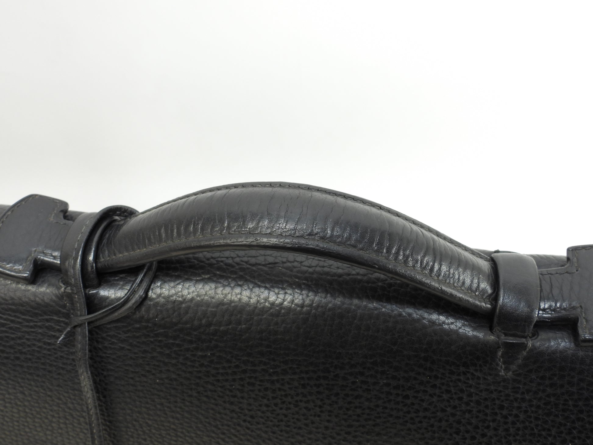 エルメス サックアデペッシュ38 フィヨルドレザー黒 シルバー金具 ブリーフケース 書類かばん@□I
