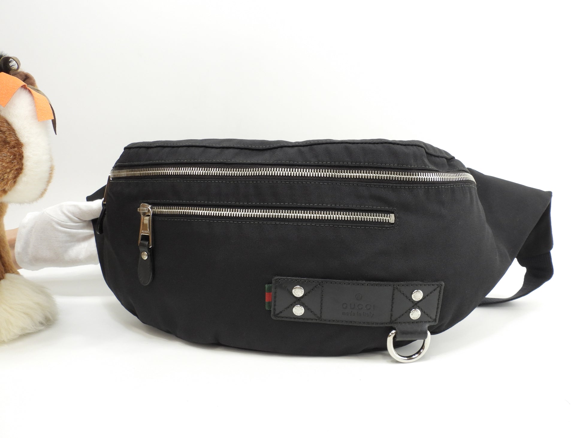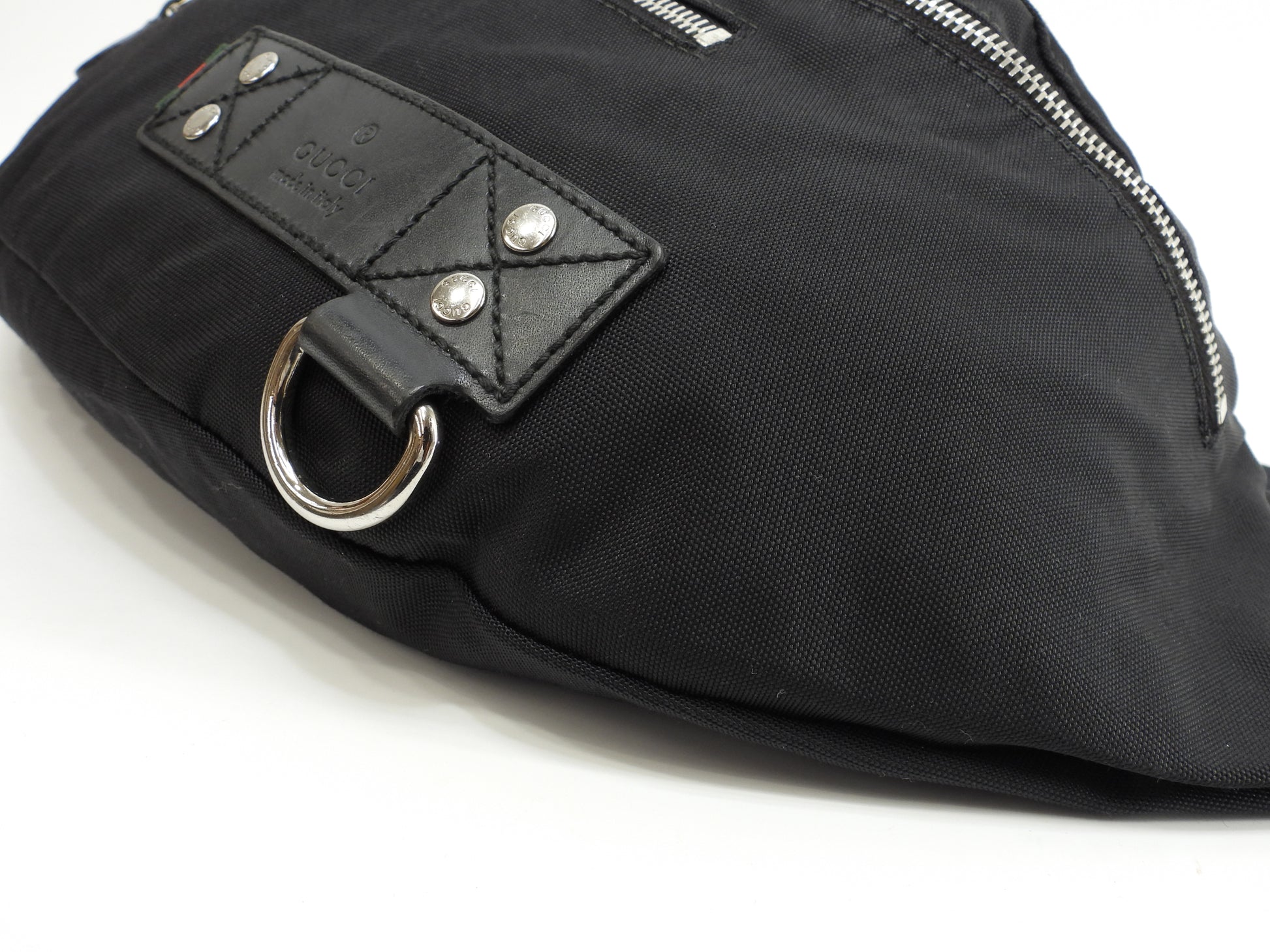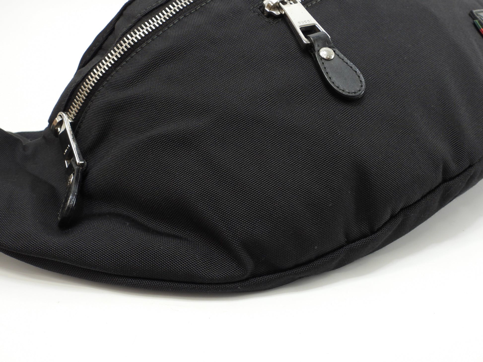グッチ ボディバッグ大 ウェブ ナイロン黒 クロスボディバッグ 斜掛ショルダー 美品@ 18