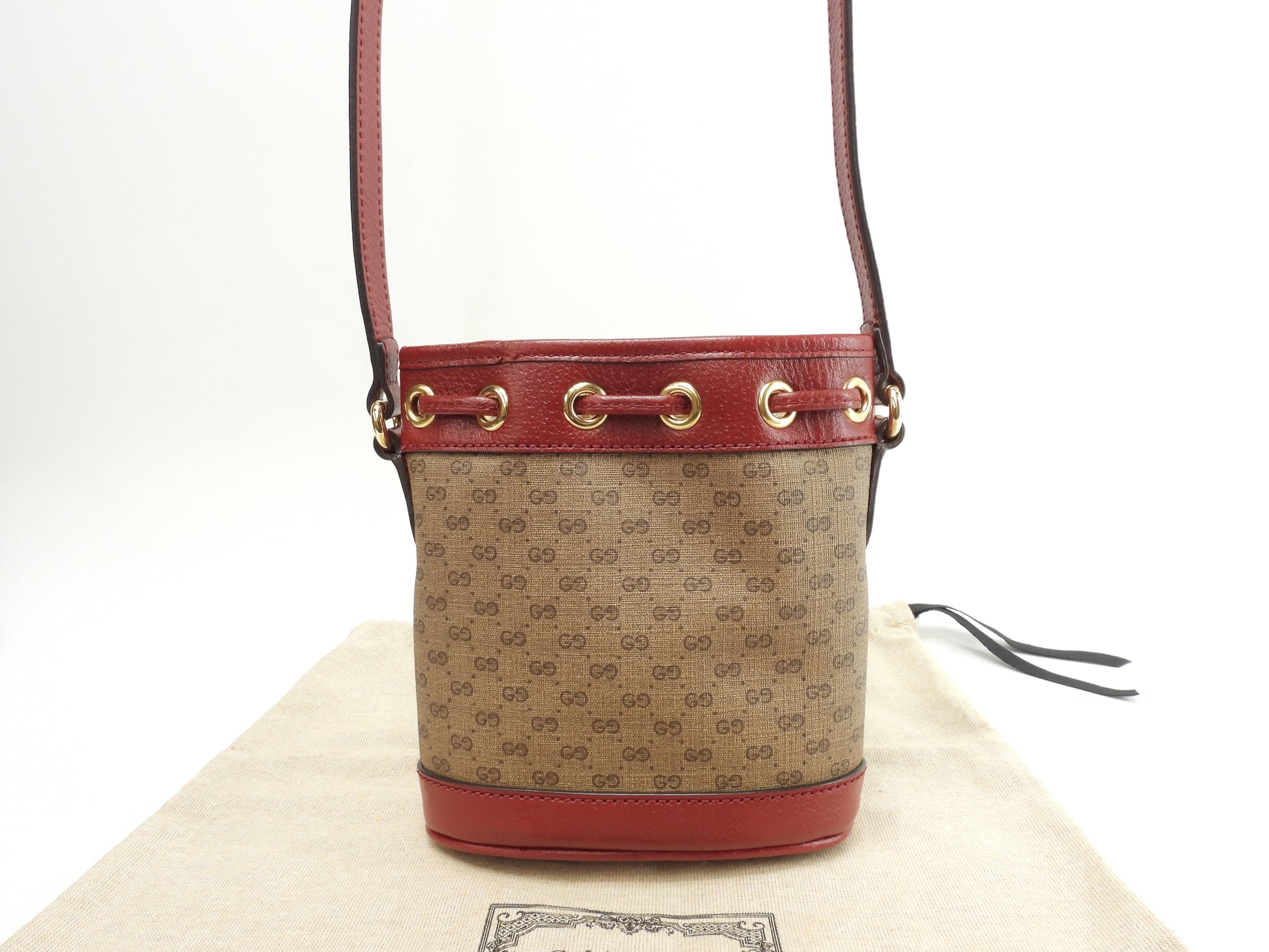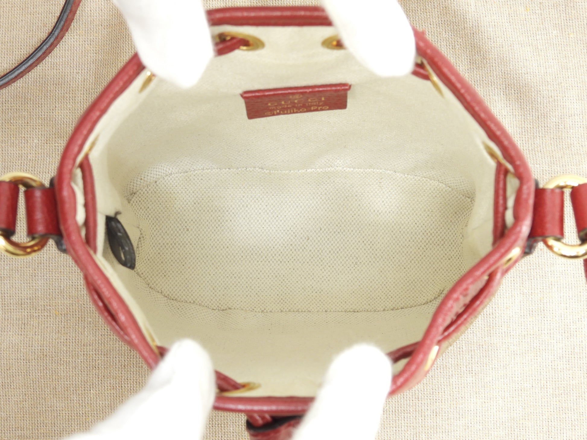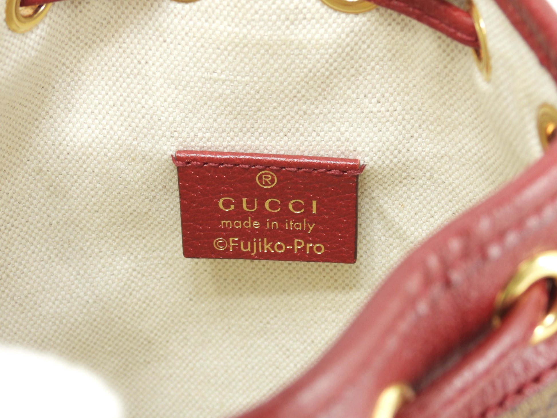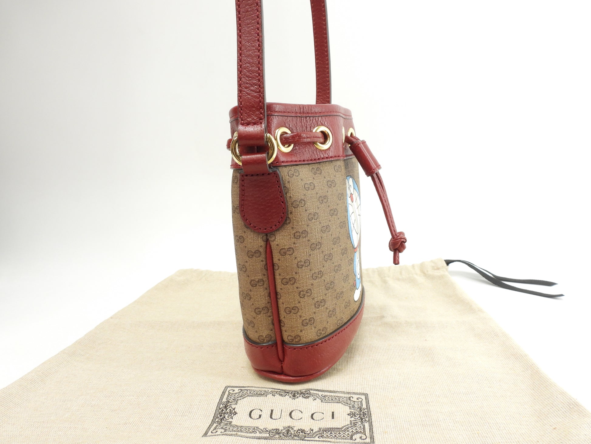グッチ 巾着ポシェット ドラえもん マイクロGG茶赤 クロスボディバッグ 極美品@ 14