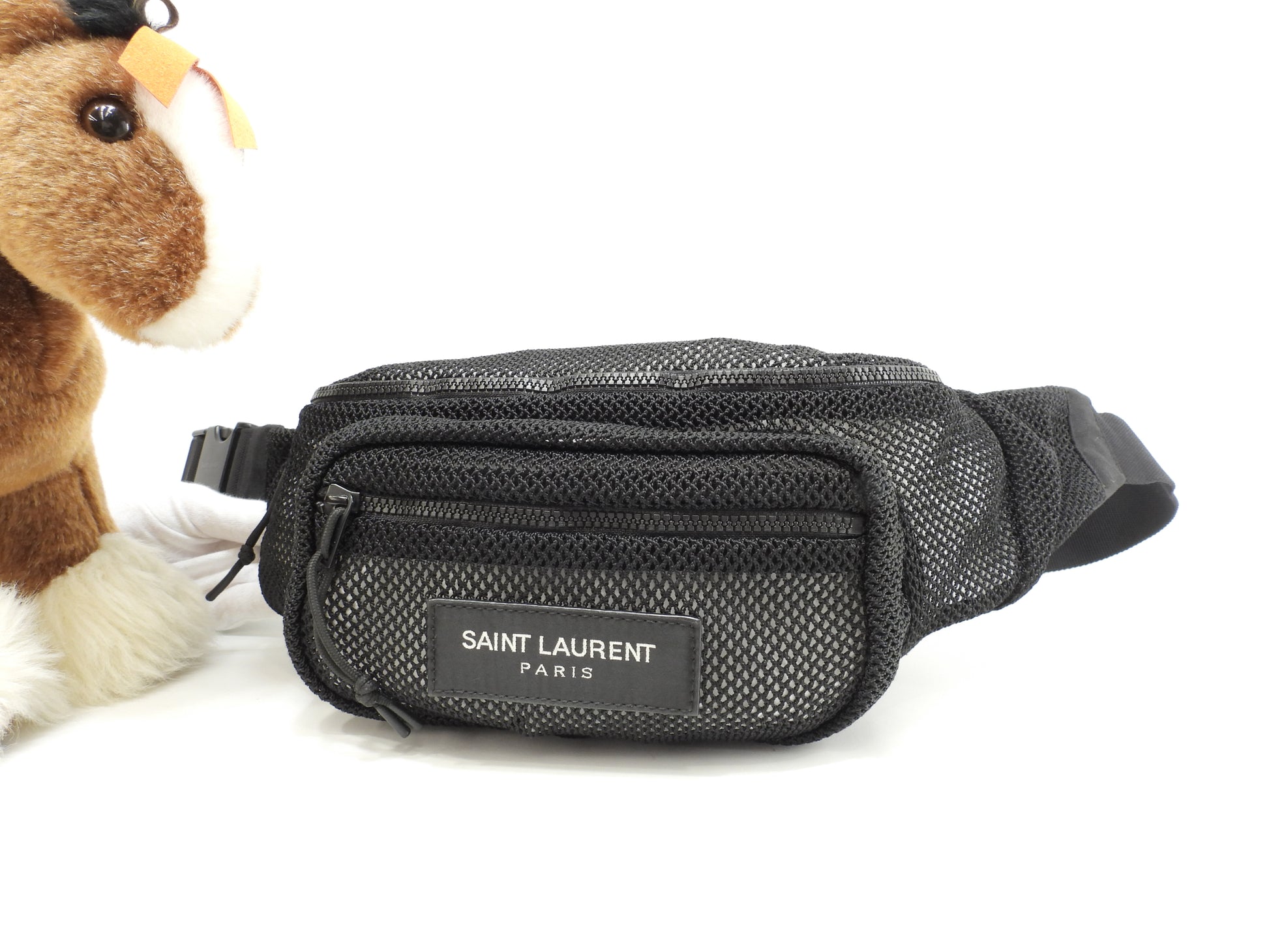 サンローラン ボディバッグ ナイロンメッシュ 黒 ウエストバッグ バムバッグ 美品@ 2