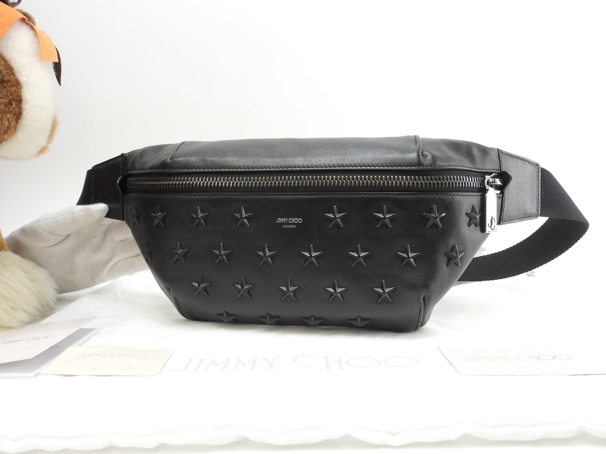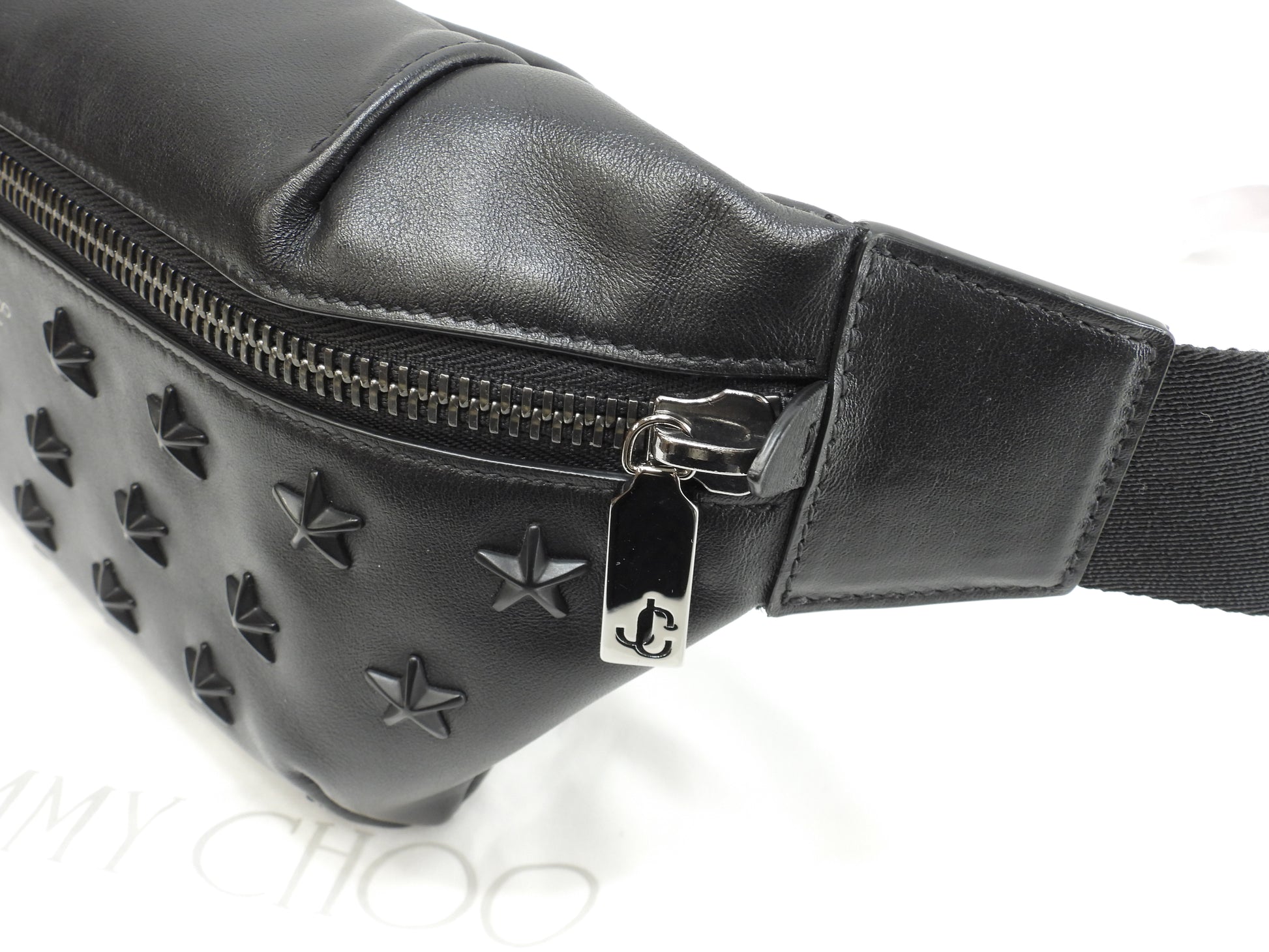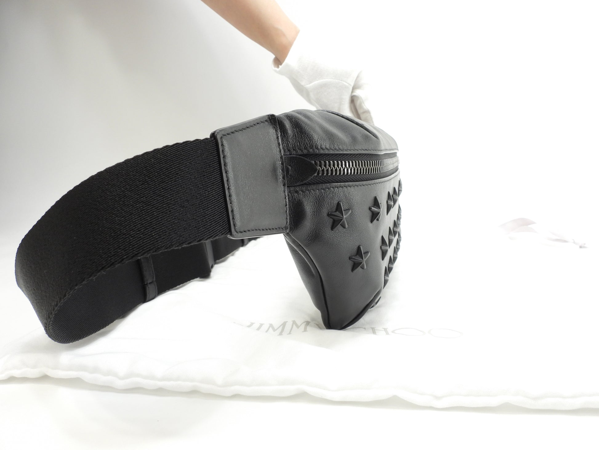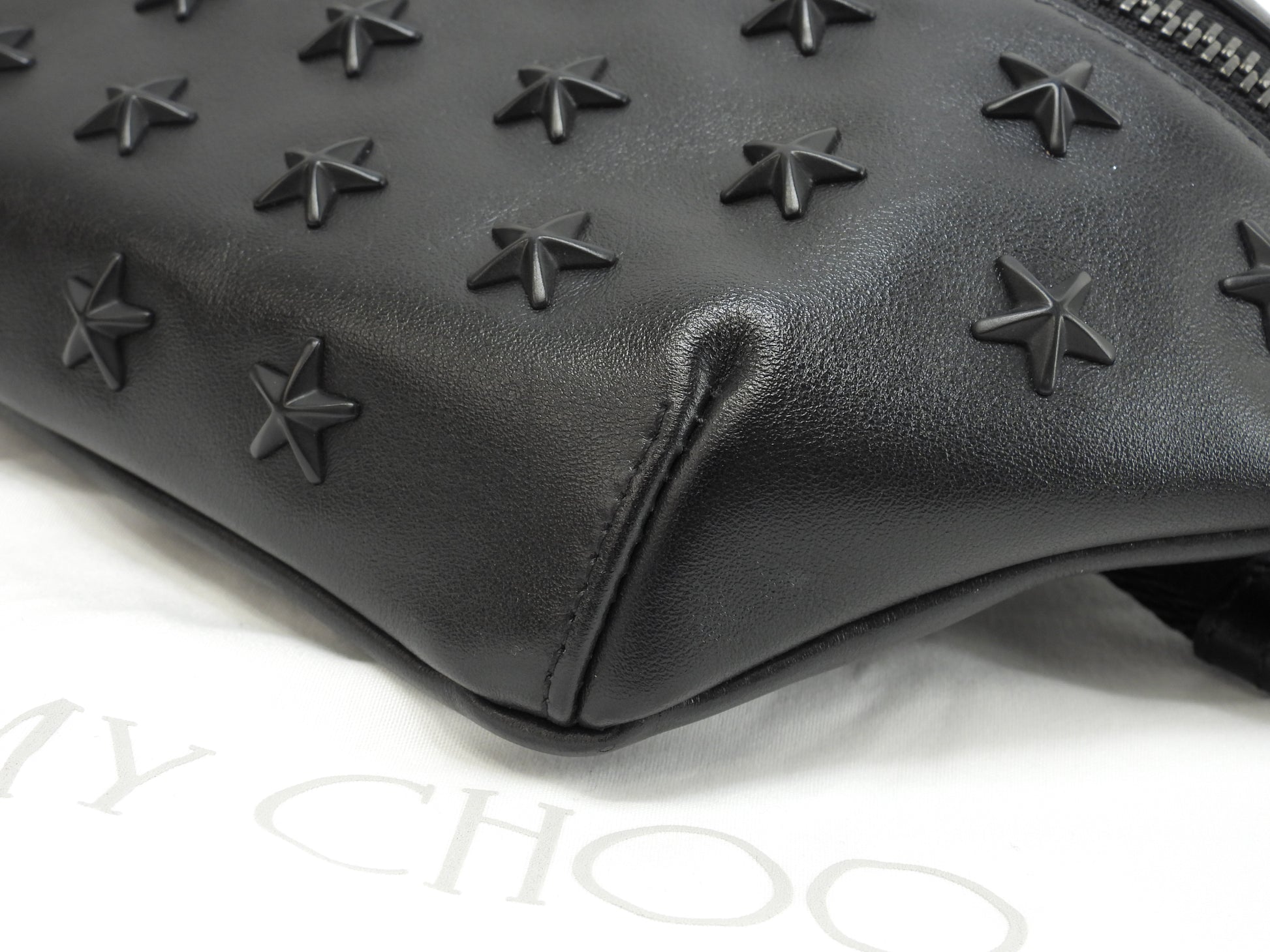 ジミーチュウ フィンズリー 黒星スタッズ レザー黒 ボディバッグ ウエストバッグ 極美品@SYX6RK