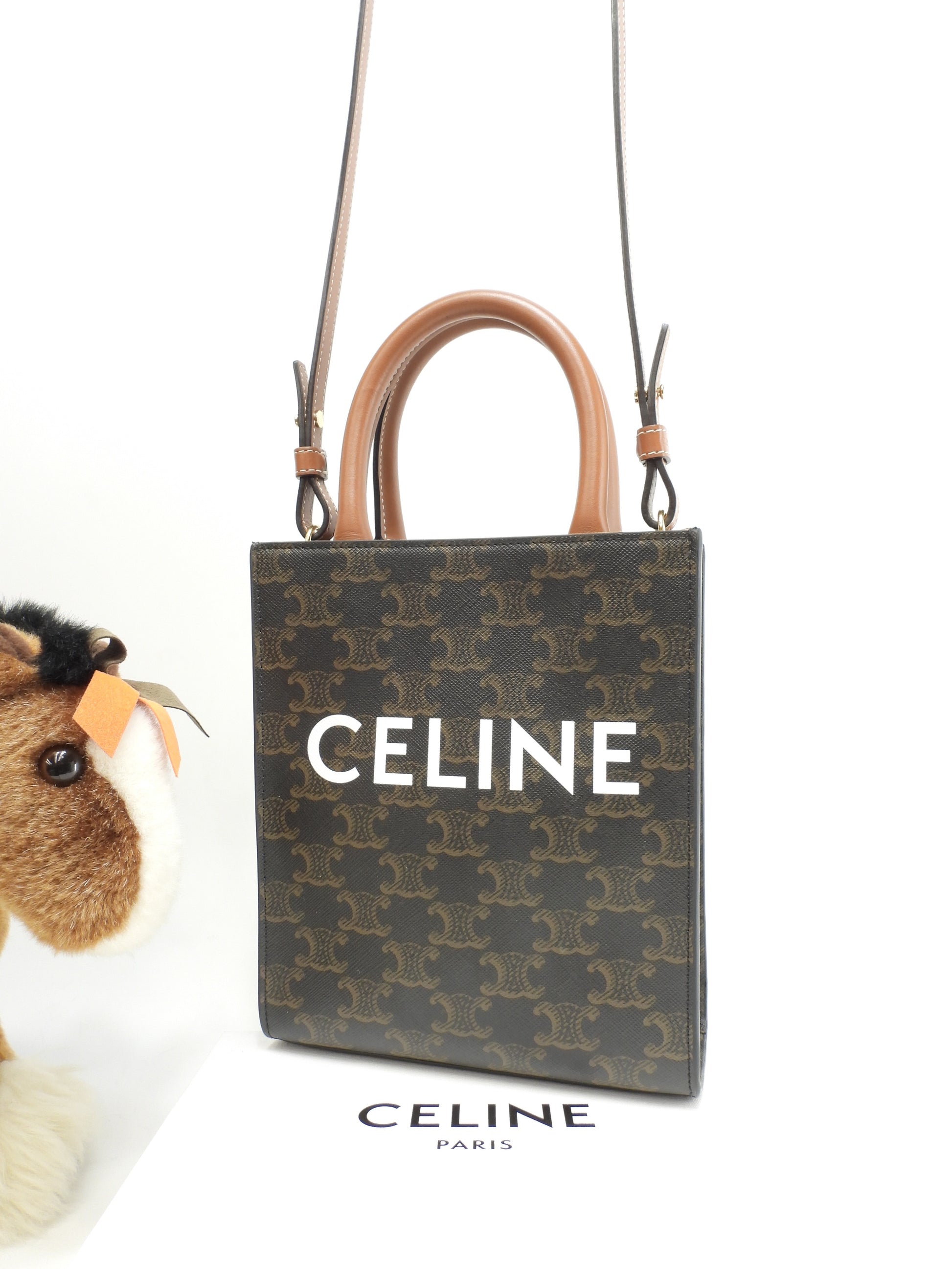 #Celine #HandBag #Strap #Mini #Vertical #Caba #VerticalCaba #TRIOMPHE #PVC #Leather #BK #Brown #75%new #authentic #Crossbody #Bag #Pochette #ShoulderBag #194372BZK #Gold #vintage #rare #secondhand #wholeSale #haibanya #aisai-jp #転売可
