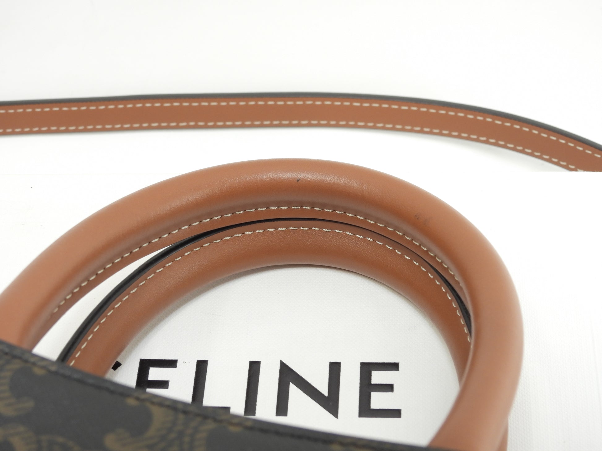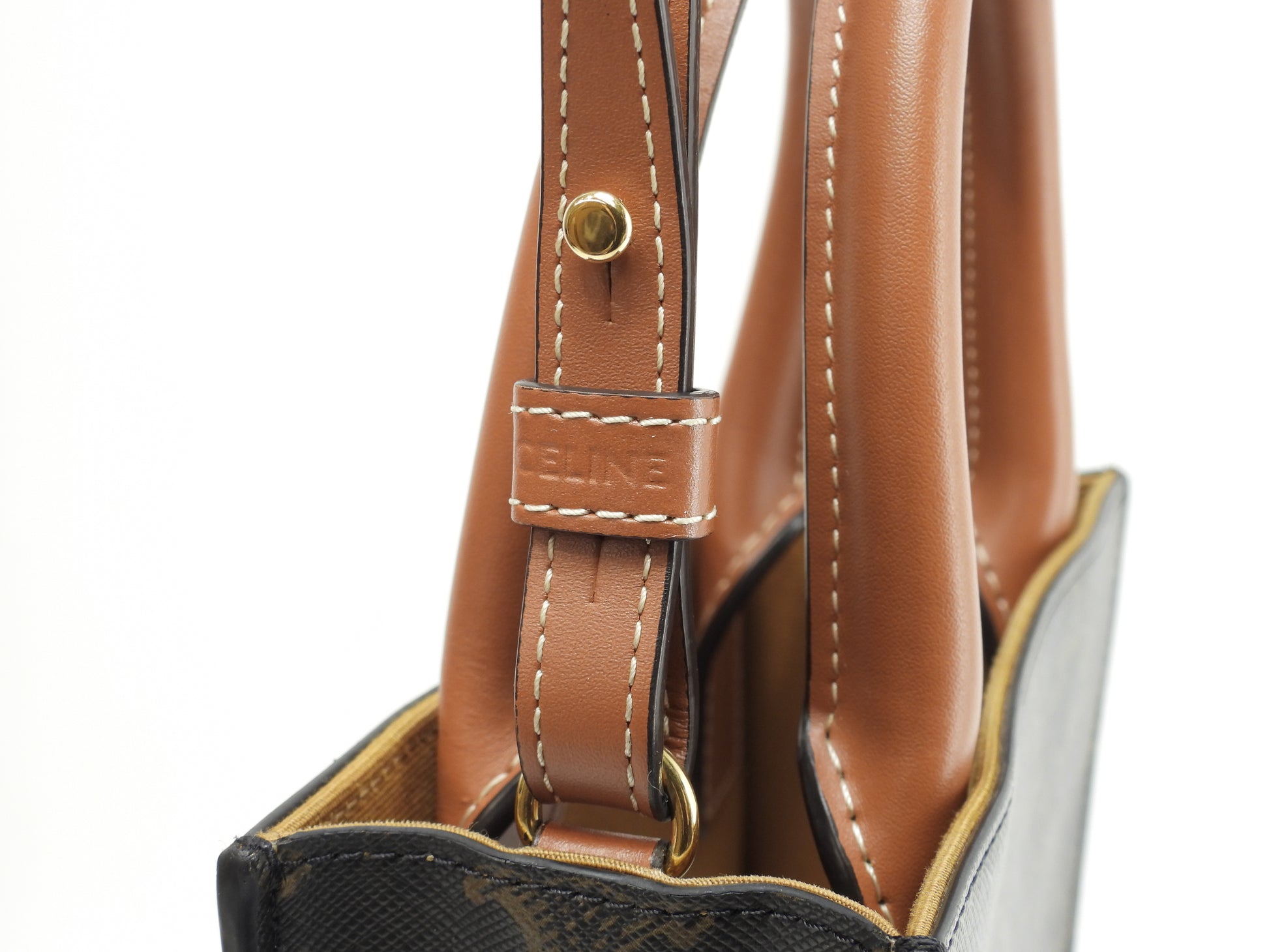 セリーヌ ミニバーティカルカバ トリオンフ 黒茶 s付ミニハンドバッグ ポシェット 美品@ 13