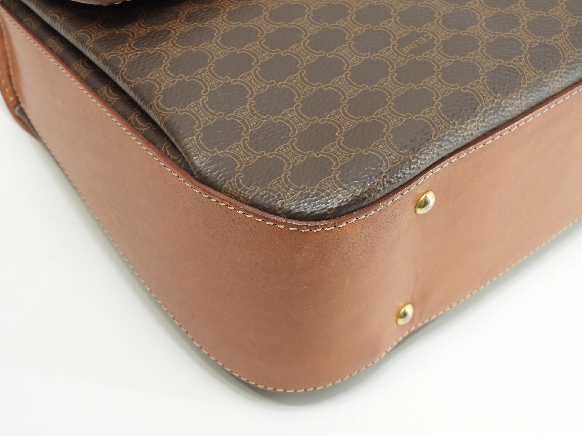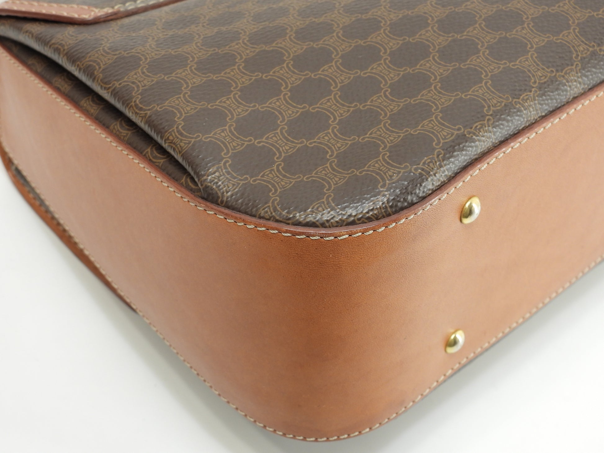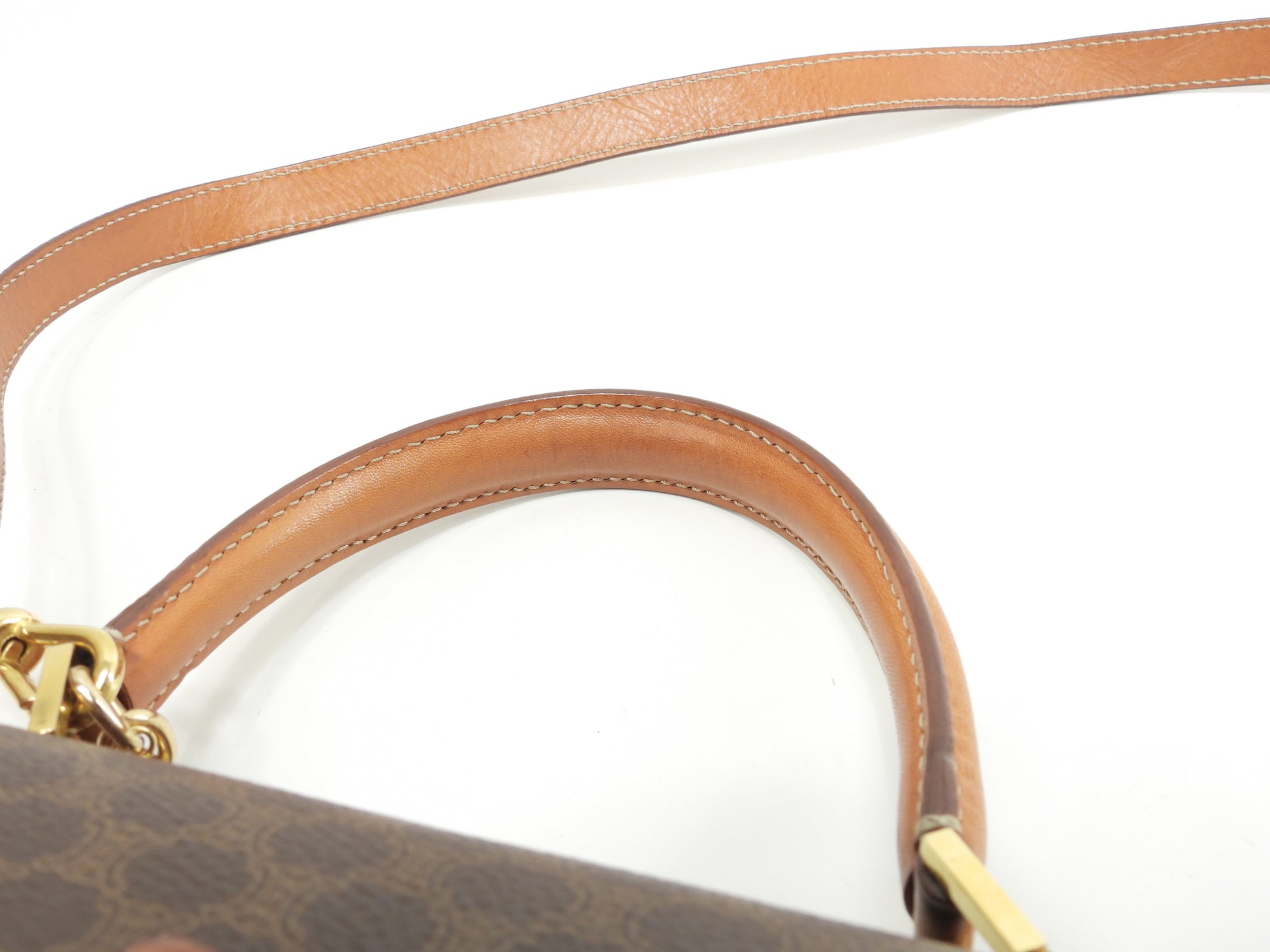 セリーヌ s付ハンドバッグ マカダム トリオンフ茶 ケリー 美品@M94* 7