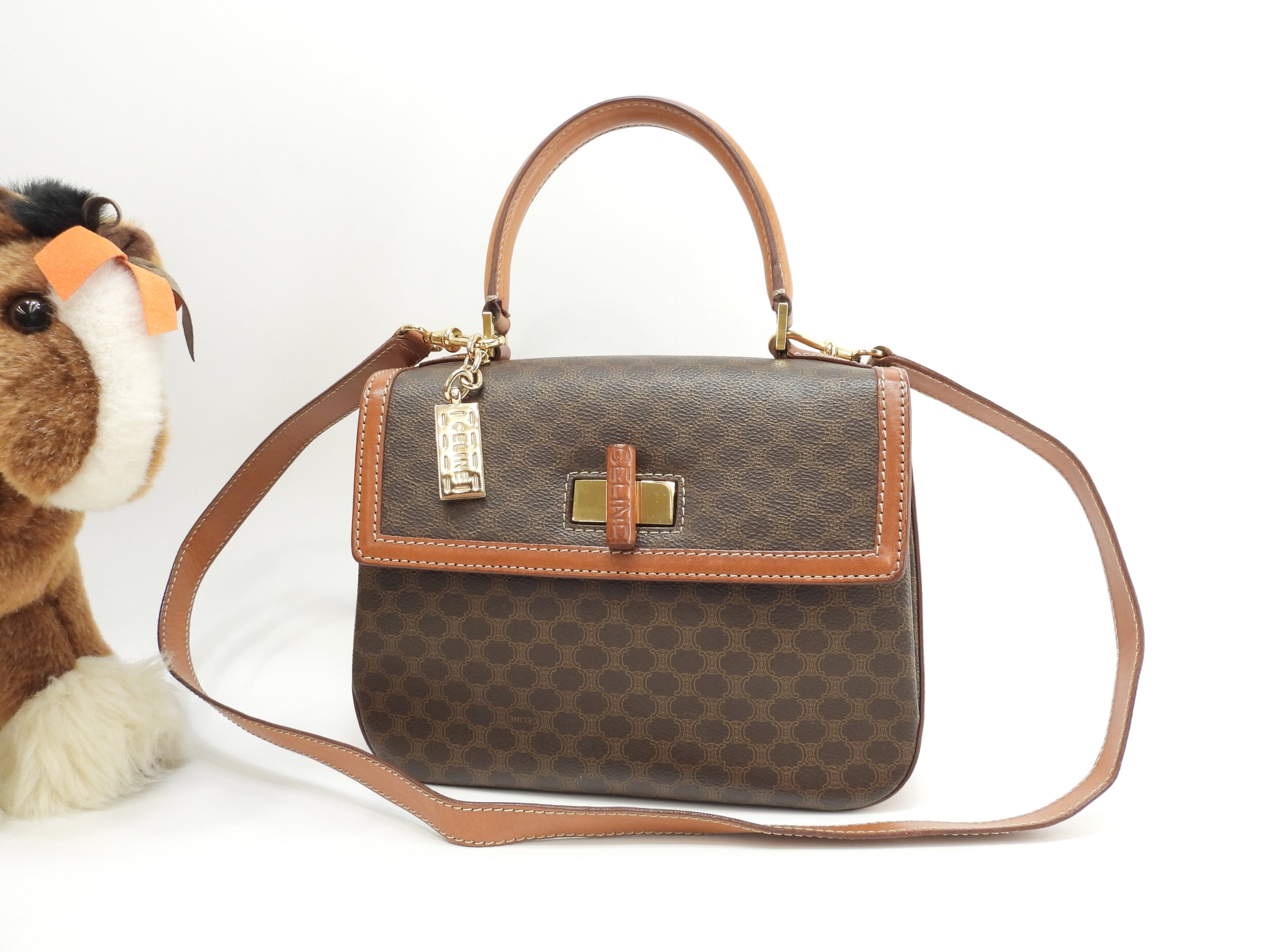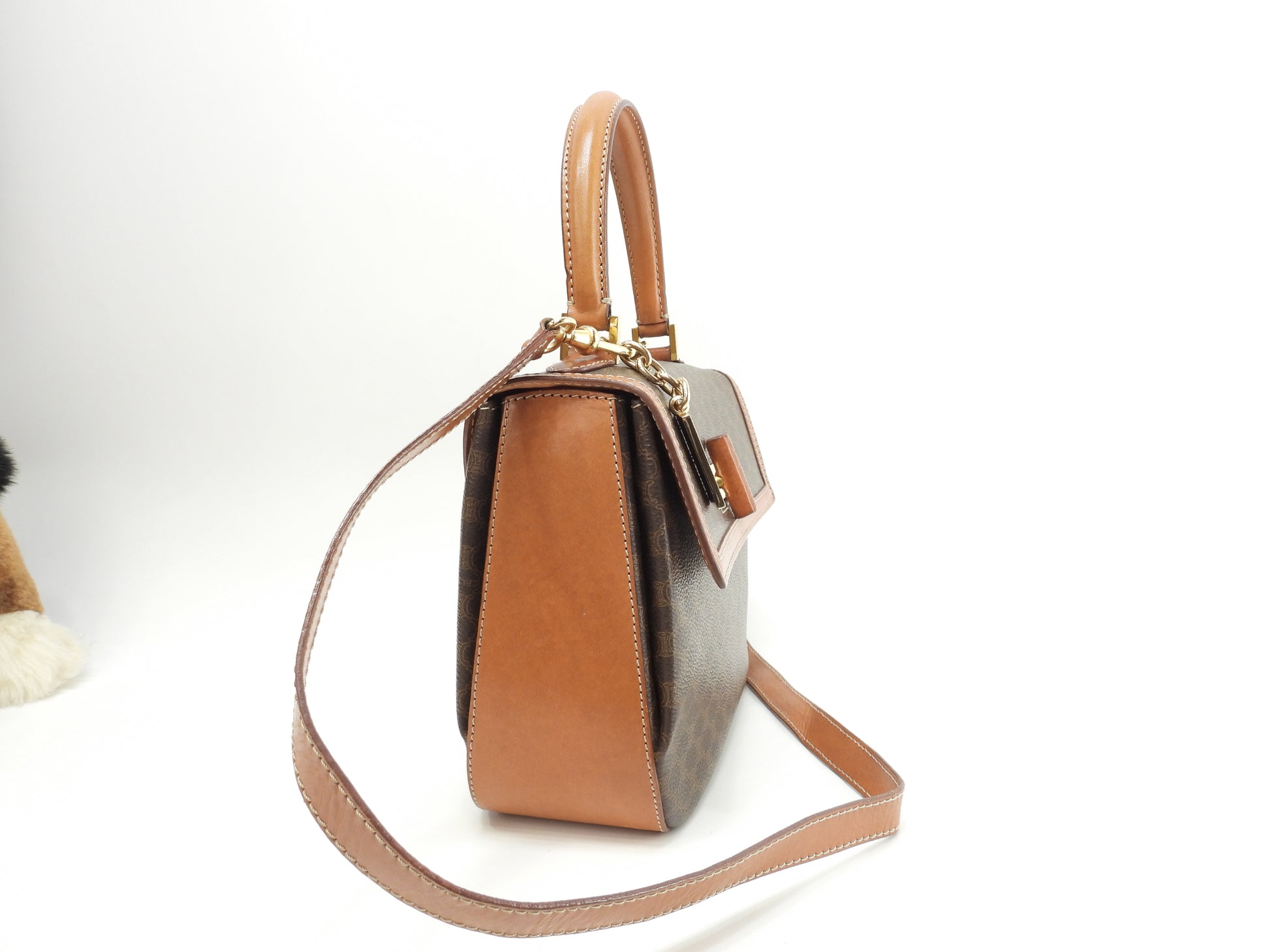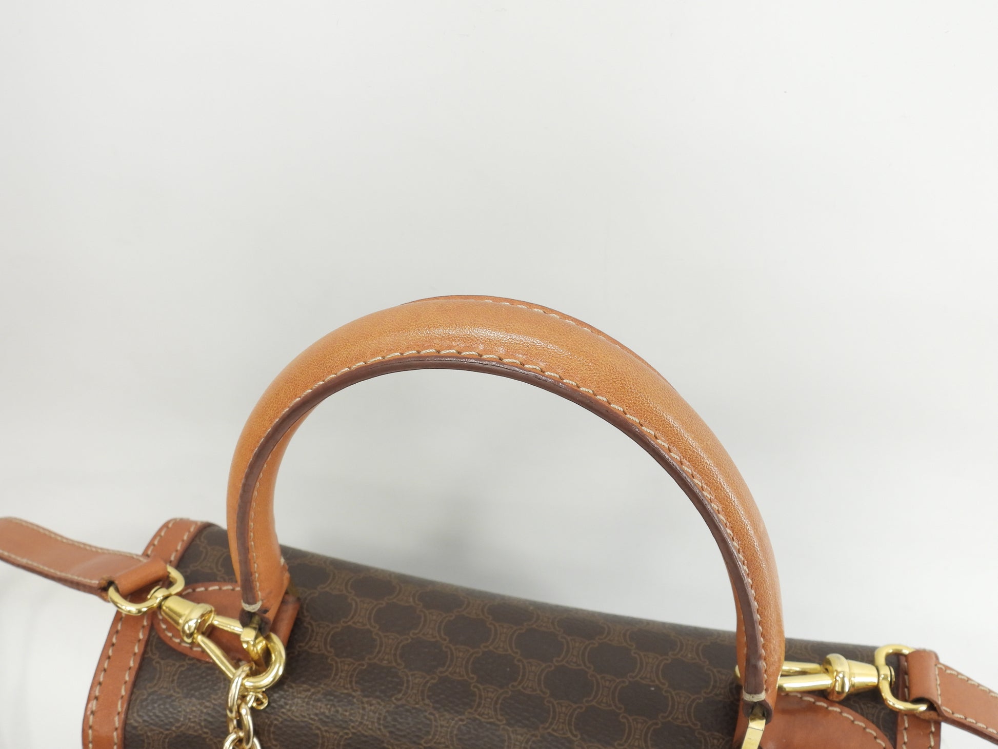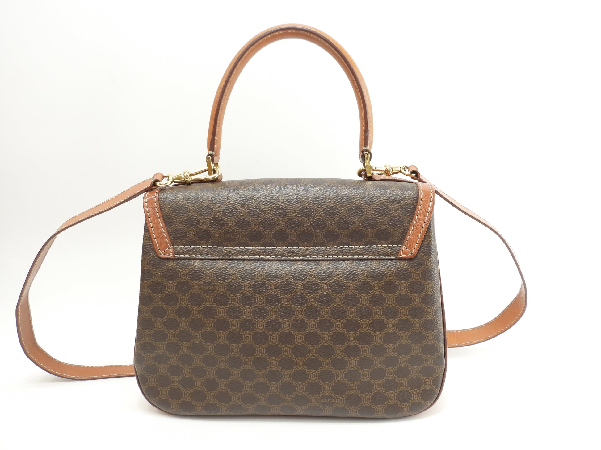 セリーヌ s付ハンドバッグ マカダム トリオンフ茶 ケリー 美品@M94* 7