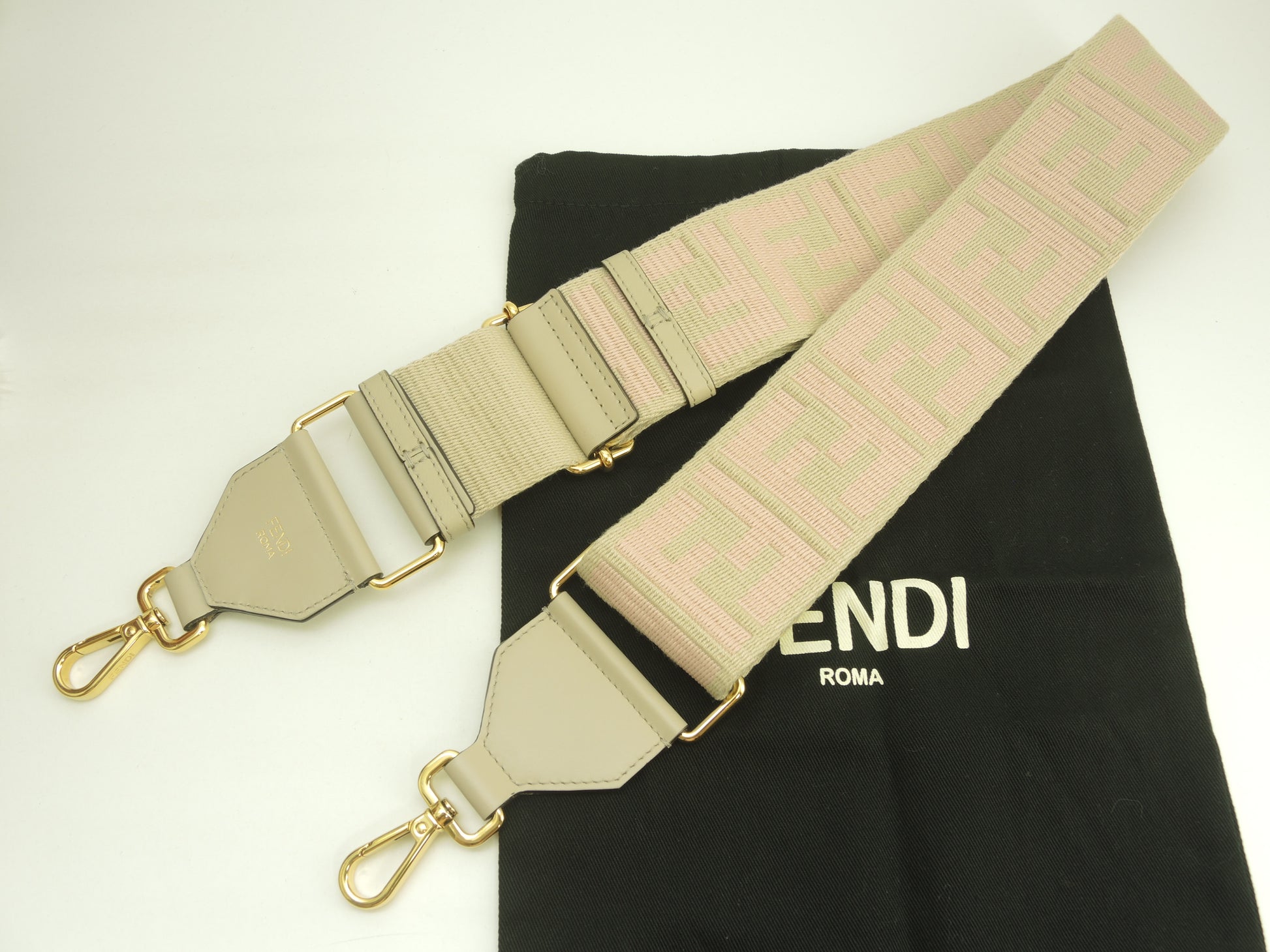 #Fendi #StrapYou #Strap #You#ShoulderStrap #Cotton #Leather #Gray #Pink #90%new #authentic #FF #motif #Long #Strap #Gold #secondhand #wholeSale #haibanya #aisai-jp #転売可