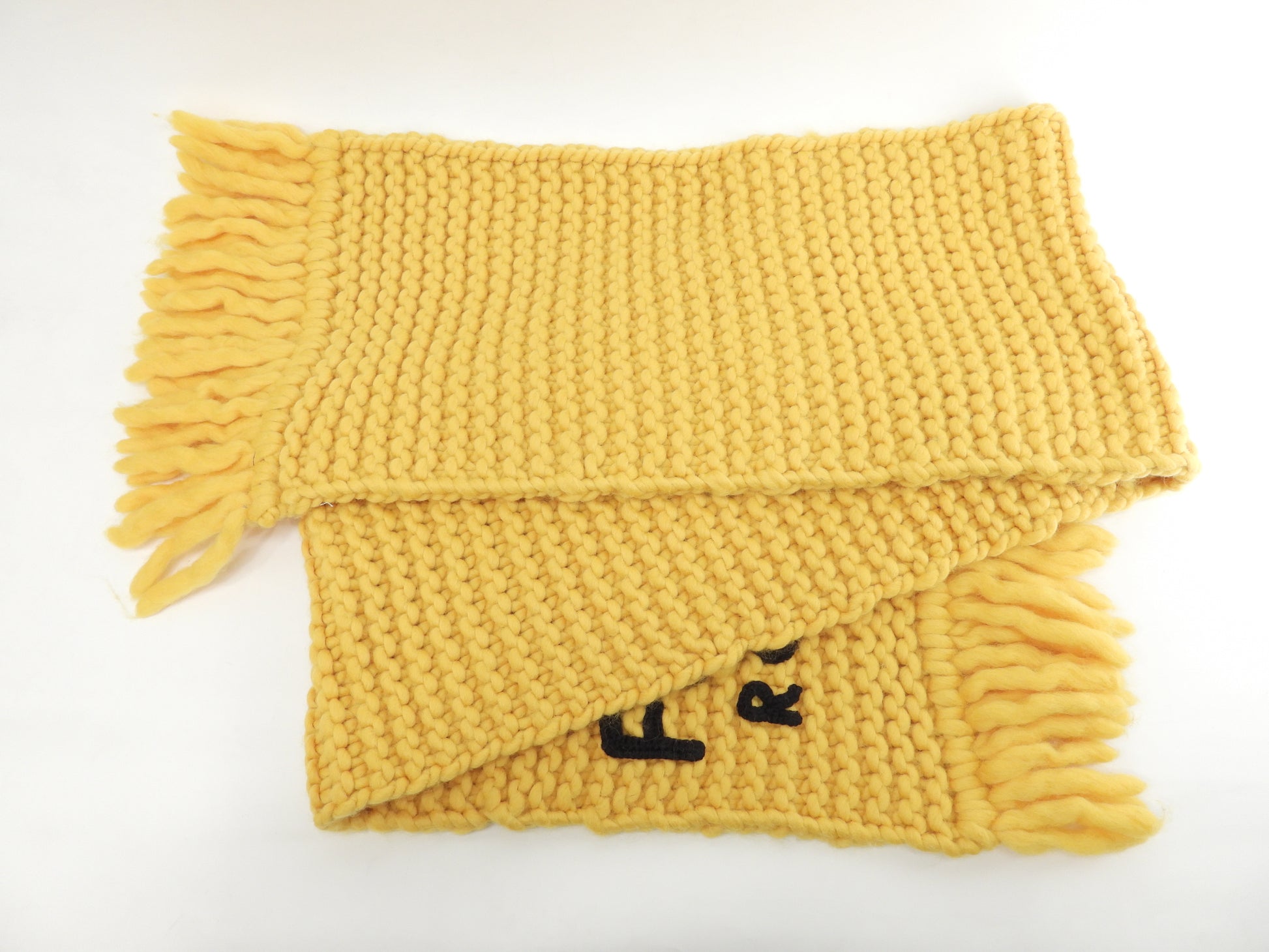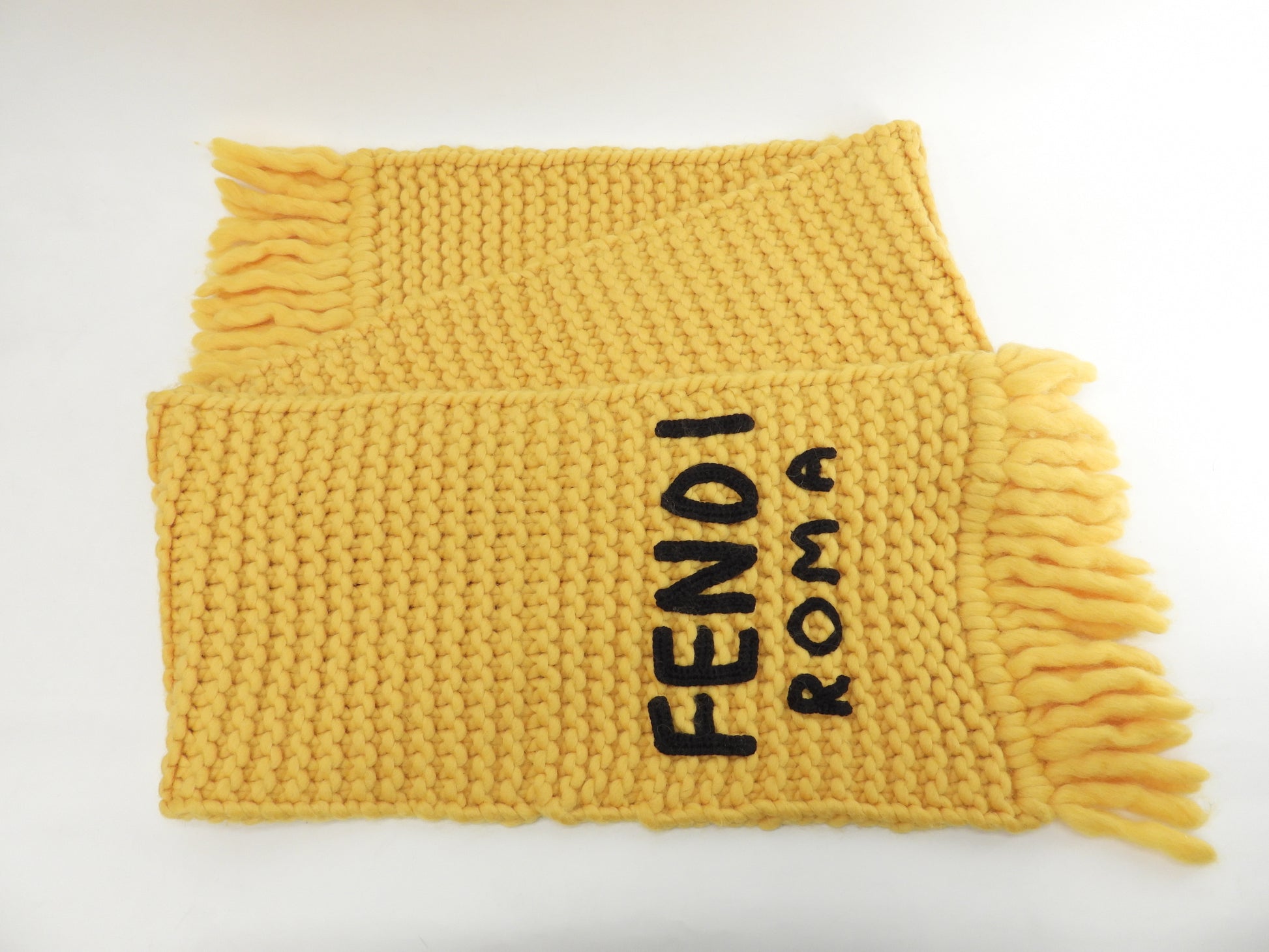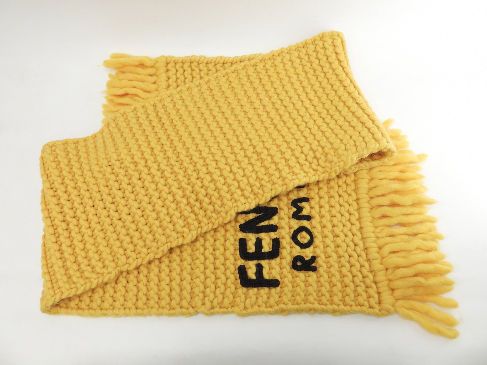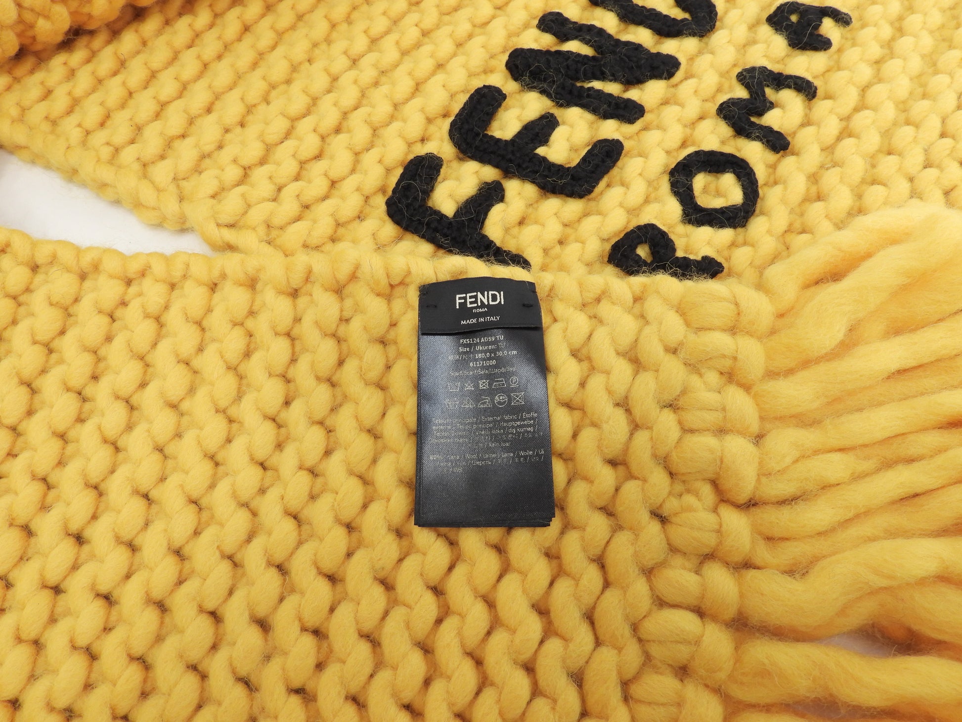 フェンディ マフラー FENDIロゴ ウール80%黄 モコモコニット ネックウォーマー 新品同様@ 1