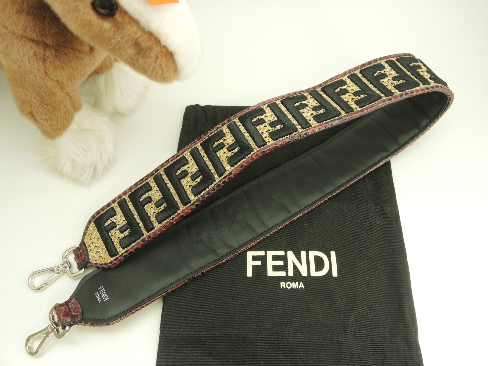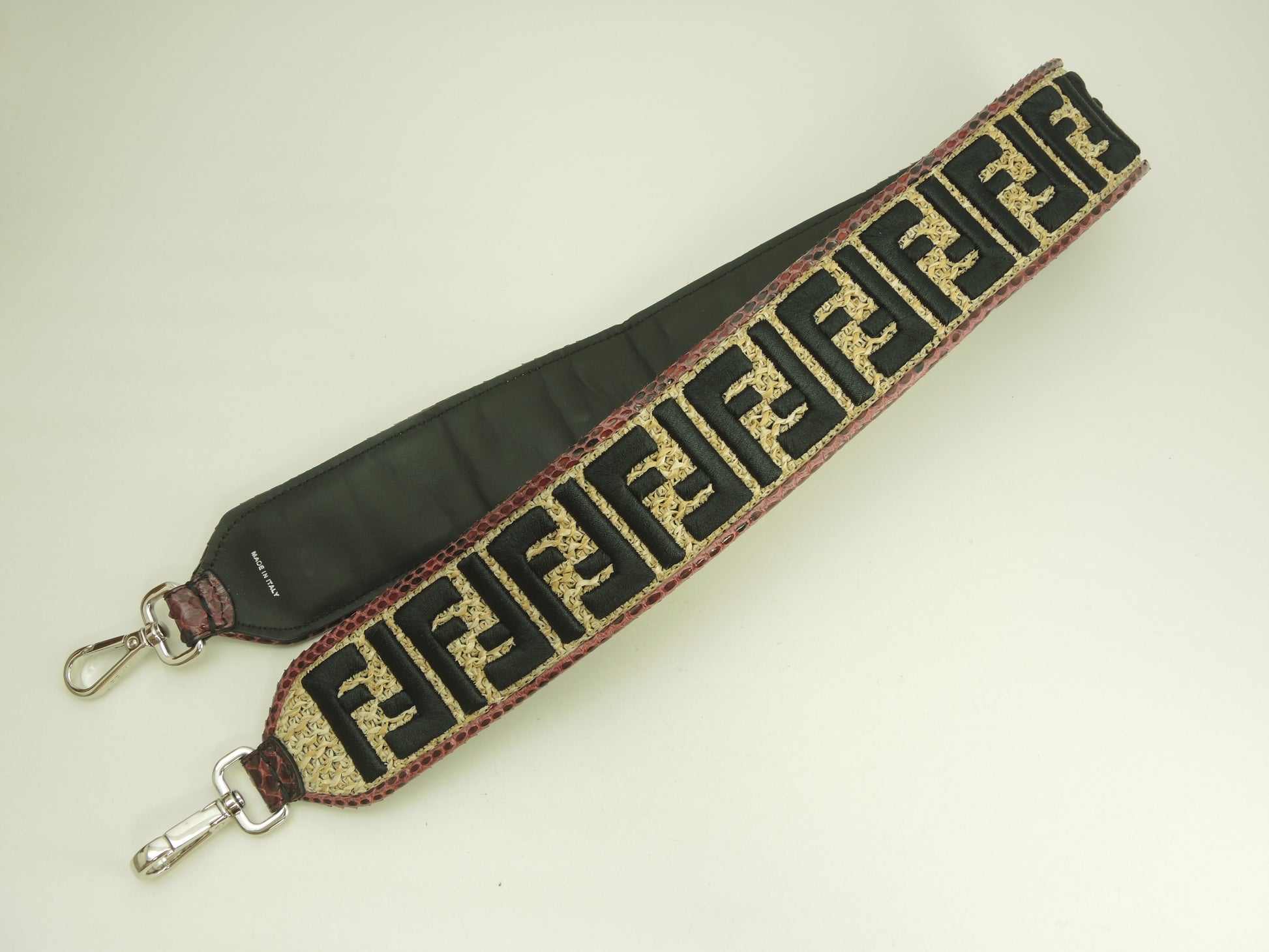 #Fendi #ShoulderStrap #Straw #Python #Leather #Black #Bordeaux #Natural #75%new #authentic #FF #motif #Long #Strap #Silver #secondhand #wholeSale #haibanya #aisai-jp #転売可