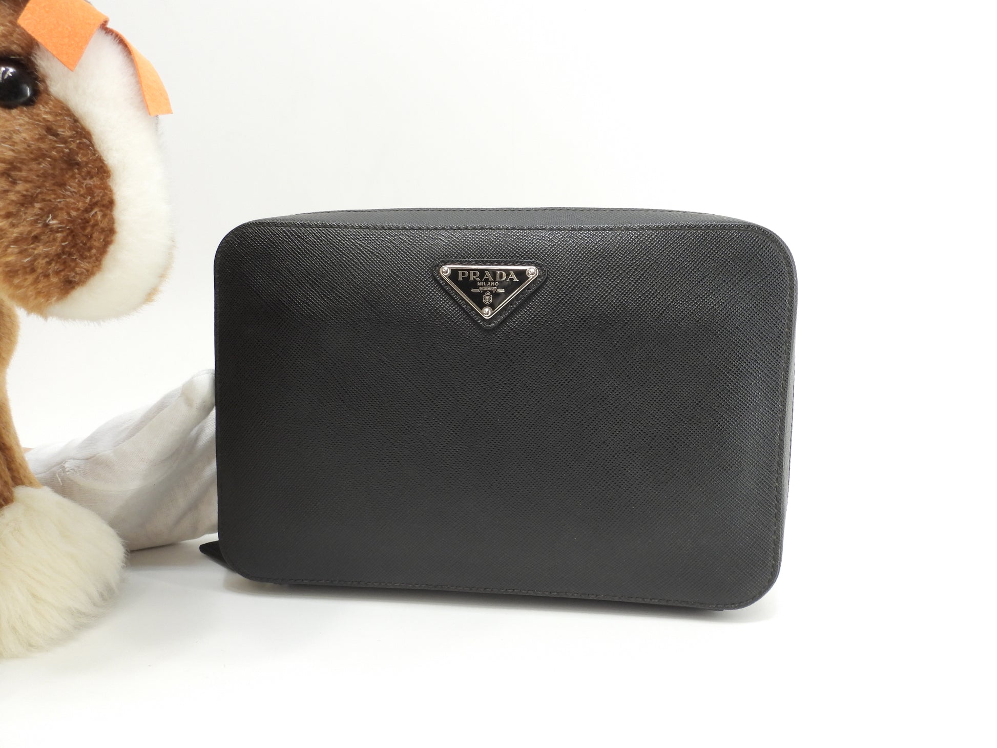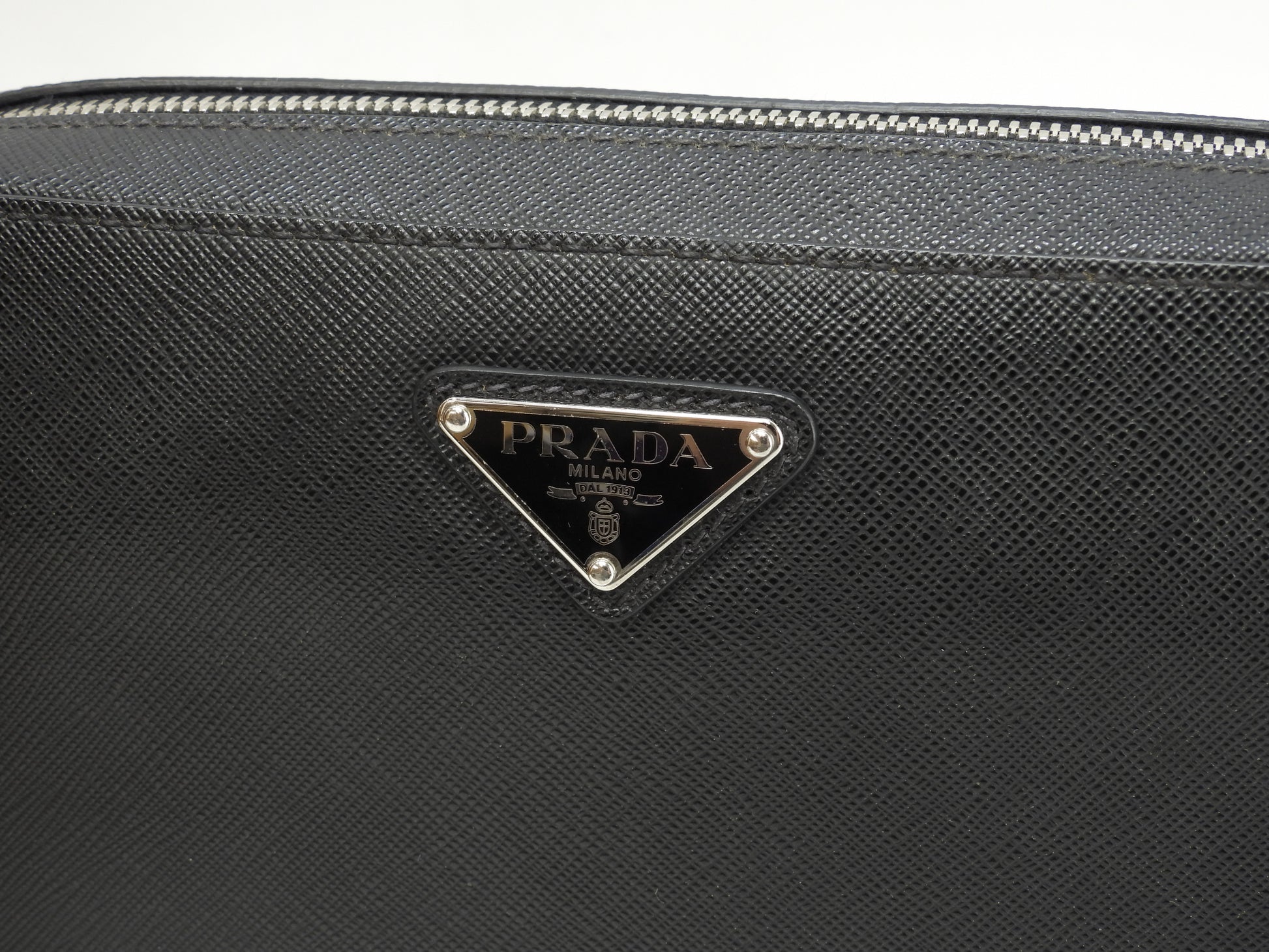 プラダ クラッチウォレットバッグ トリアングルロゴ サフィアーノレザー黒 財布@566