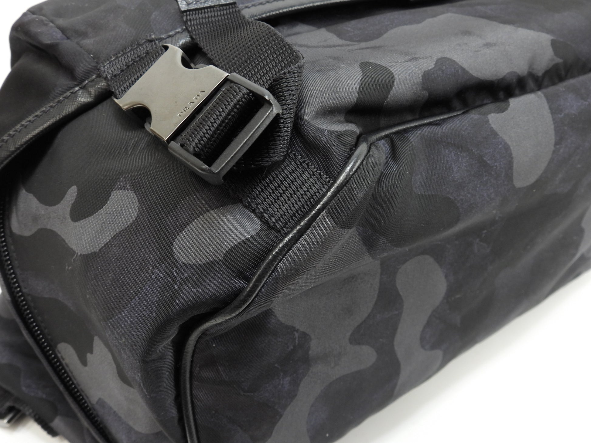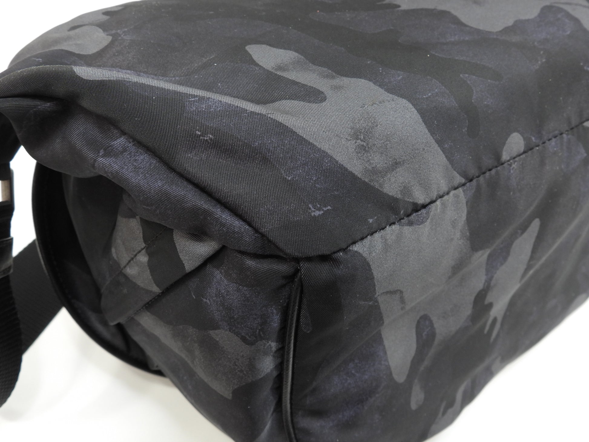 プラダ クロスボディバッグ大 カモフラ テスート黒灰紺 斜掛ショルダーバッグ 美品@56
