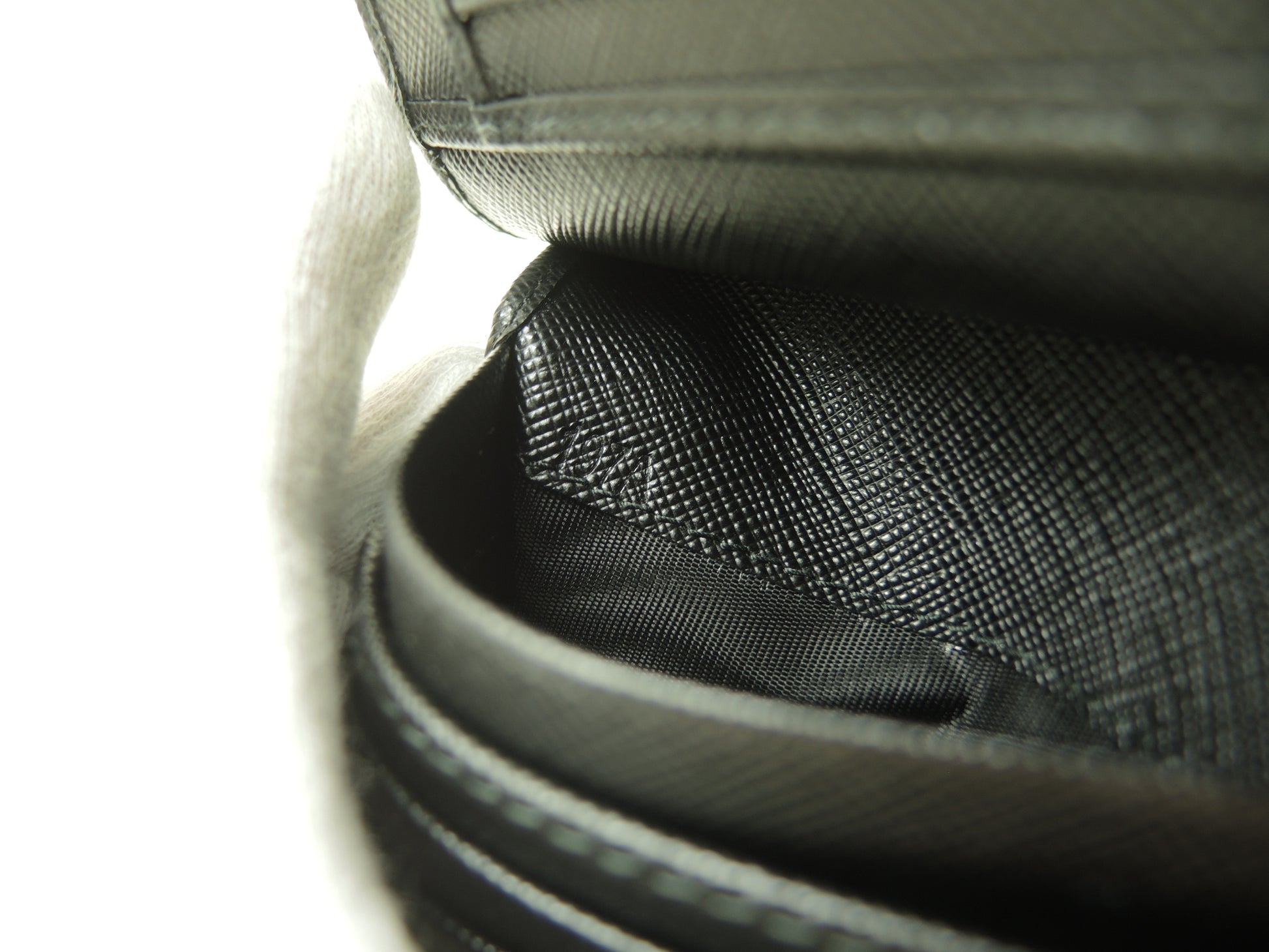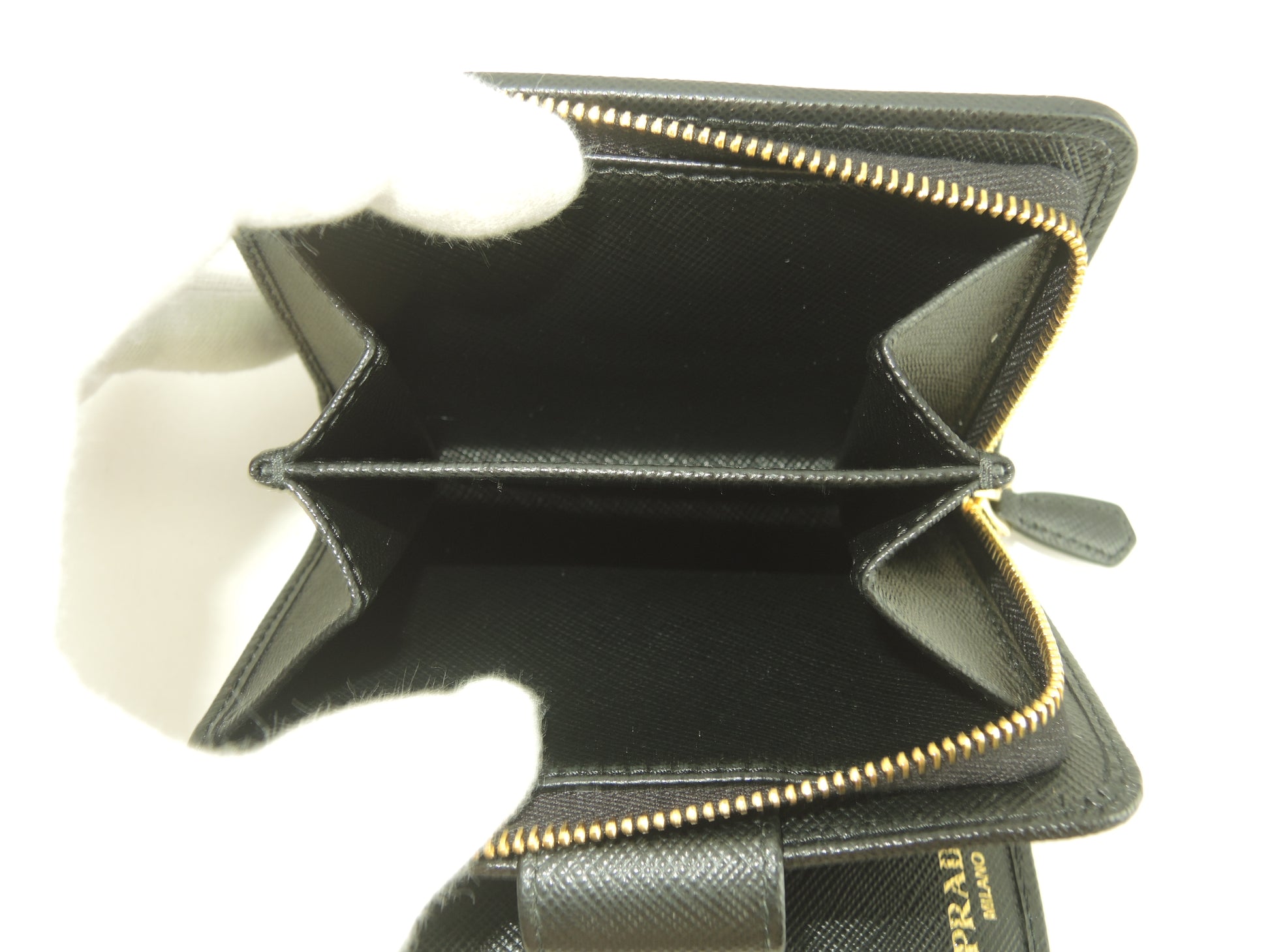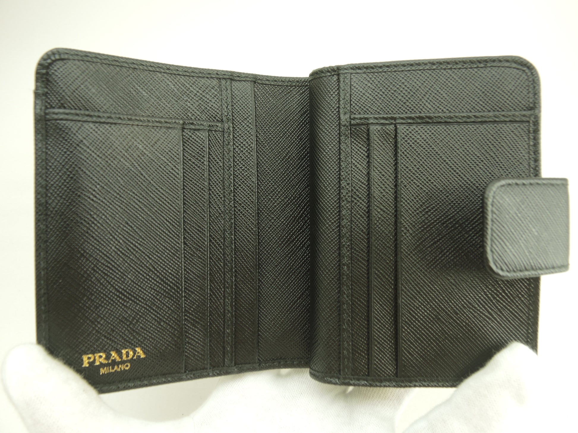 プラダ コンパクトウォレット 三角プレート テスート/サフィアーノ黒 L字2折財布 未使用@197A