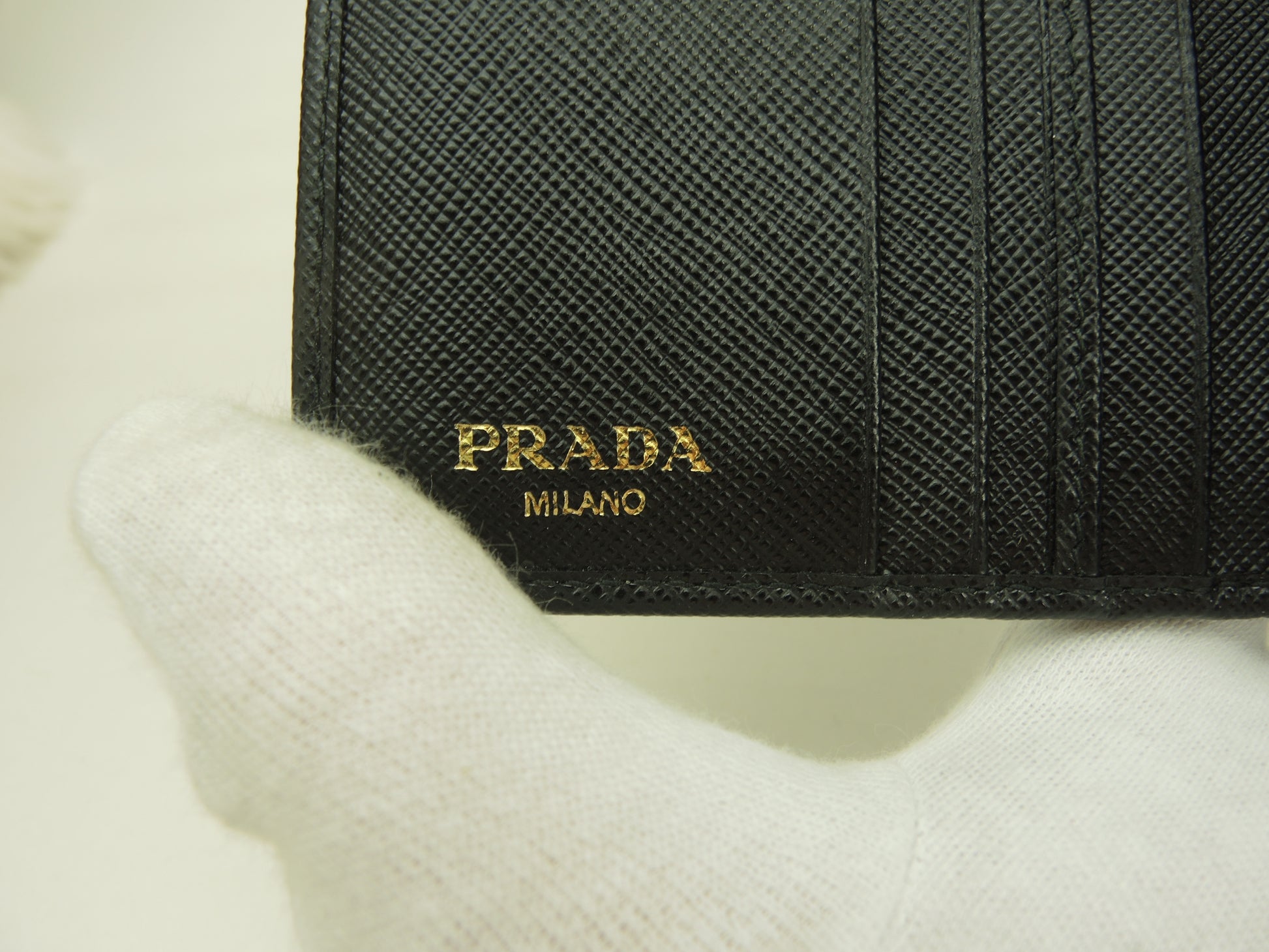 #Prada #CompactWallet #SmallWallet #Wallet #Tessuto #Nylon #Saffiano #Leather #BK #Nero #95%new #authentic #Triangle #Logo #1ML018 #Gold #secondhand #wholeSale #haibanya #aisai-jp #転売可
