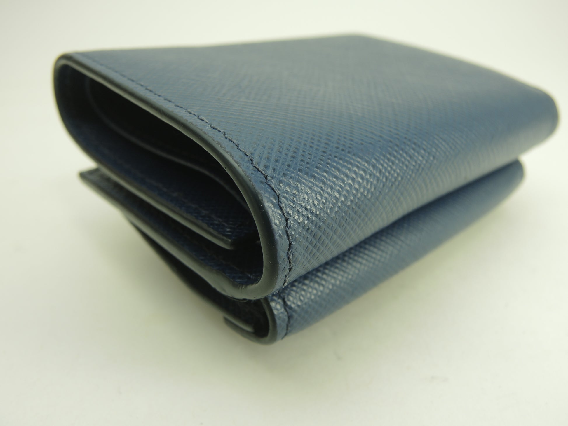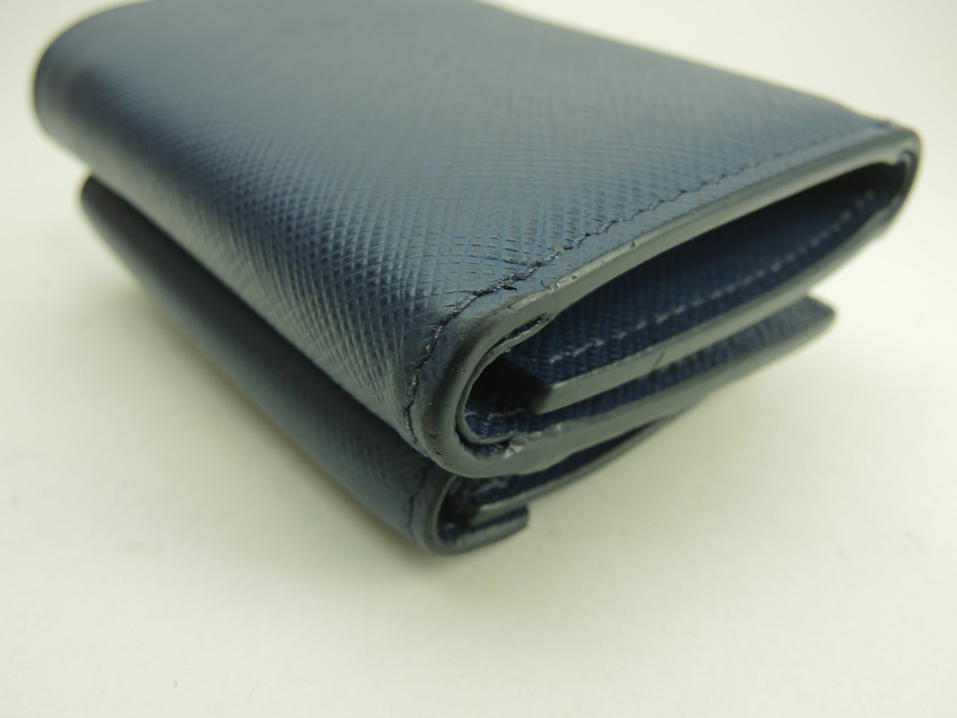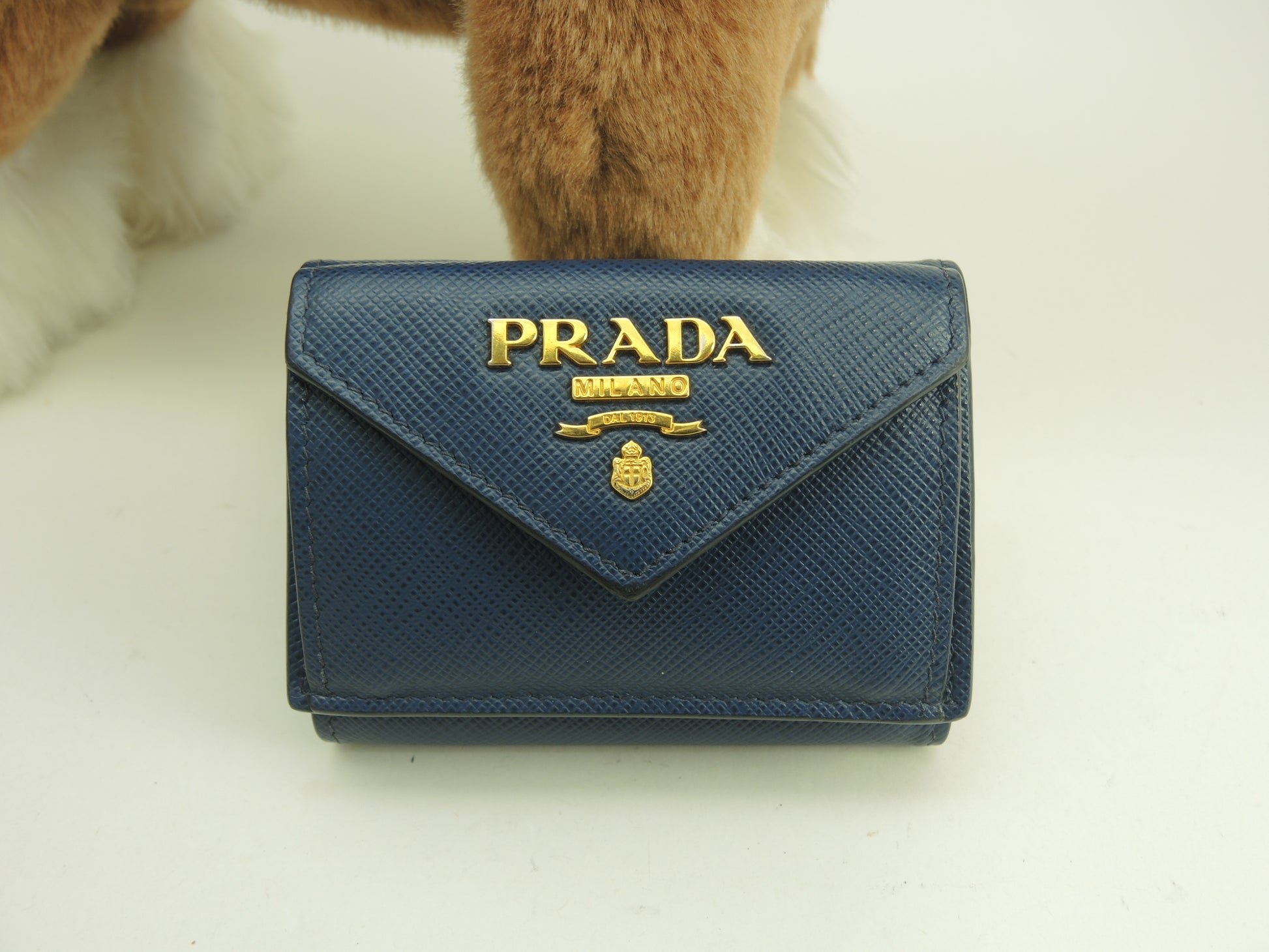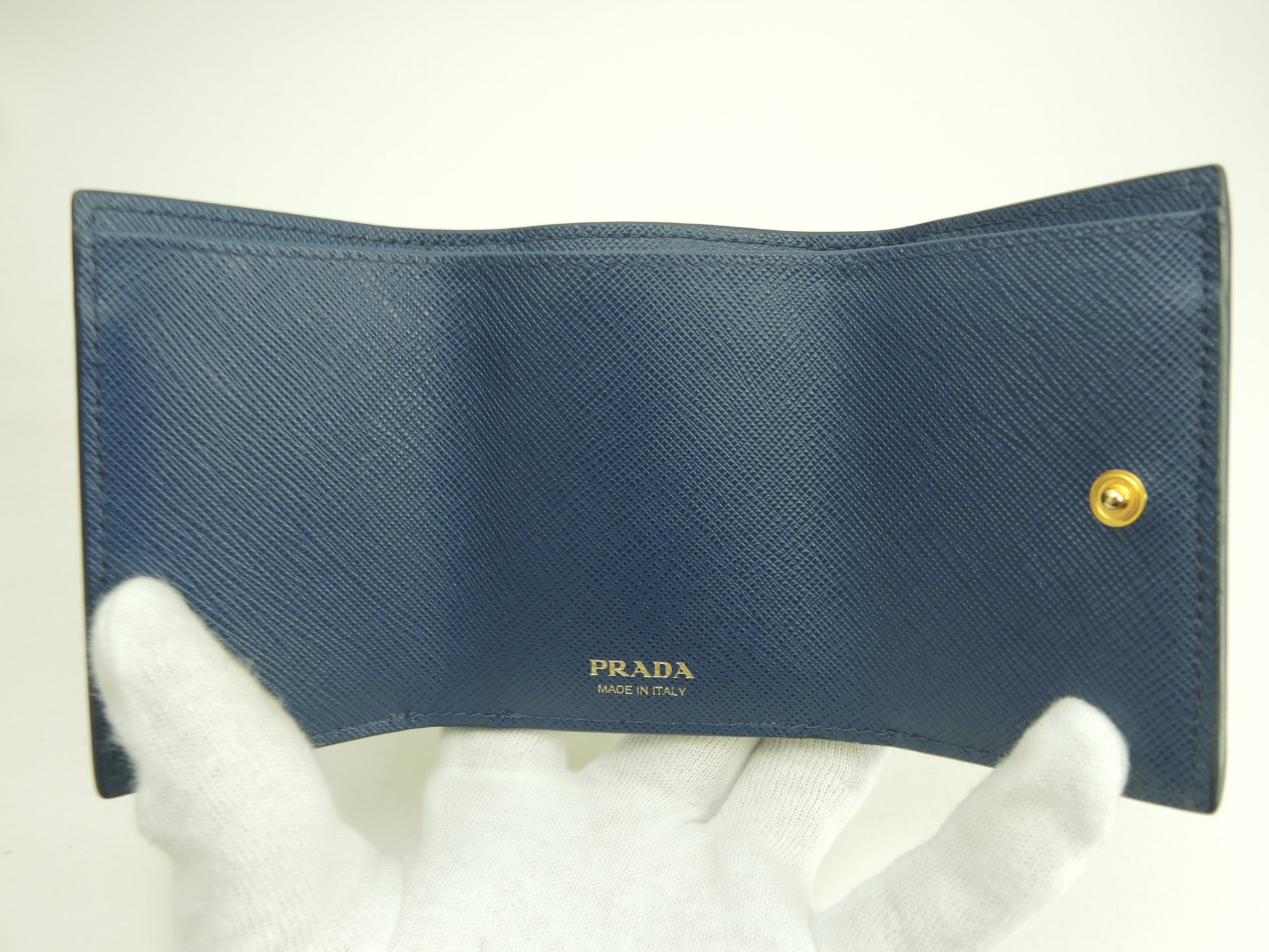 プラダ ミニウォレット メタルロゴ サフィアーノ濃青 3折スモール財布 美品@181E