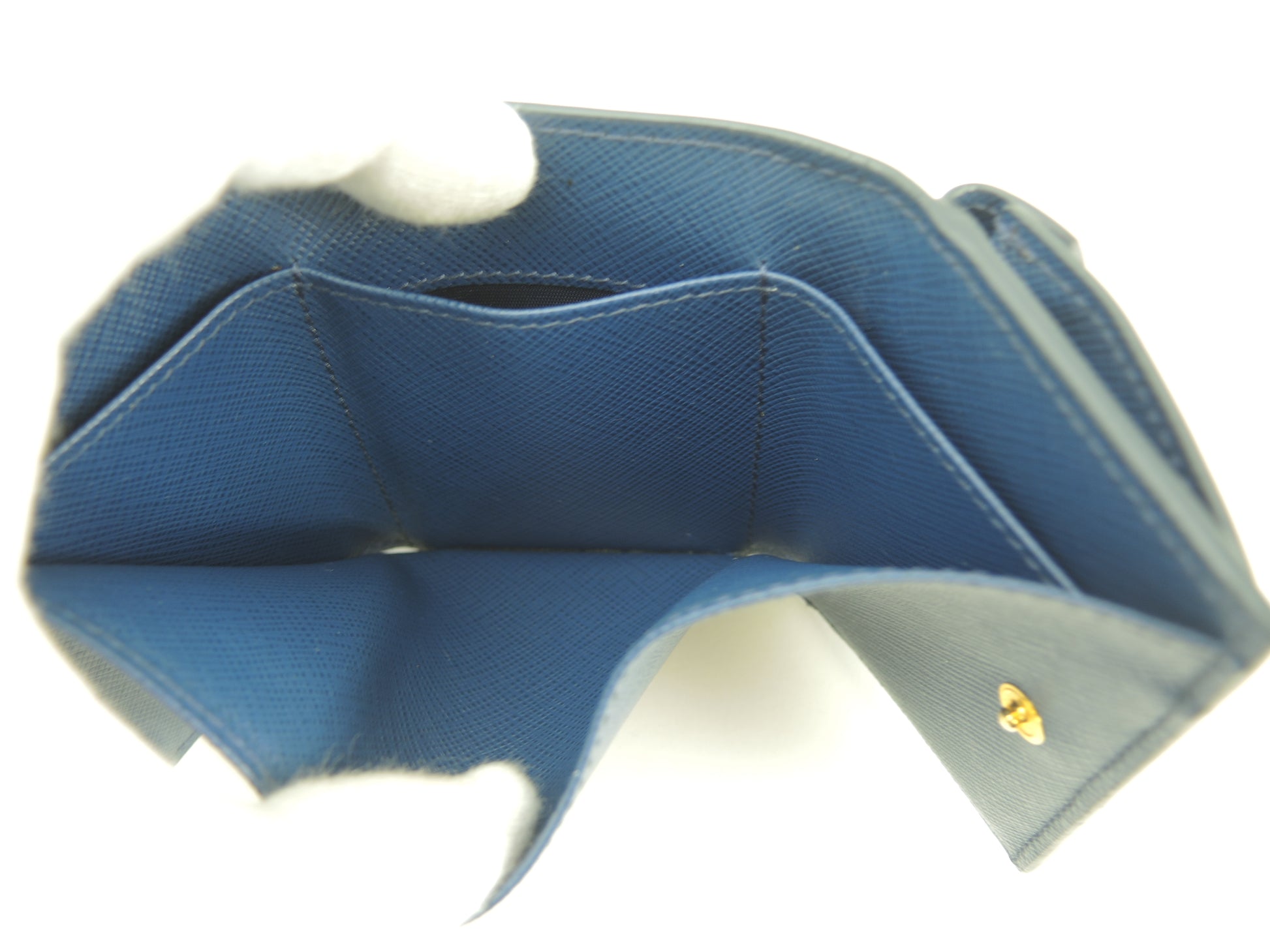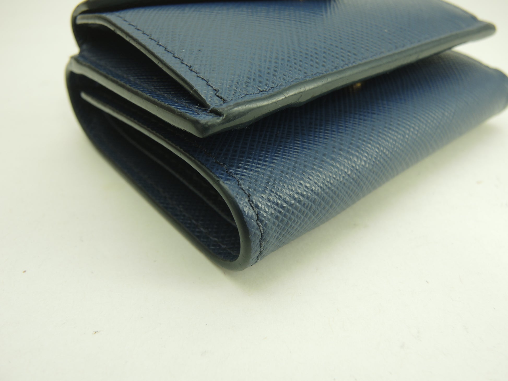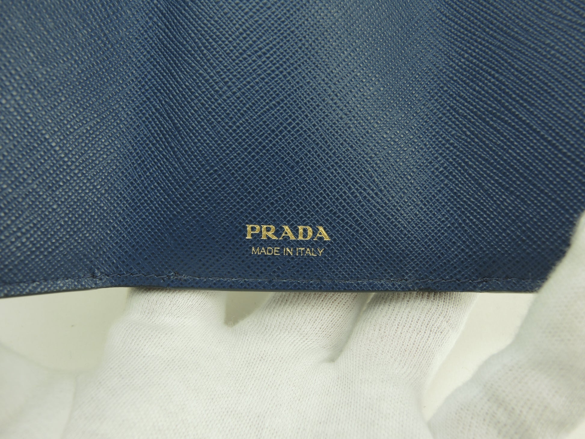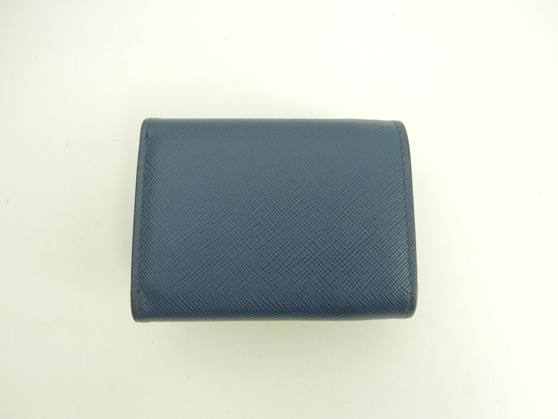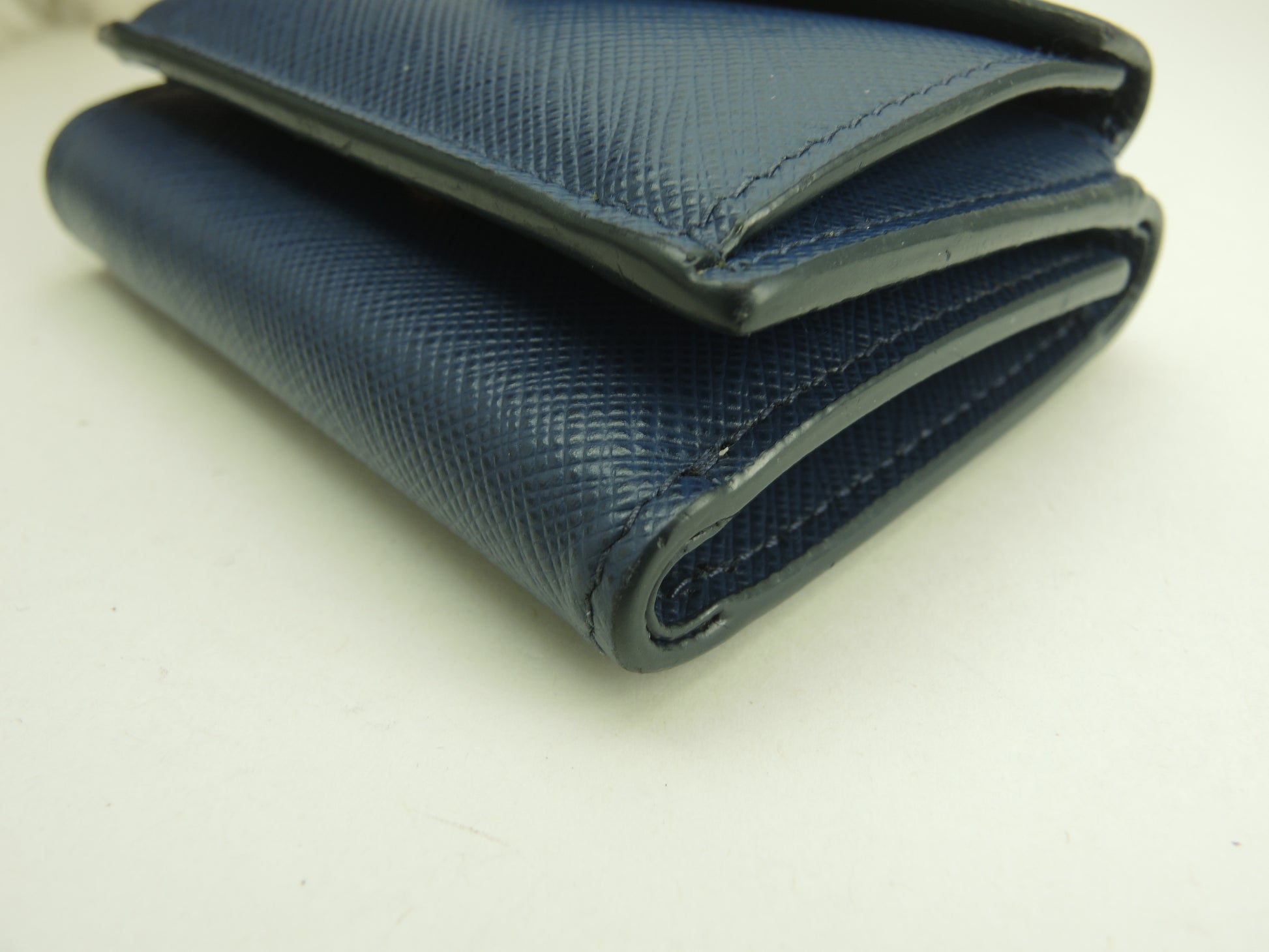 プラダ ミニウォレット メタルロゴ サフィアーノ濃青 3折スモール財布 美品@181E