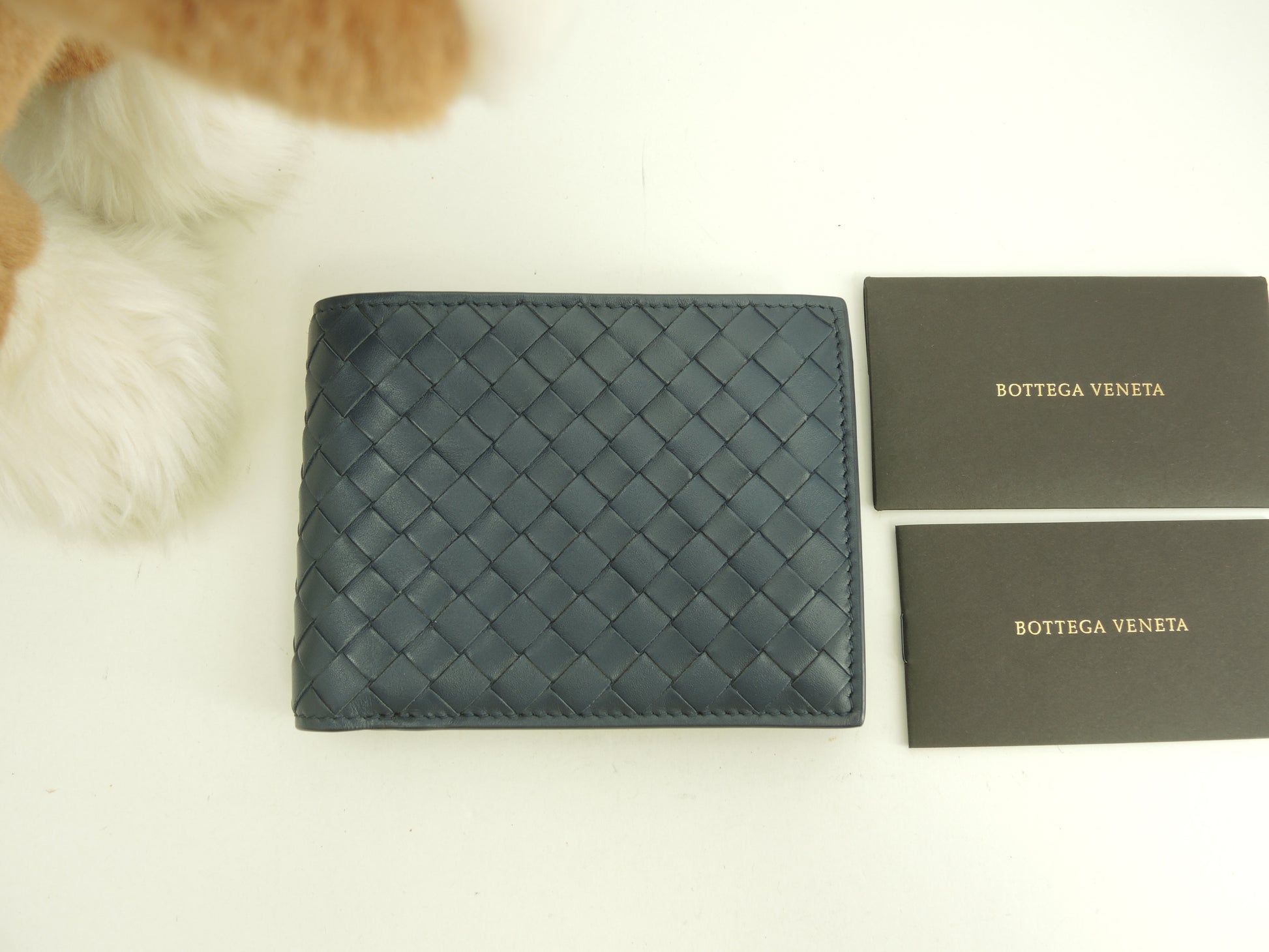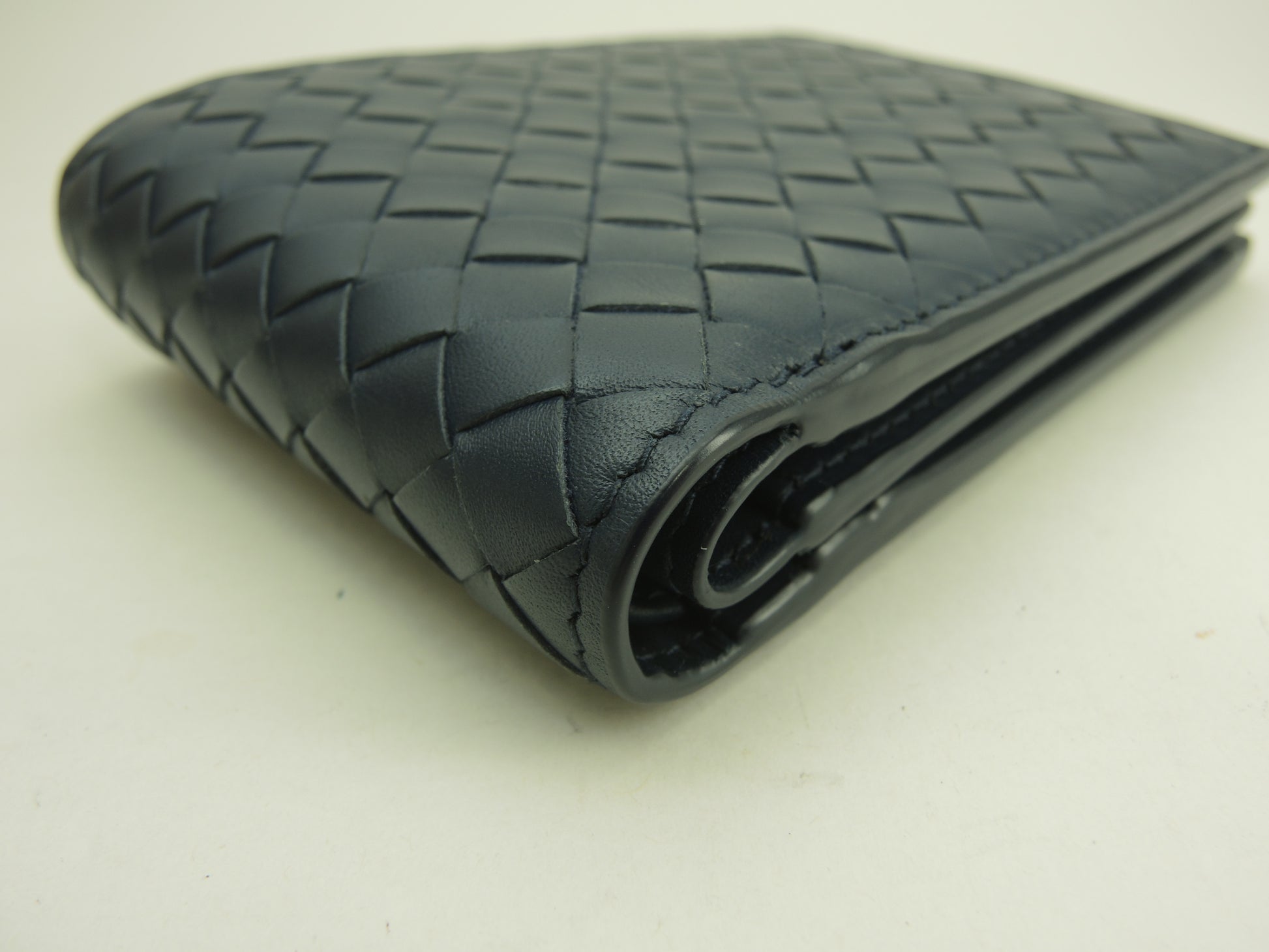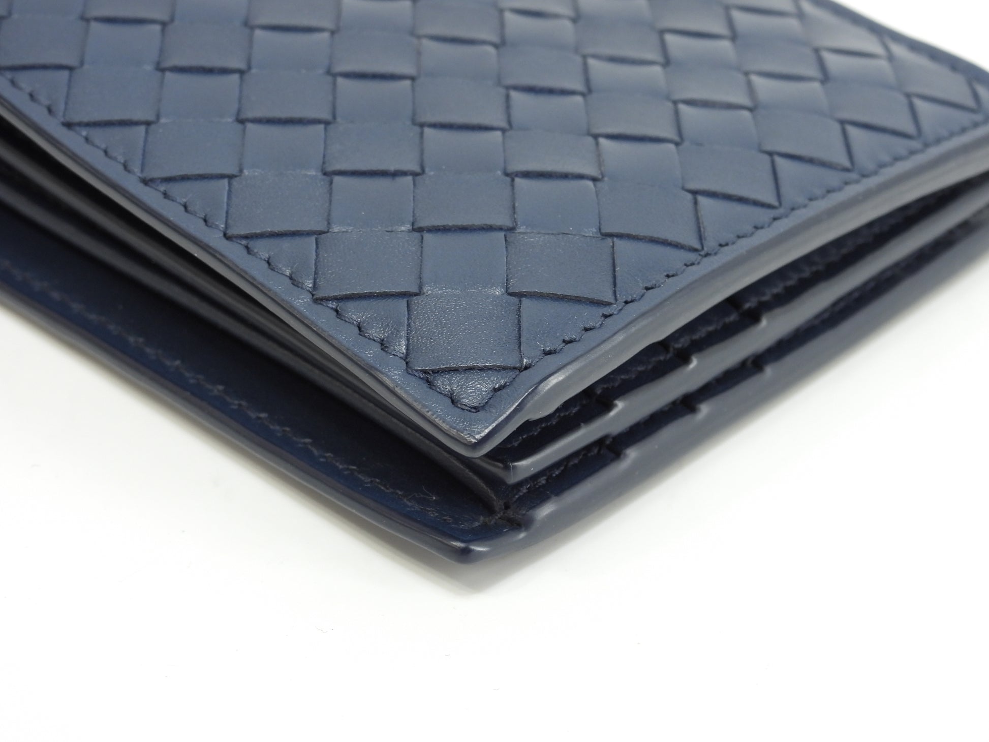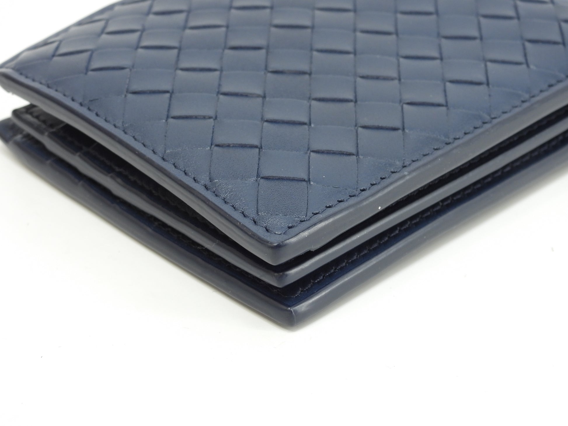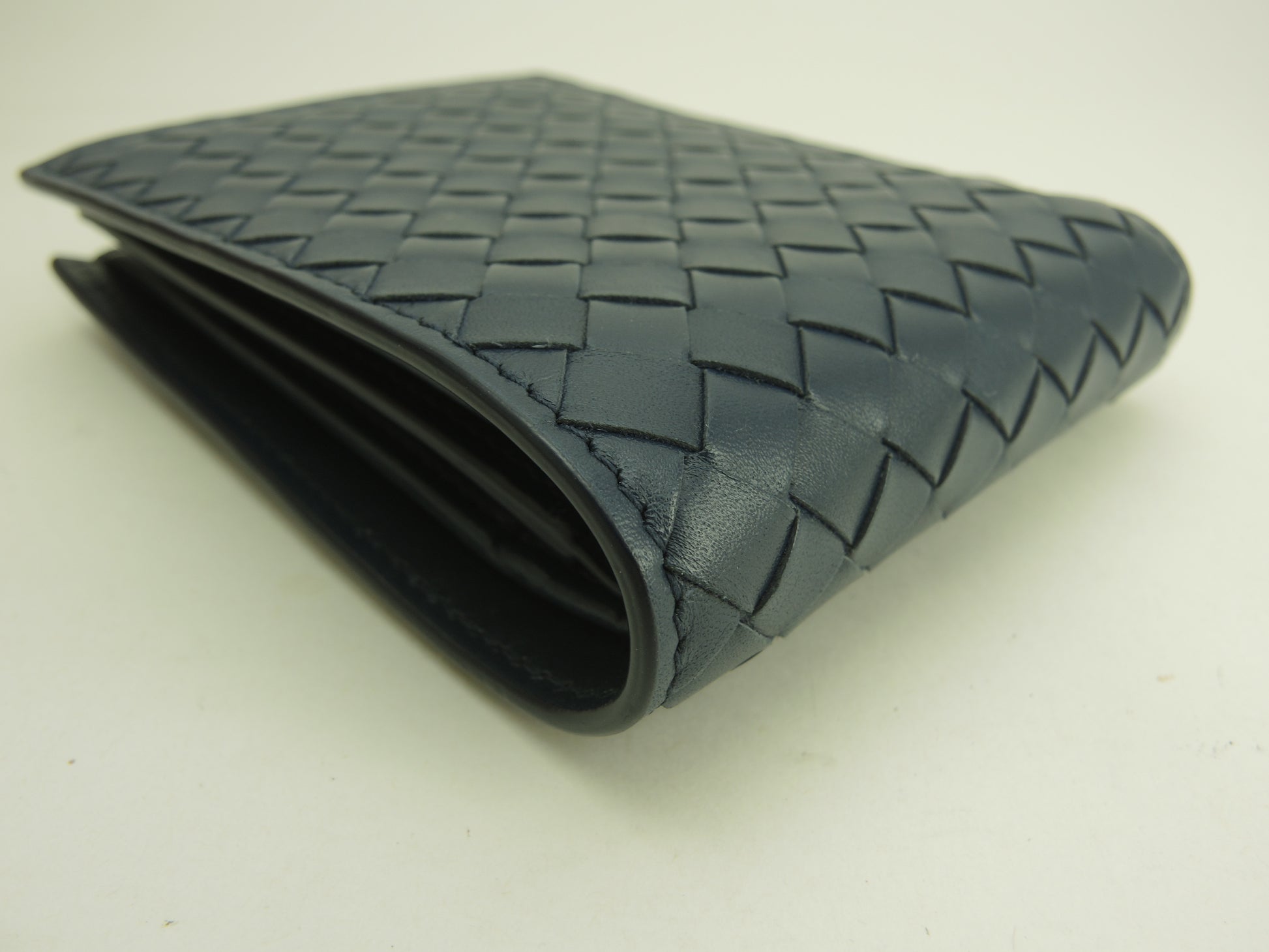 ボッテガヴェネタ 2折財布 イントレチャート レザー紺 コンパクトウォレット 未使用@P002502414I