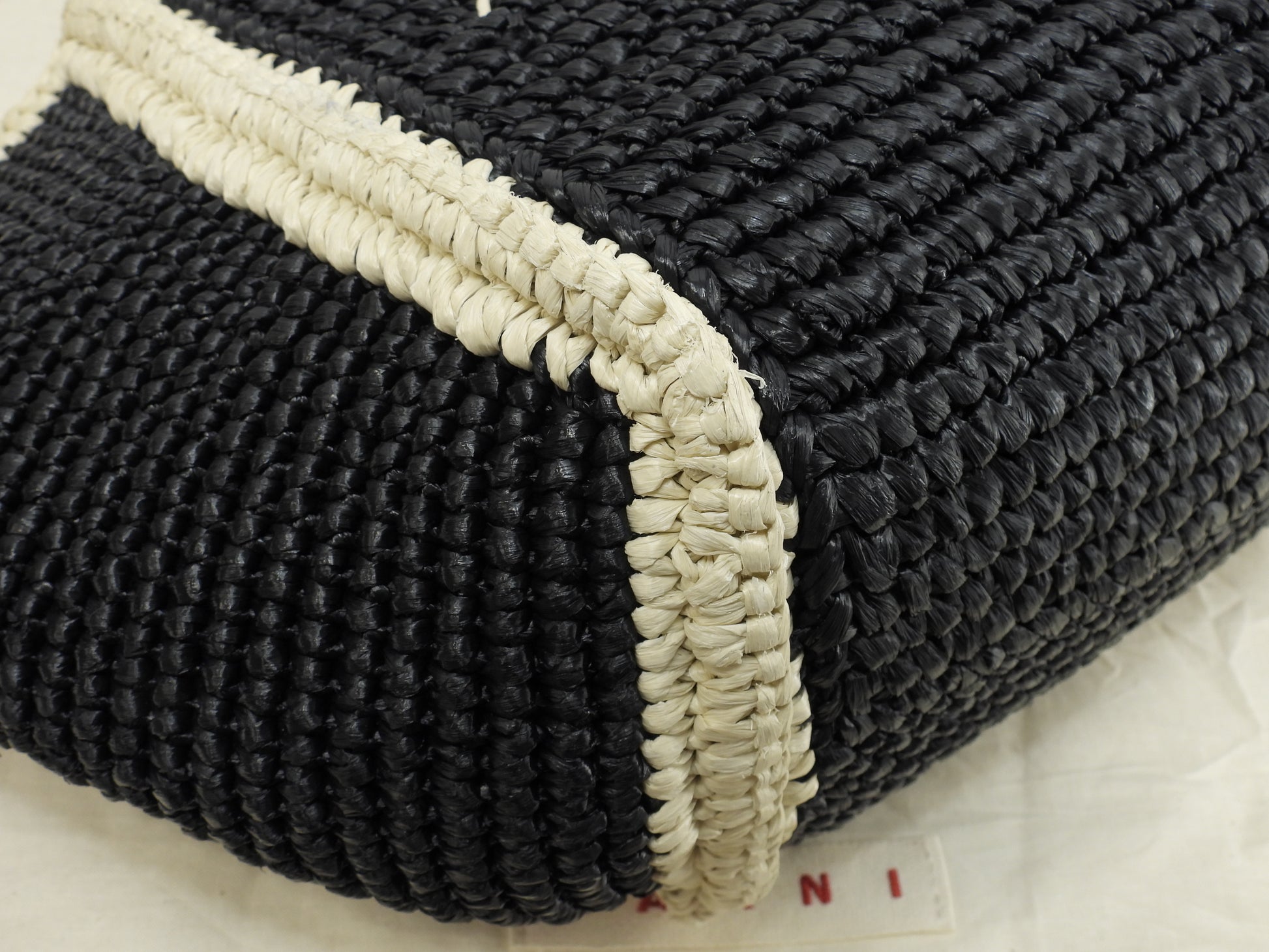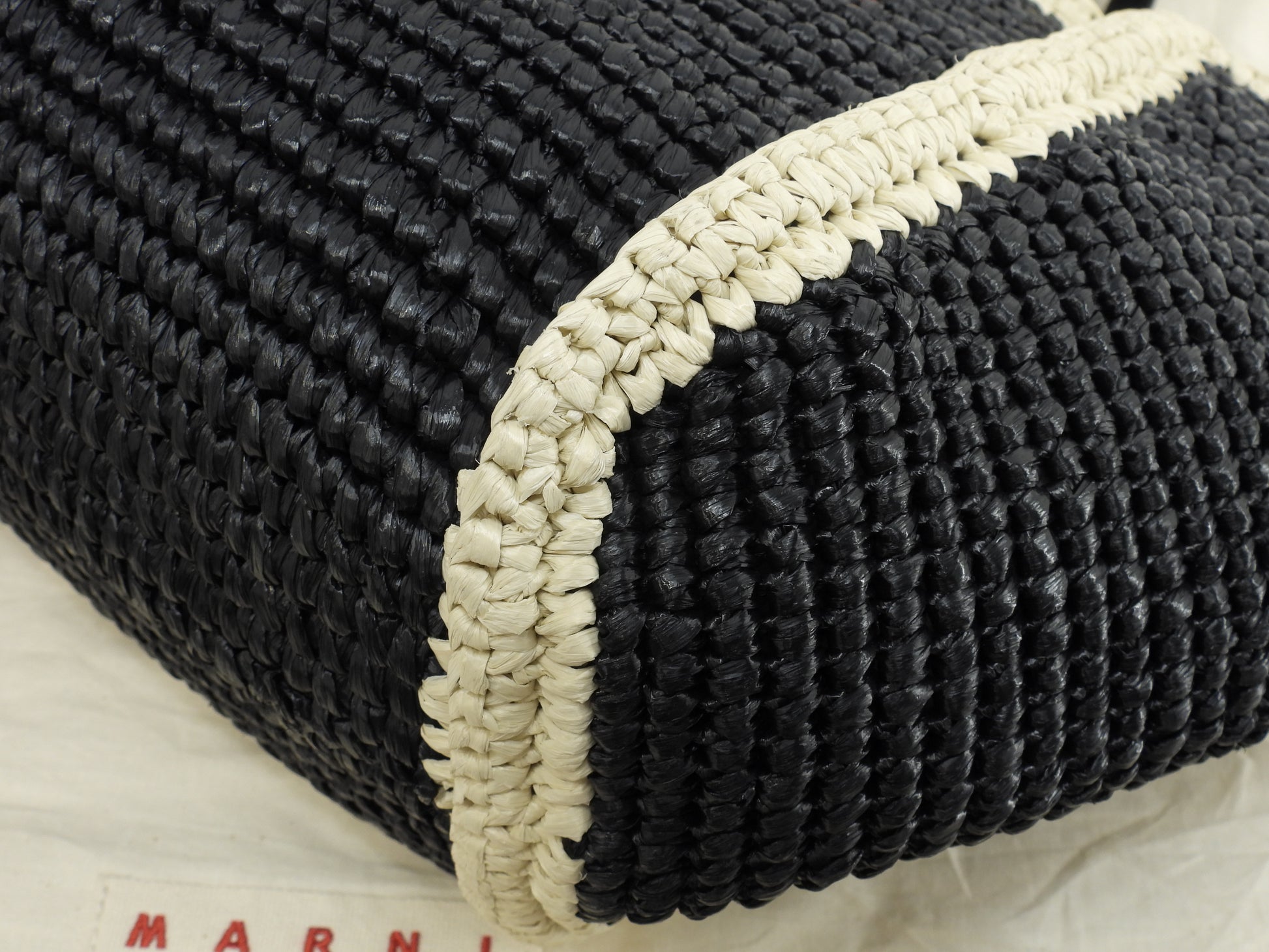 マルニ 2wayトートバッグ カゴバッグ レーヨン黒ベージュ ハンドバッグ 極美品@ 3