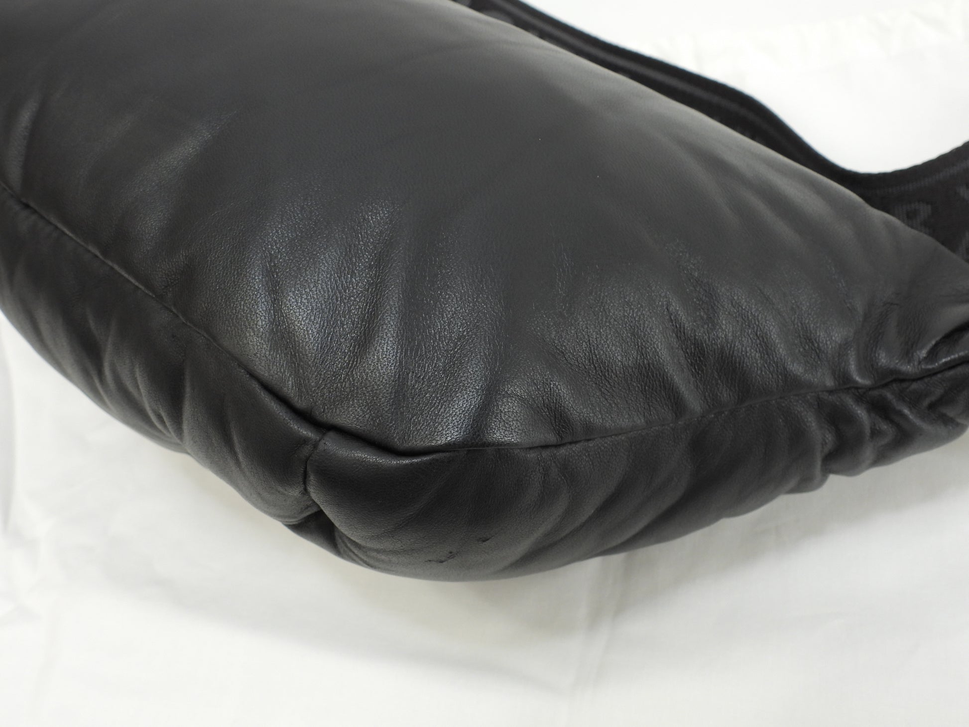 情報 : ボディは柔らかいレザーで仕上げられておりますので薄スレ・小傷が少しございますが、汚れもなく綺麗です。底部角・バッグ淵に薄スレが少しございます。ショルダーストラップはシミ・スレ・汚れ・弱りもなく状態は良いです。バッグ内はシミ・汚れもなく綺麗です。ファスナーの開閉は少しかためです。金具部分は金具同士が擦れる部分にメッキ剥げが少しございます。