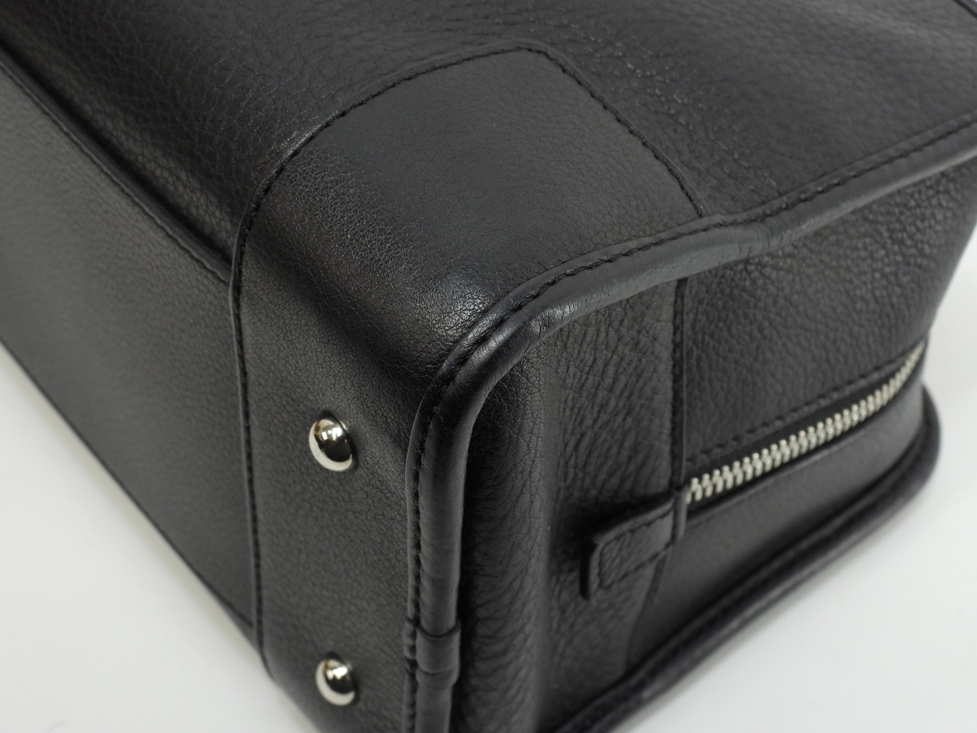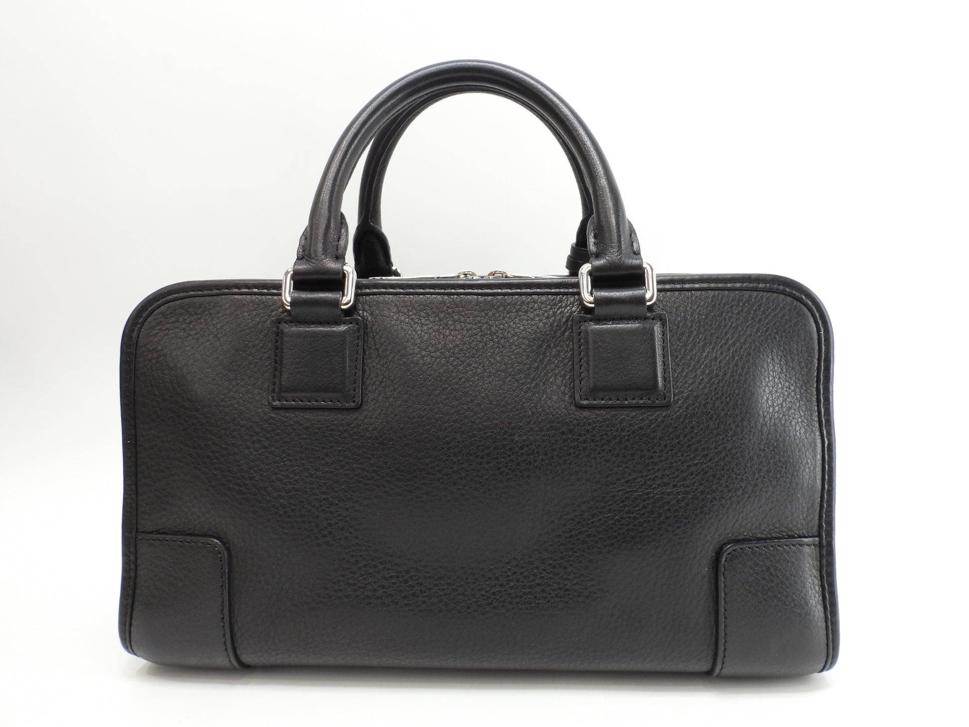 ロエベ アマソナ28 シルバー金具 型押レザー黒 ハンドバッグ アナグラム@011107
