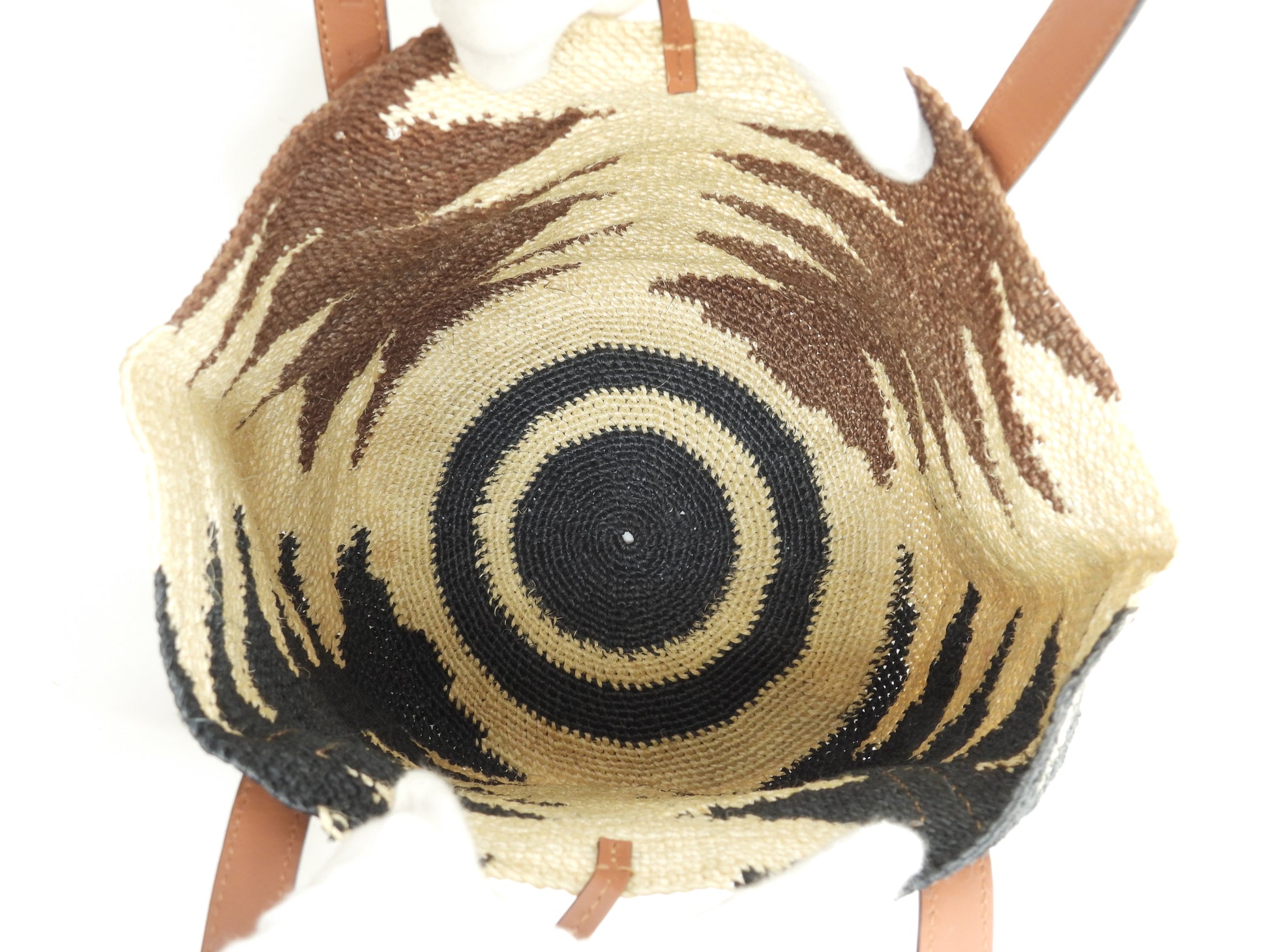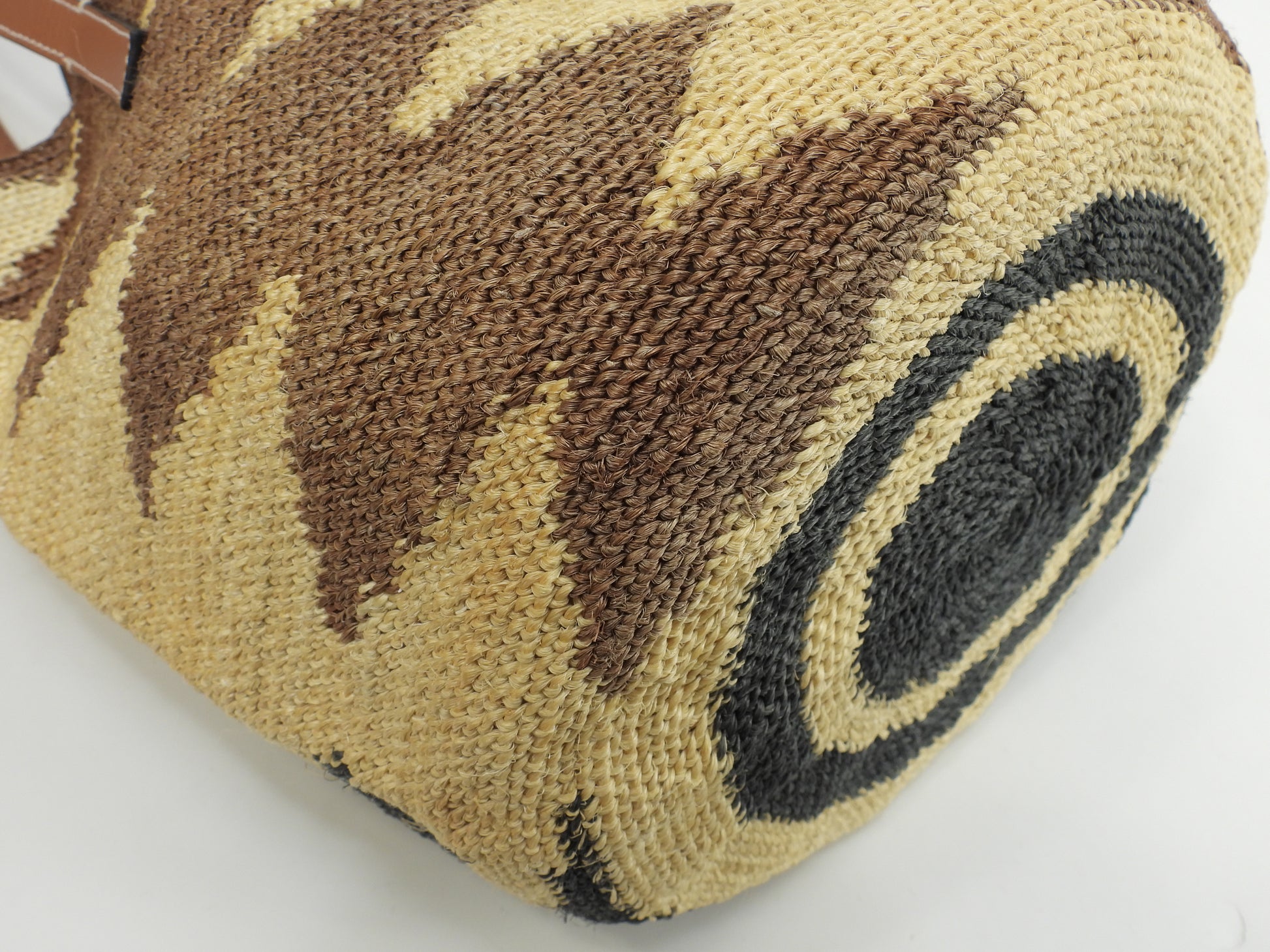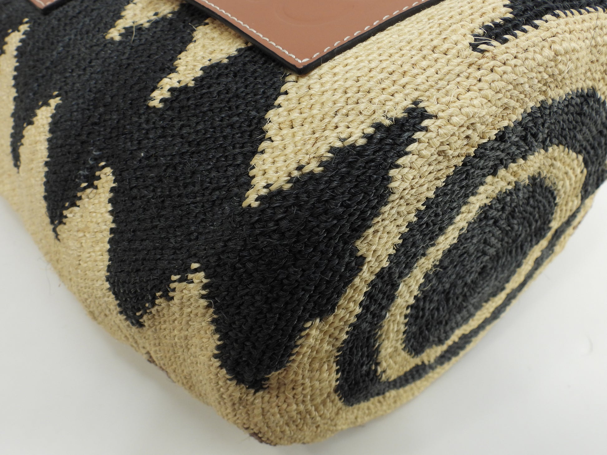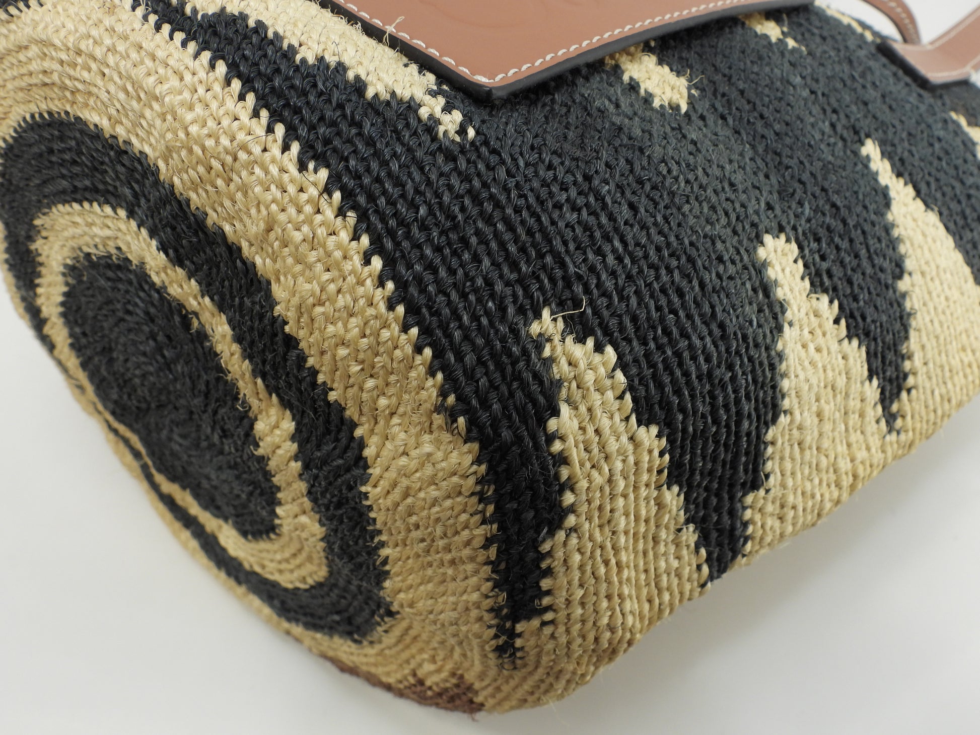 ロエベ トートバッグ小 シグラ リネン/ベージュ茶黒 ハンドバッグ 美品@032006