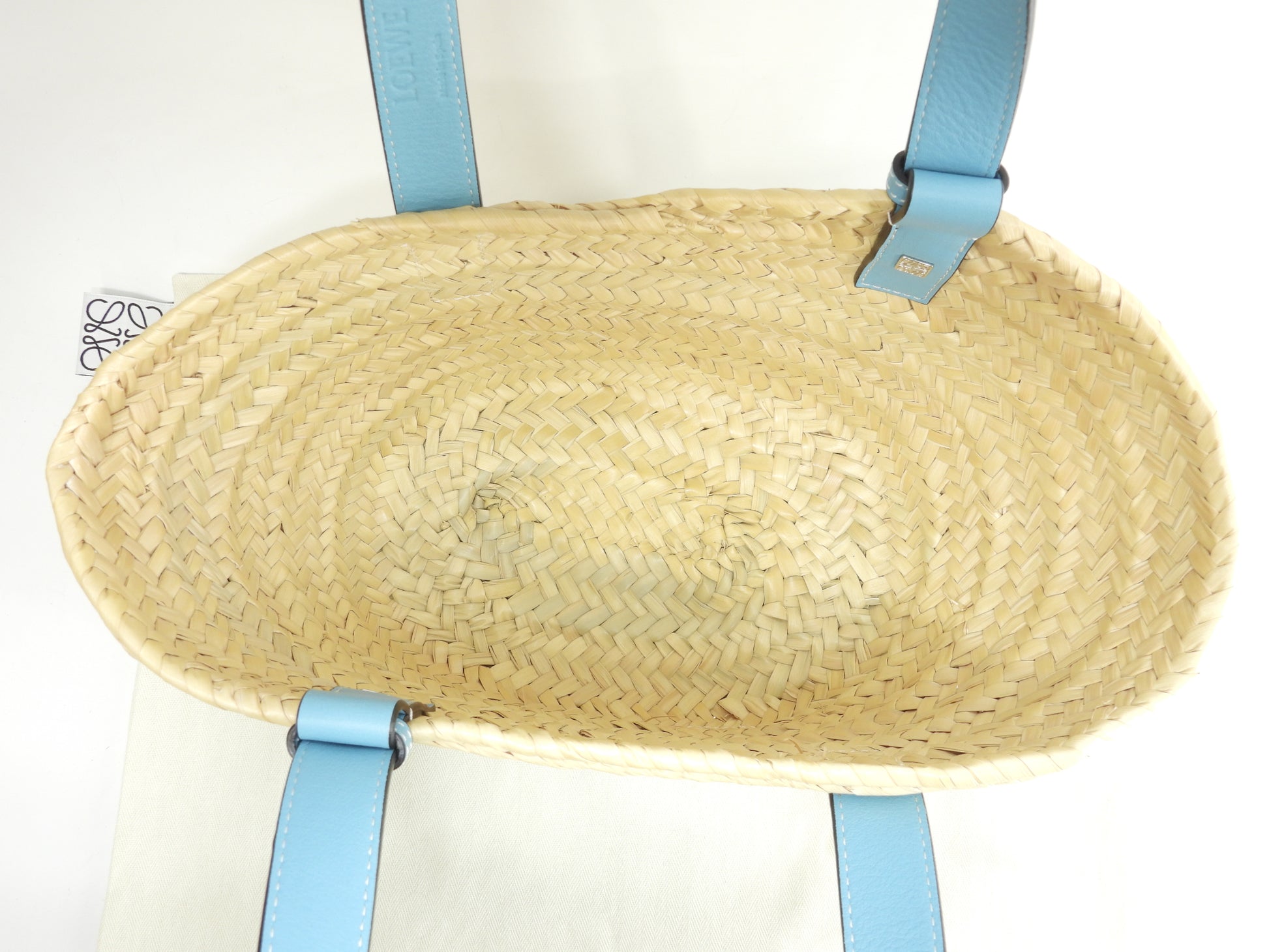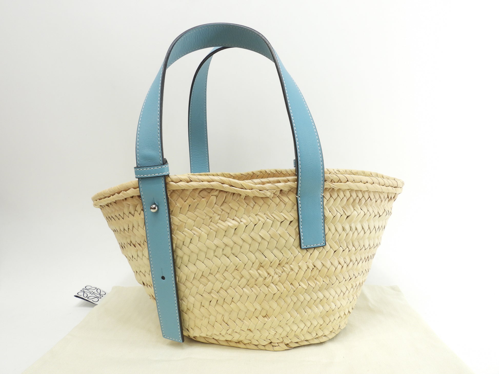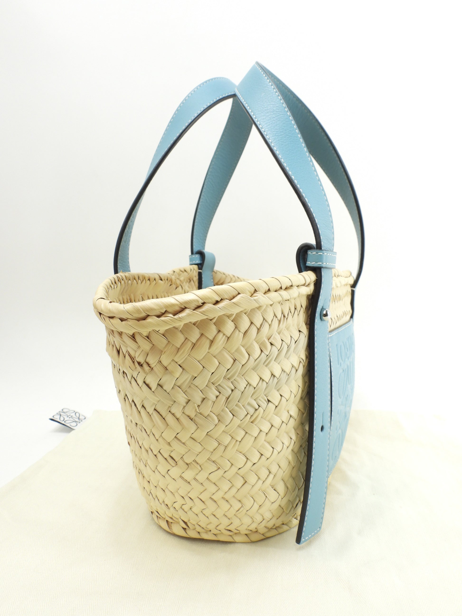 #Loewe #Basket #Small #HandBag #ToteBag #Natural #LightBlue #95%new #authentic #Palm #Calf #Silver #secondhand #wholeSale #haibanya #aisai-jp #転売可