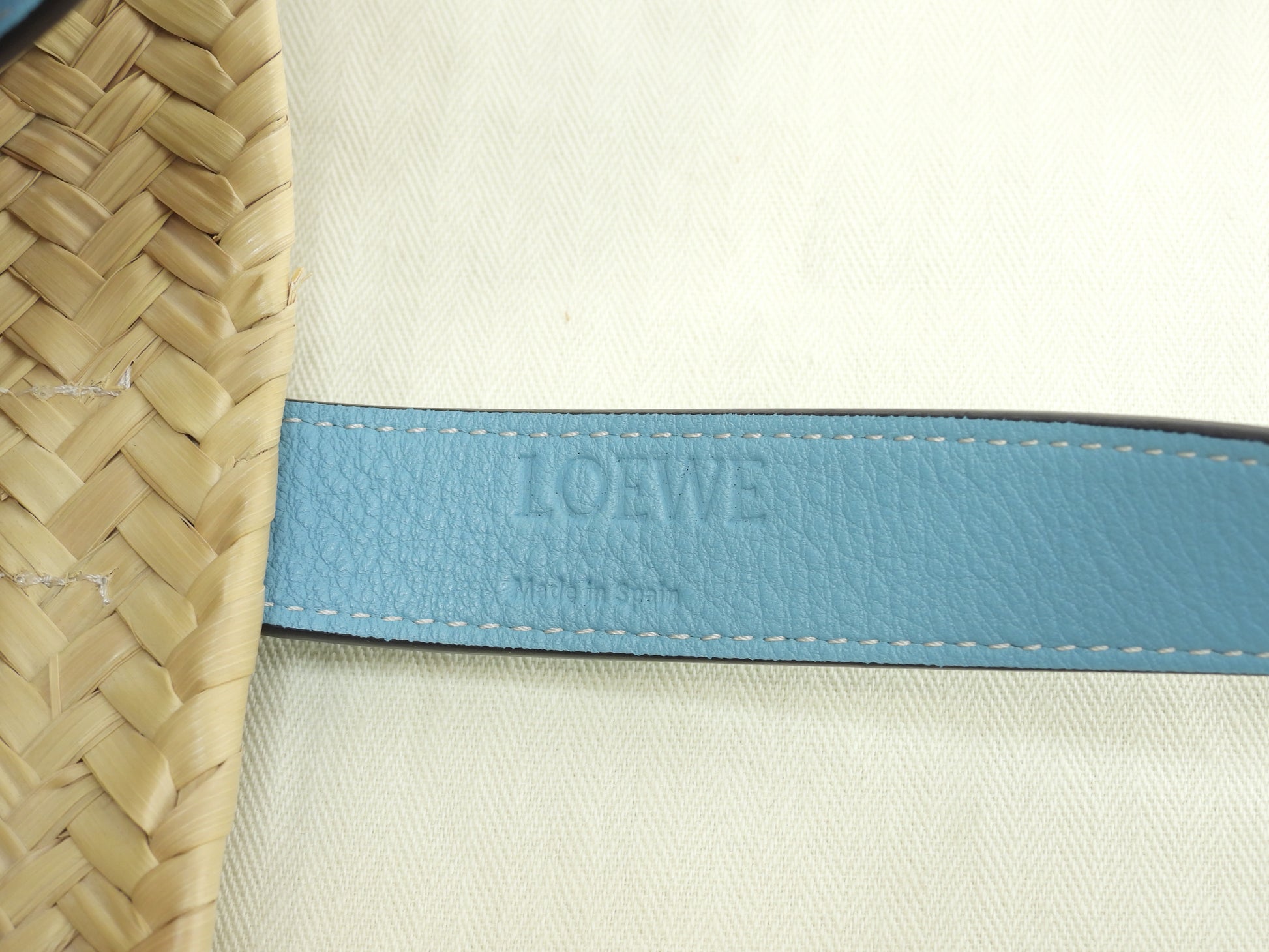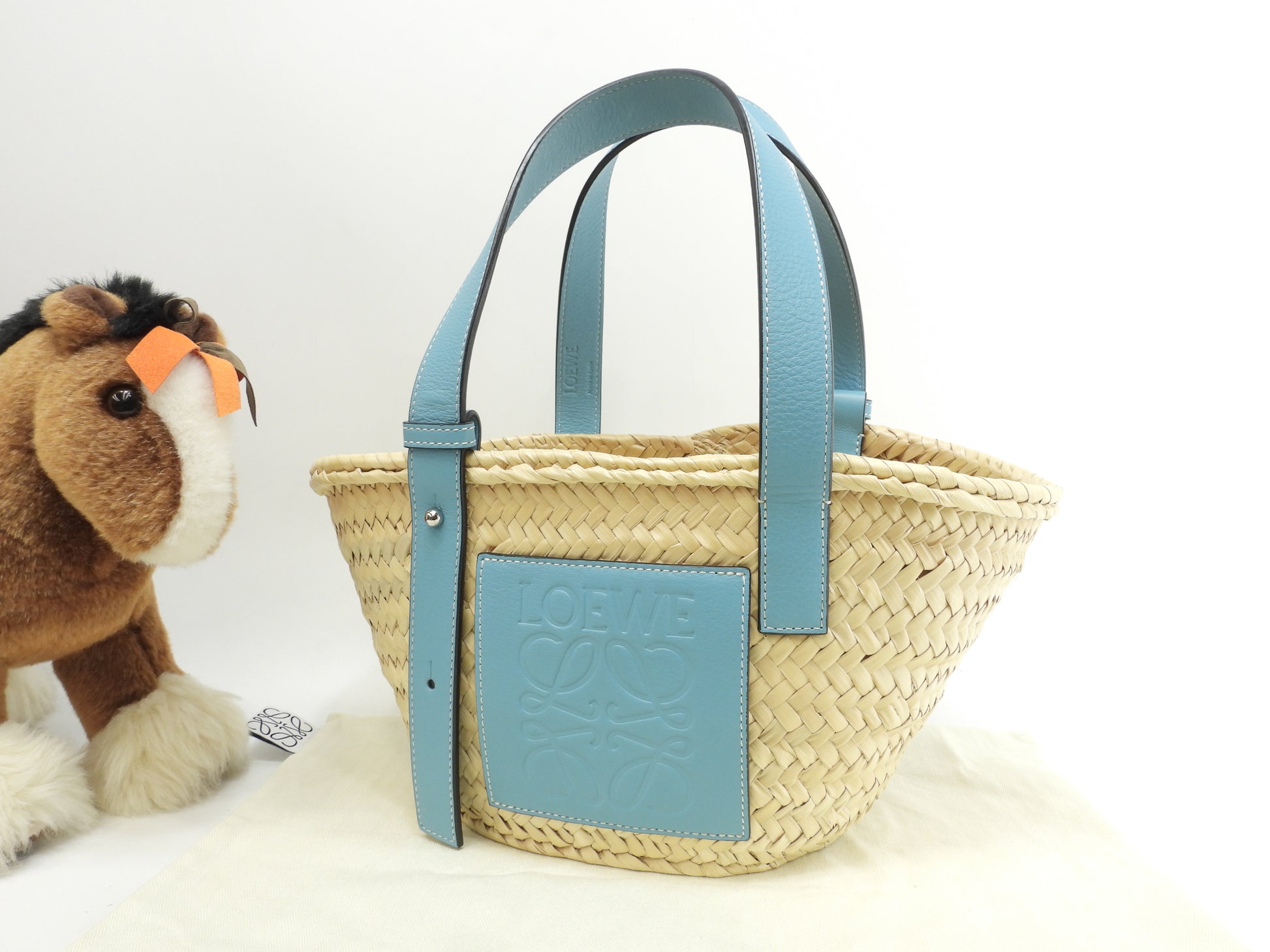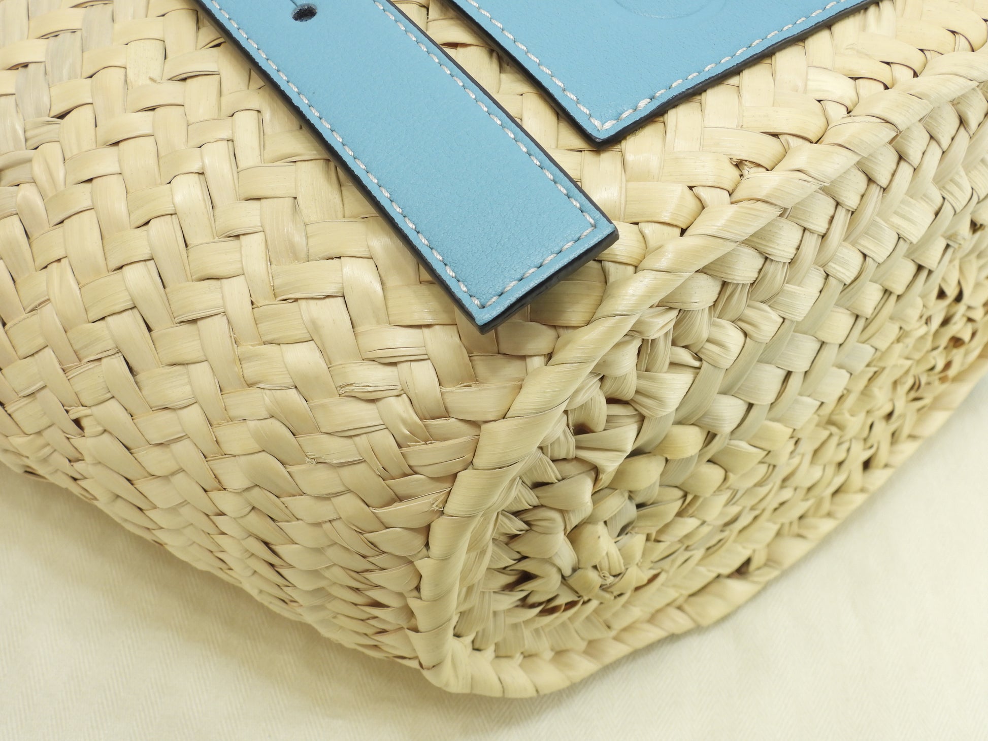 #Loewe #Basket #Small #HandBag #ToteBag #Natural #LightBlue #95%new #authentic #Palm #Calf #Silver #secondhand #wholeSale #haibanya #aisai-jp #転売可