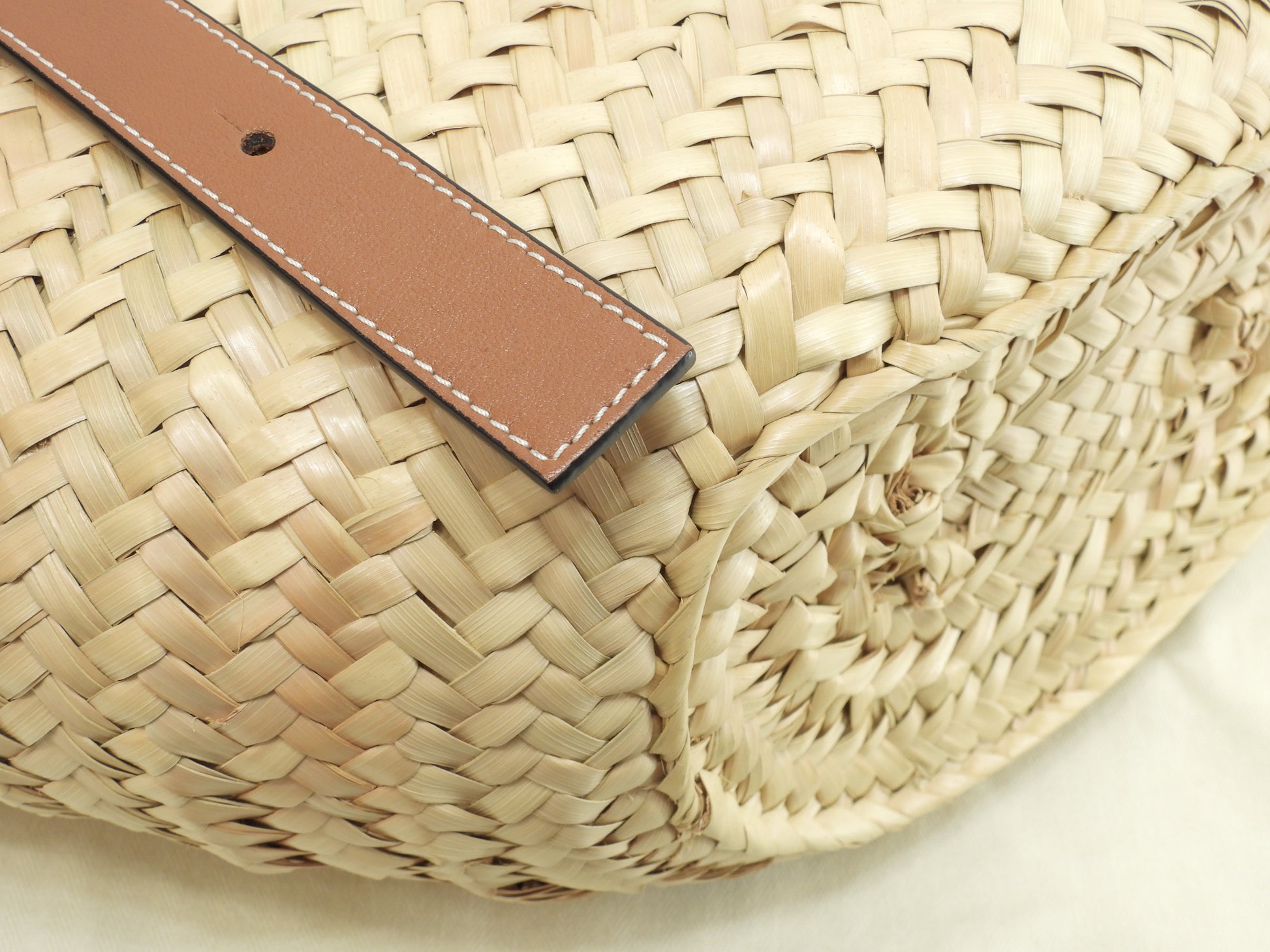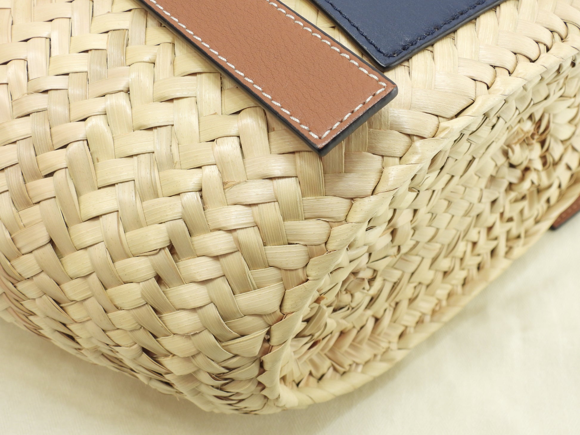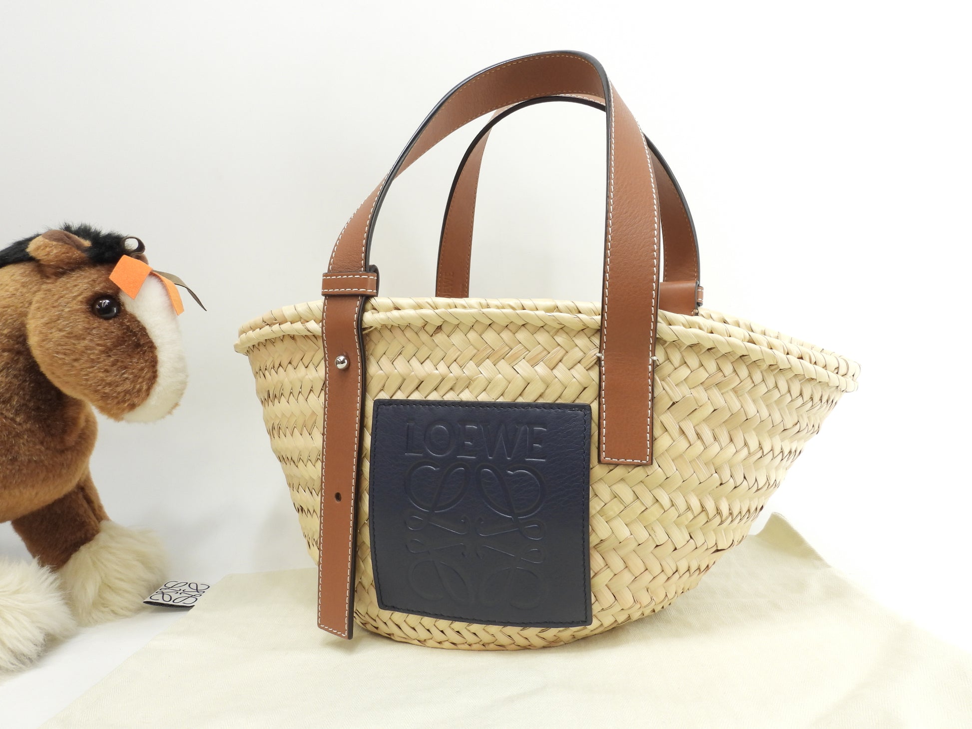 ロエベ バスケットスモール カゴバッグ ナチュラル茶紺 ハンドバッグ 未使用@262118