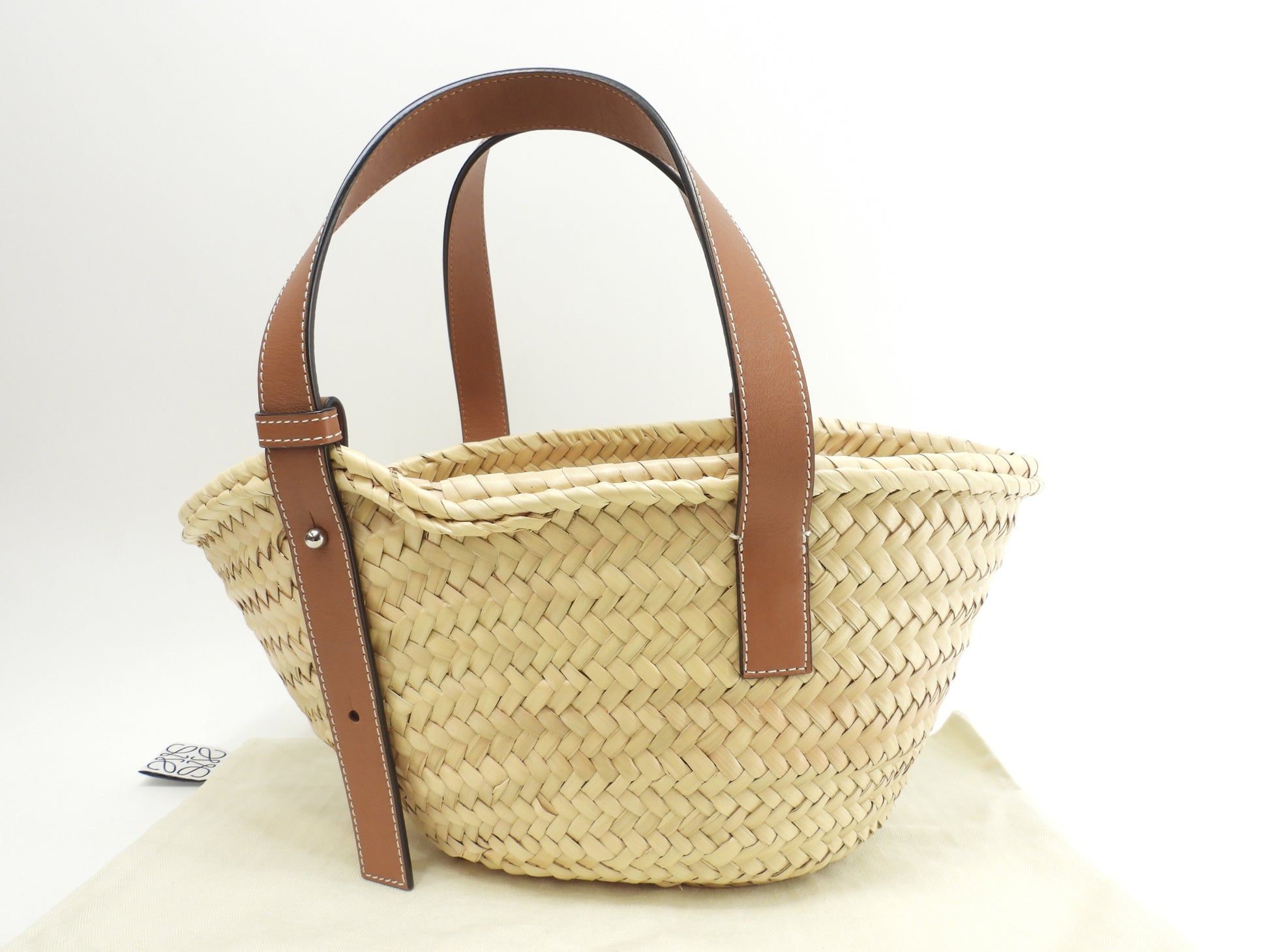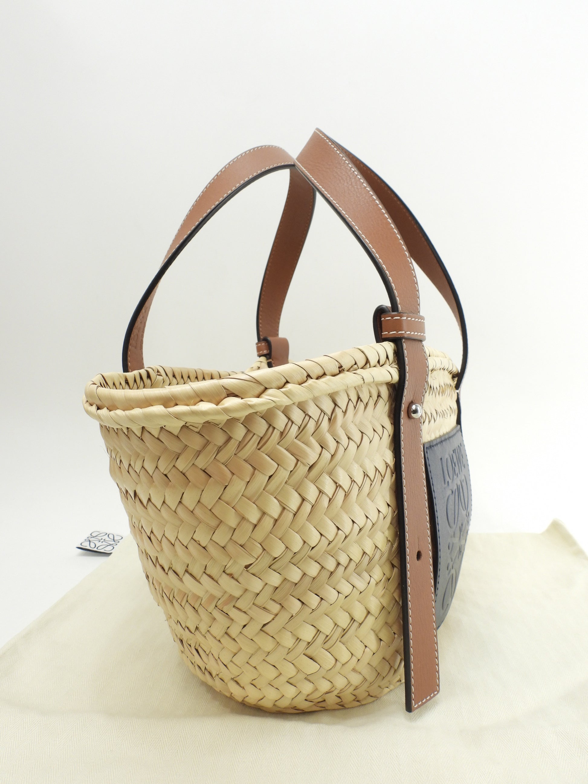 #Loewe #Basket #Small #HandBag #ToteBag #Natural #Brown #Ocean #Navy #95%new #authentic #Palm #Calf #Silver #secondhand #wholeSale #haibanya #aisai-jp #転売可
