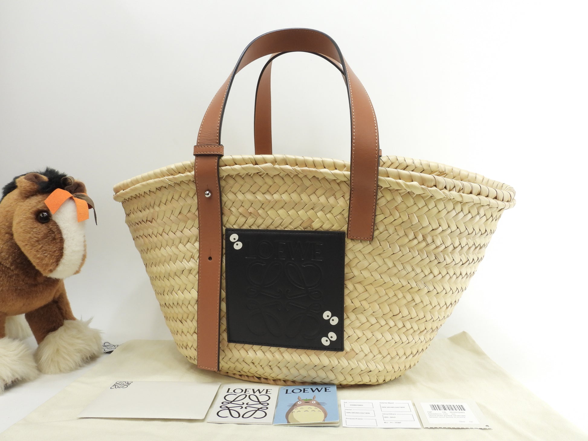 ロエベ バスケット中 ジブリ/まっくろくろすけ ナチュラル黒 ハンド カゴバッグ 未使用@412048