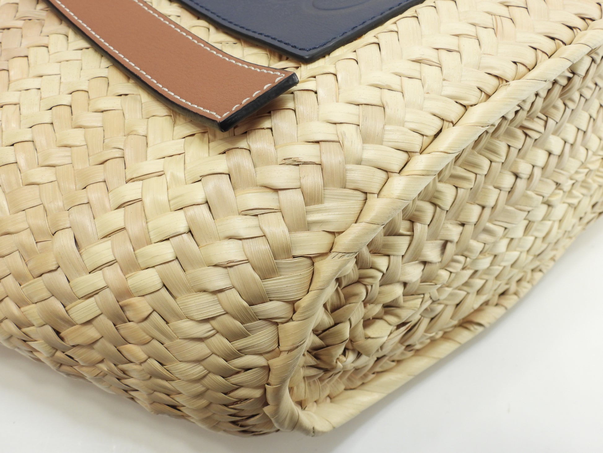 ロエベ バスケット カゴバッグ中 ナチュラル紺革 ハンドバッグ中 トートバッグ 美品@262111